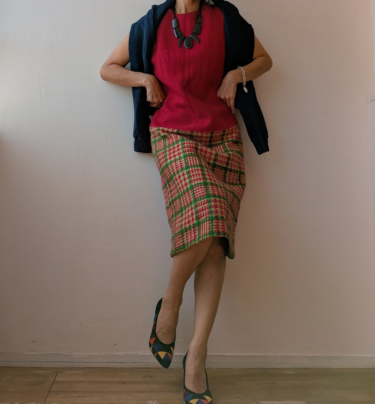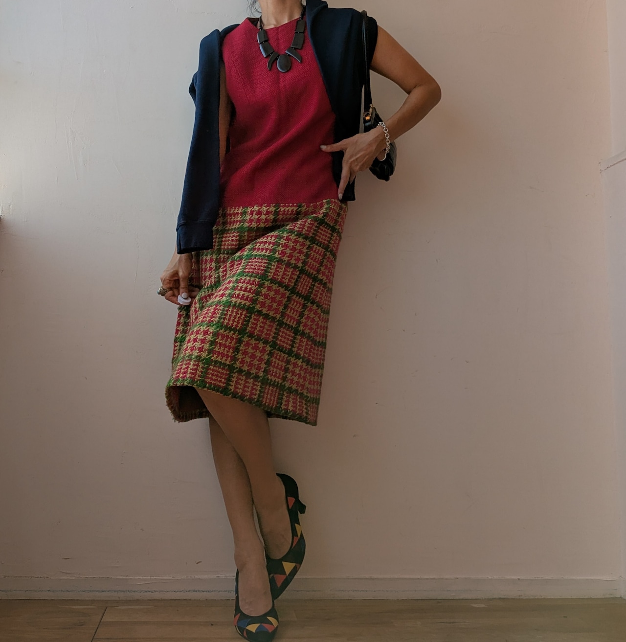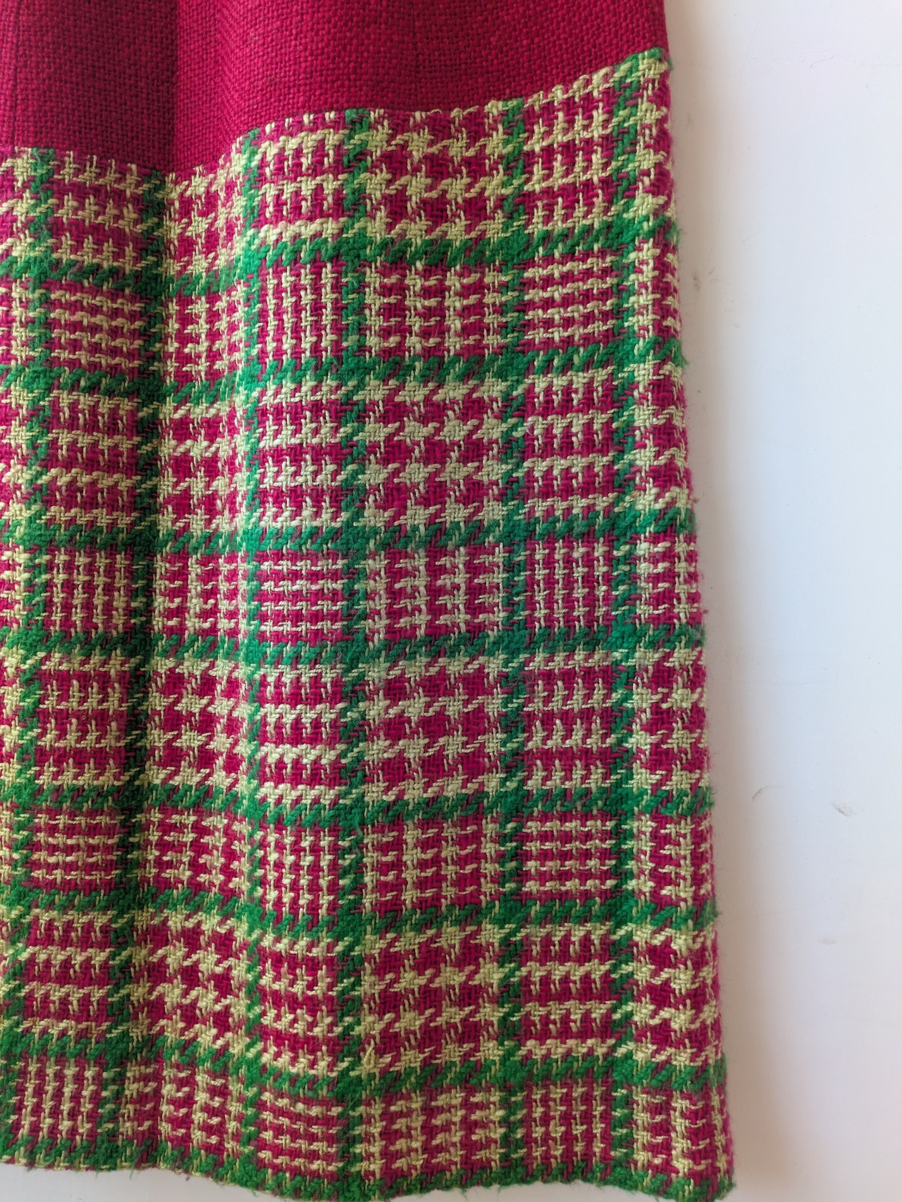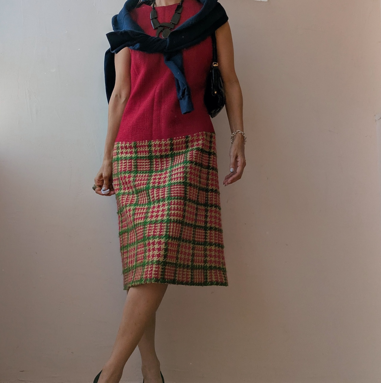 しっかりとした肉厚の上質なウール素材にグレンチェック柄が、シックで洗練された印象です。ウエストの切替えデザインが女性らしさを演出してくれ、ジャケットやカーディガンを羽織ってこれからの季節に活躍してくれる1着です。