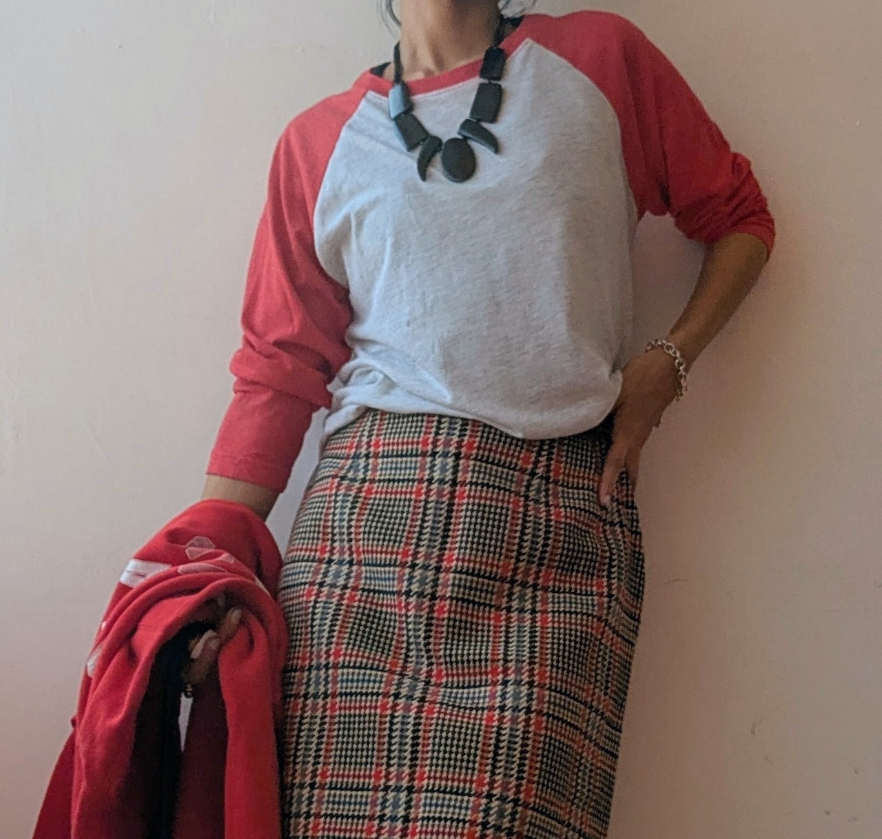 シンプルなラグランTシャツは、カジュアルながらもいろんなスタイルにマッチし、今からの季節着回しの効く1着です。