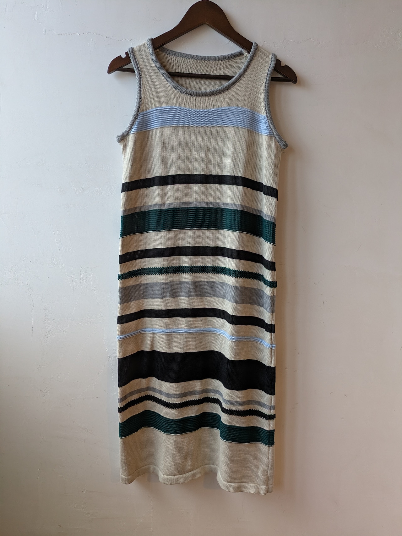 爽やかなボーダーデザインが魅力のNo sleeve multi border knit onepieceです。