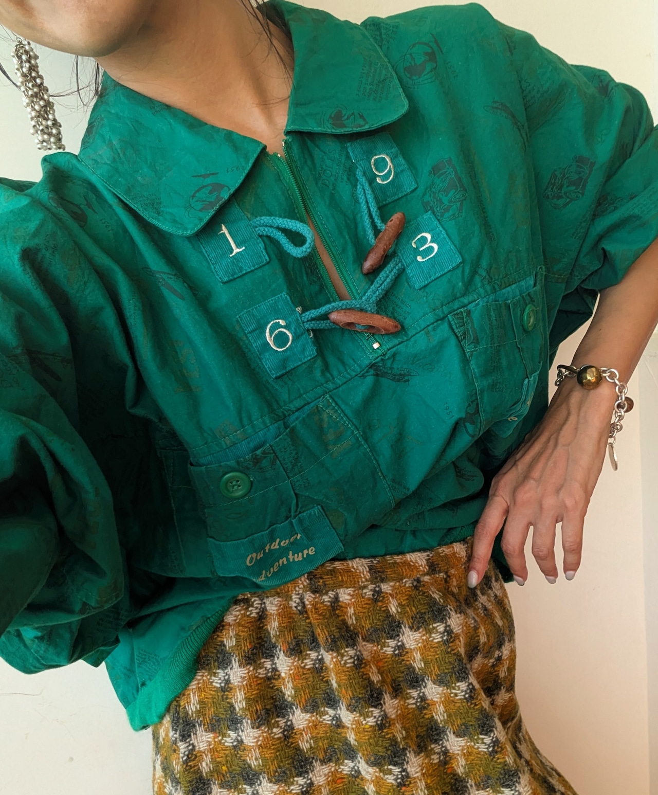 ナンバリングデザインが特徴的で、単調になりがちなコーディネートにアクセントを加えます。カジュアルなデニムパンツやスカートとの相性も良く、コーディネートの幅を広げてくれる一枚です。シャツ感覚でロングシーズン併せていただけます。