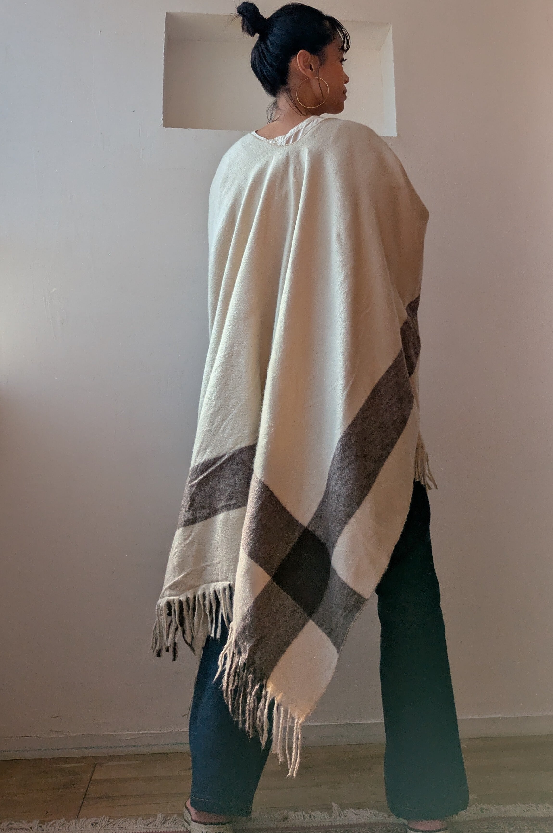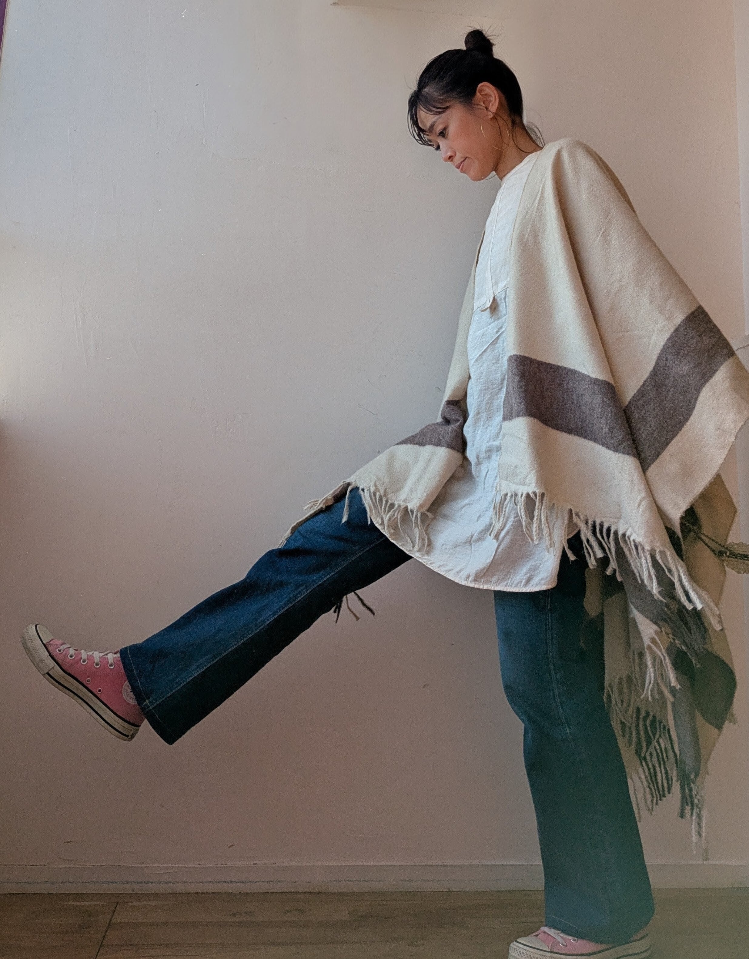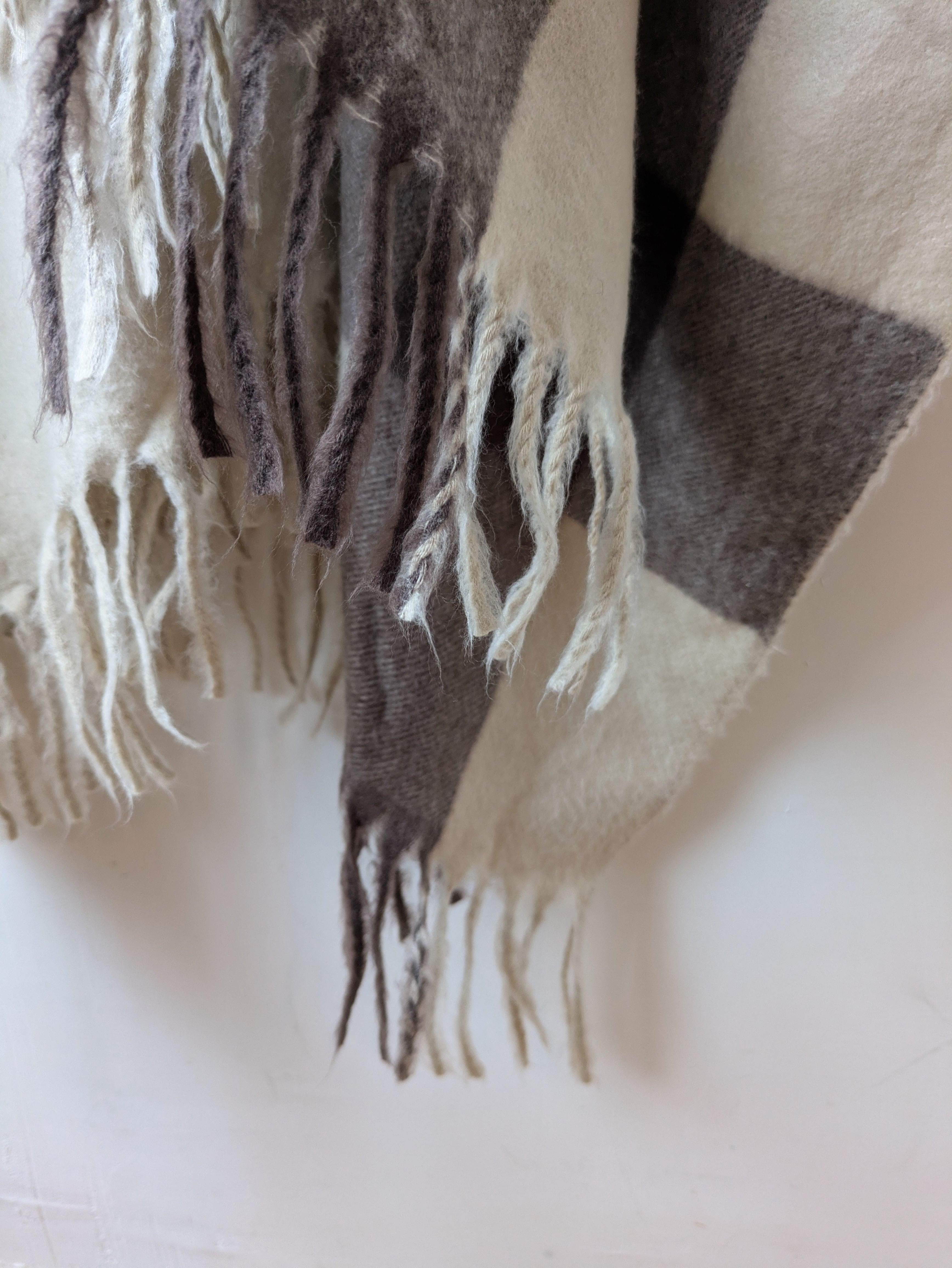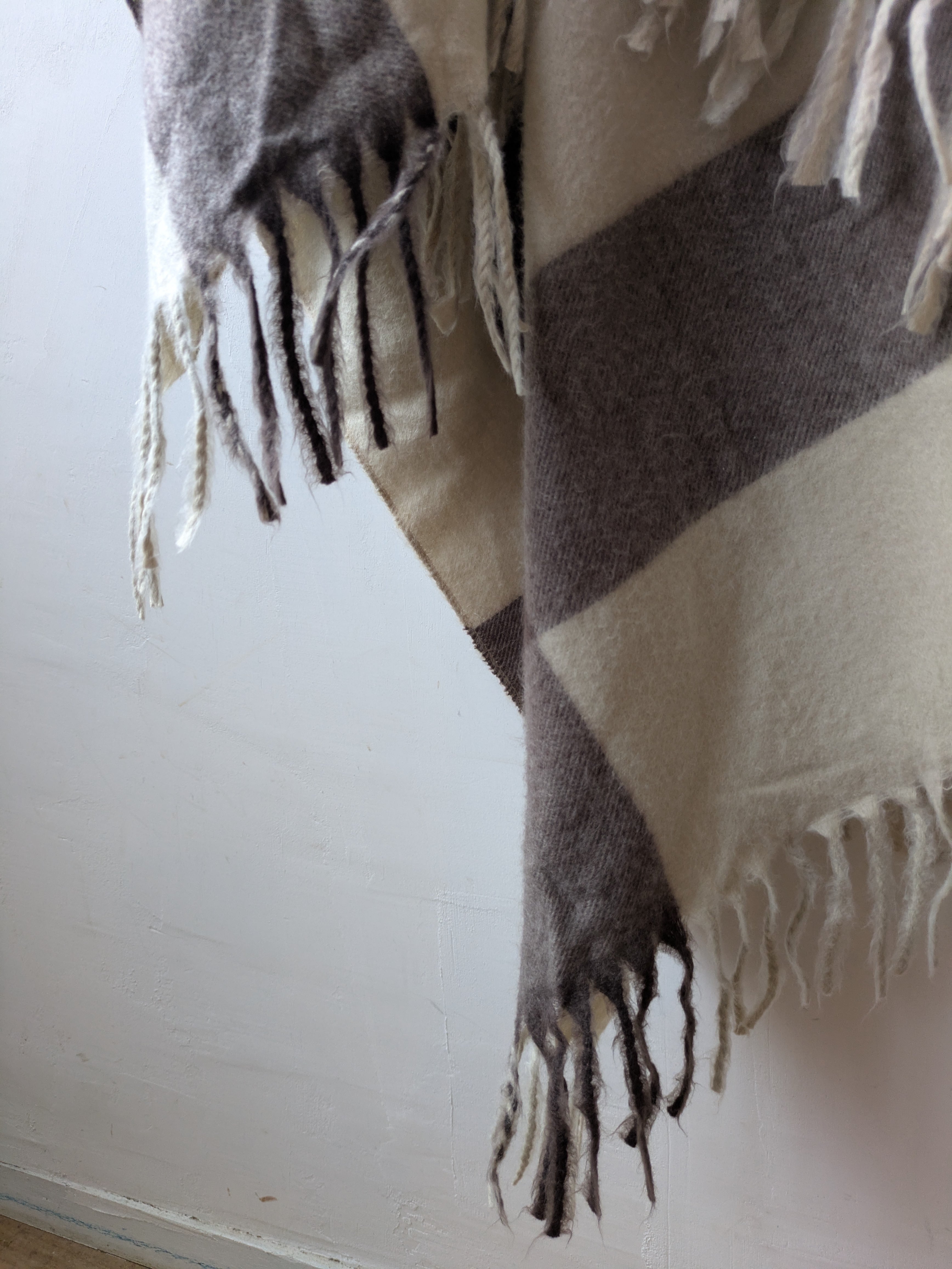 秋冬のコーディネートにぴったりな、上品なカシミヤタッチのビッグポンチョストールです。