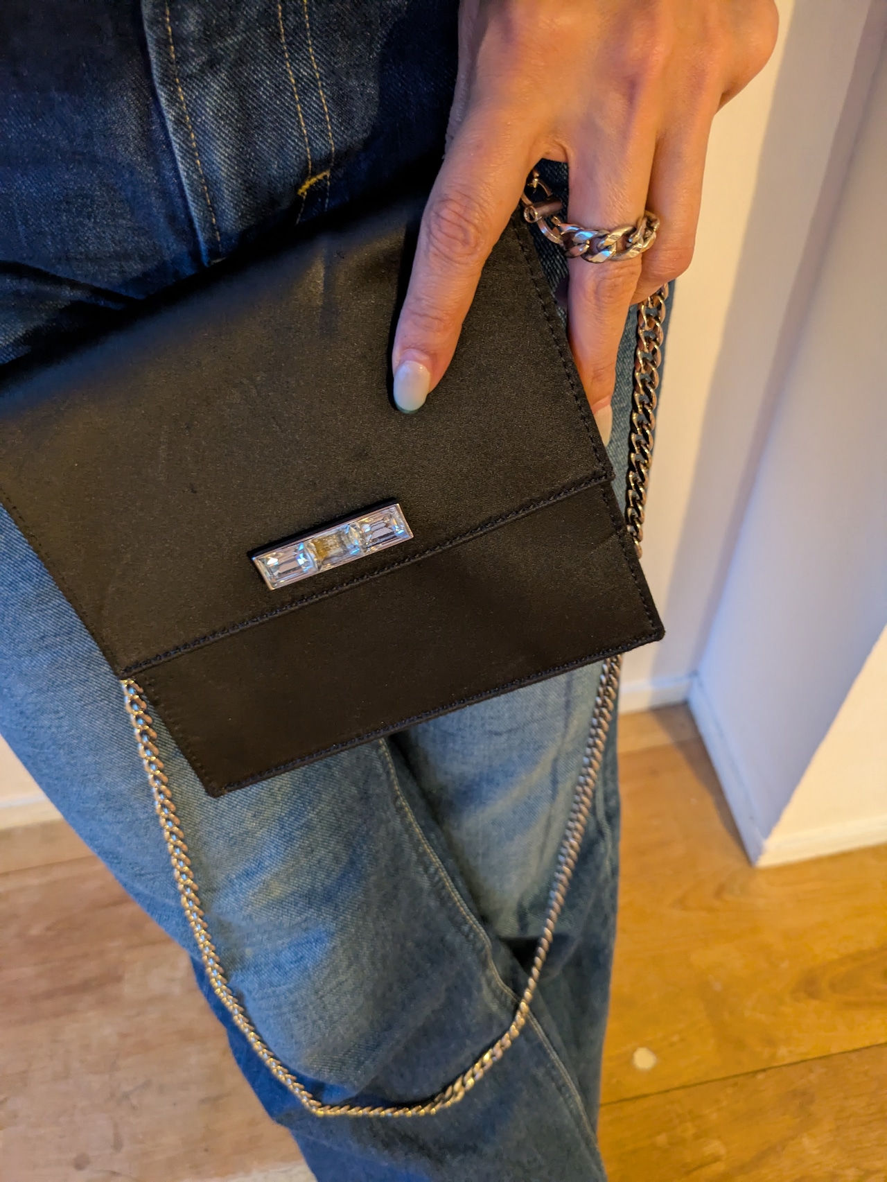 上品でクラシックな魅力を持つ、Old CELINE のサテンチェーンショルダーバッグです。