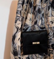 コンパクトですが、携帯やリップ、小さめのお財布が収まるほどのサイズ感で、カジュアルな装いにも、特別なシーンにもマッチするバッグです。