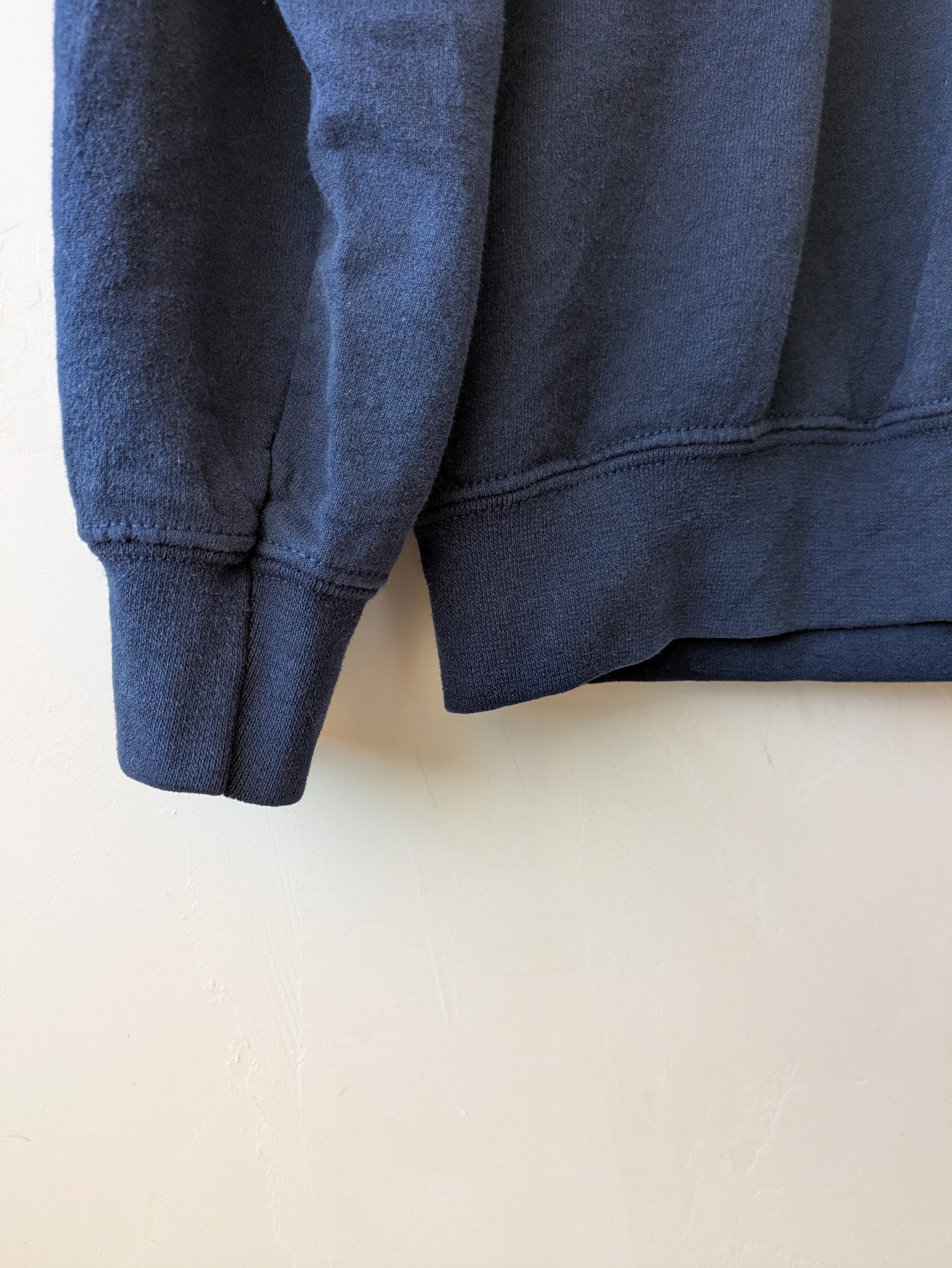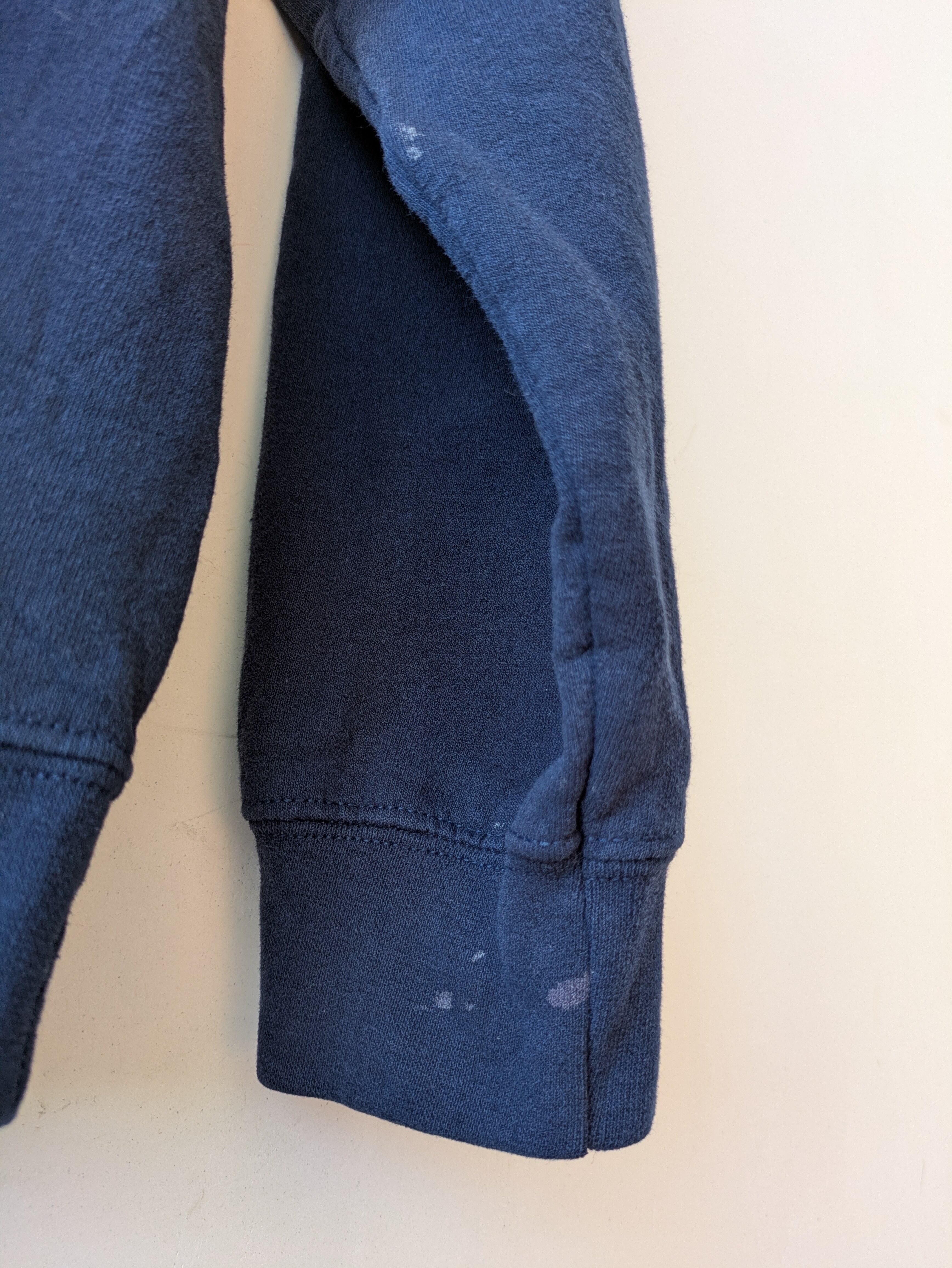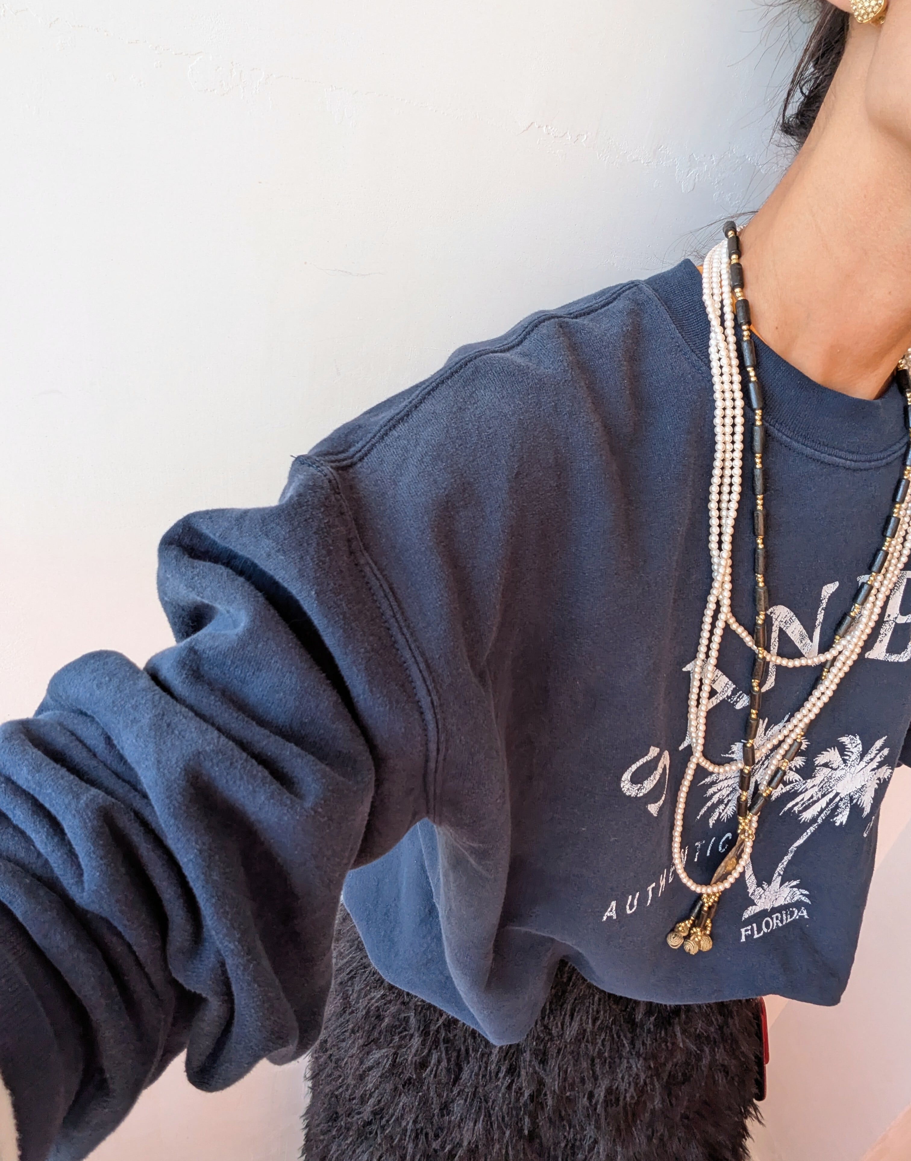 併せやすいネイビーのボディにホワイトのロゴが目を惹くシンプルなスウェット。