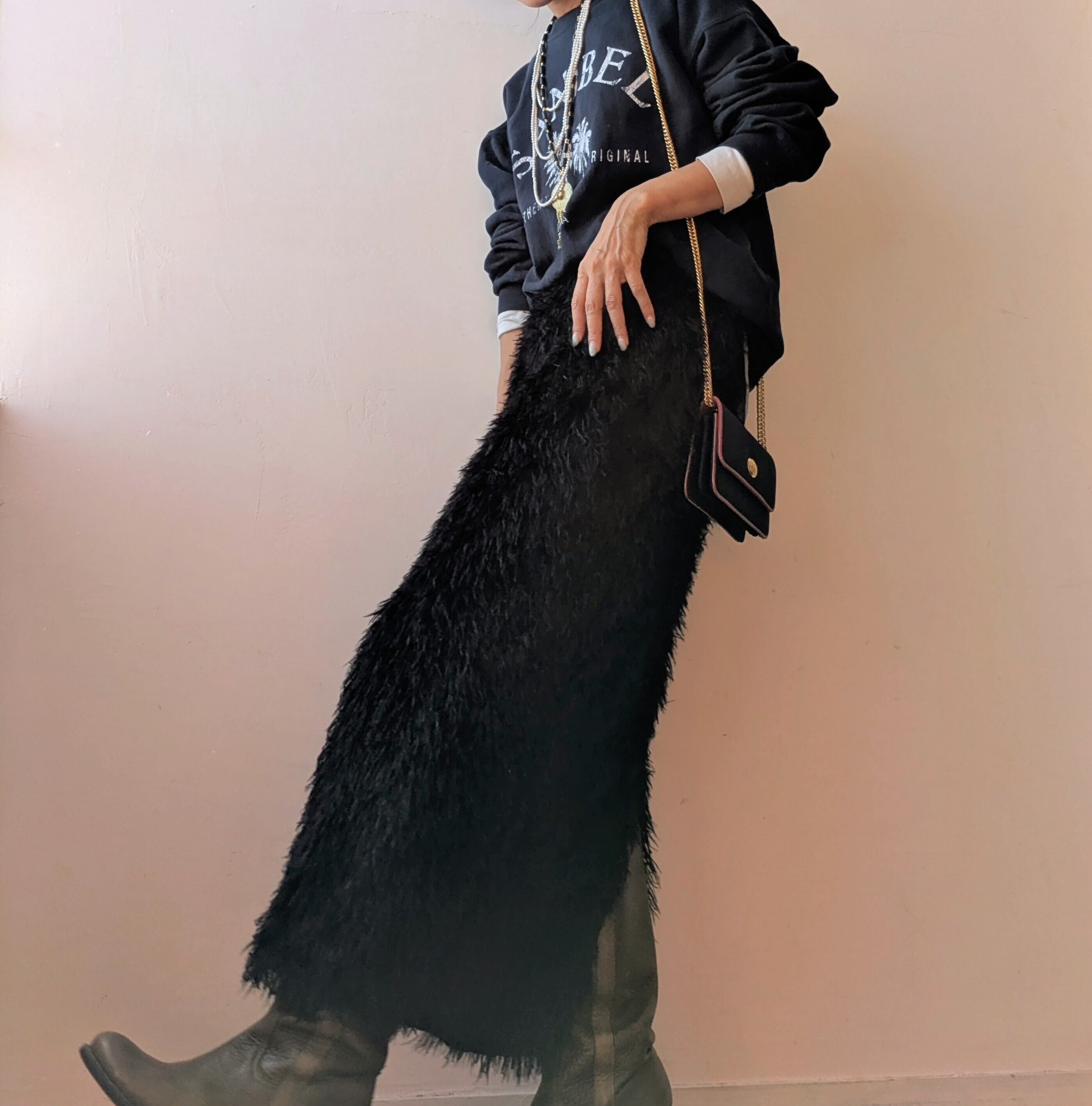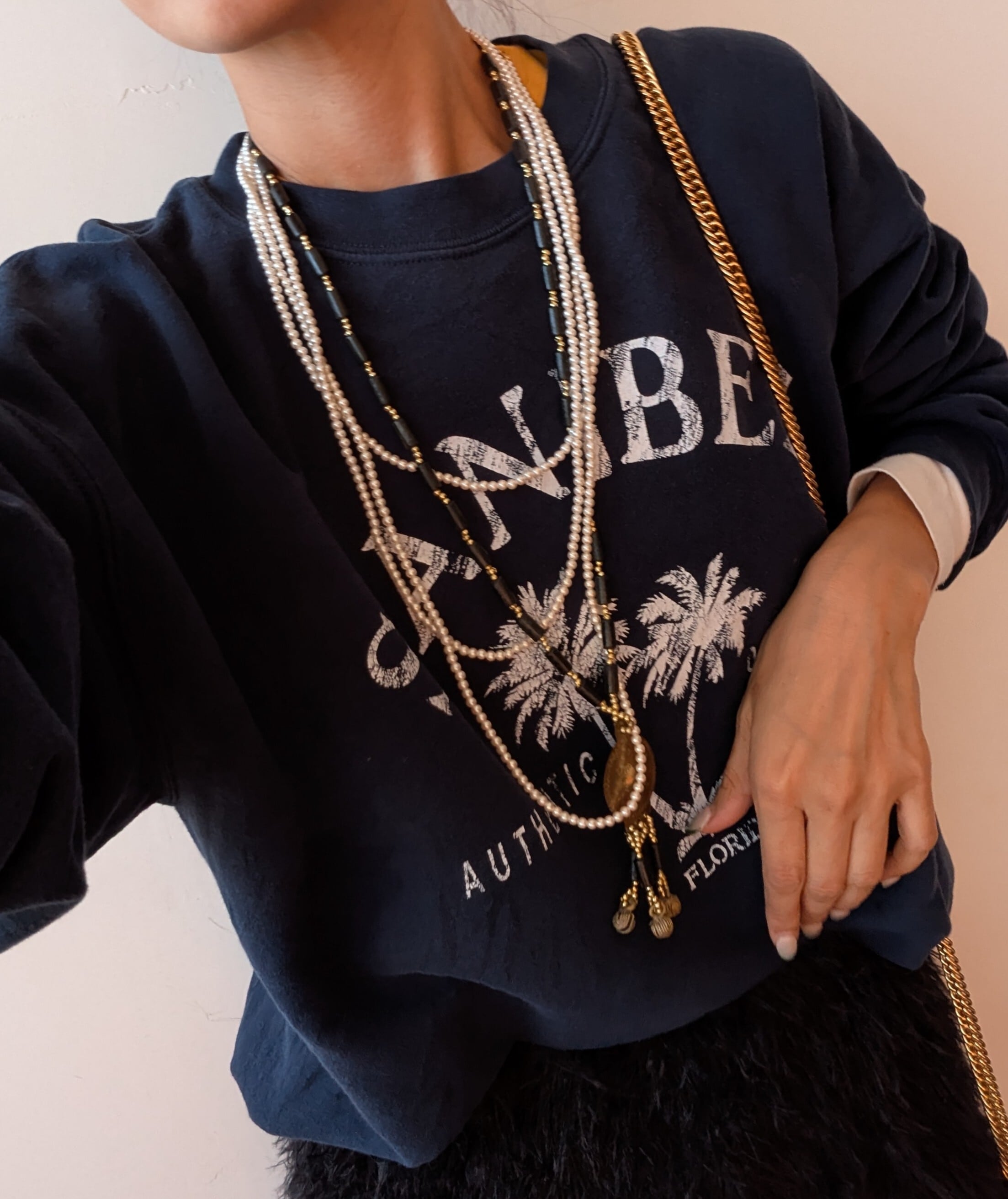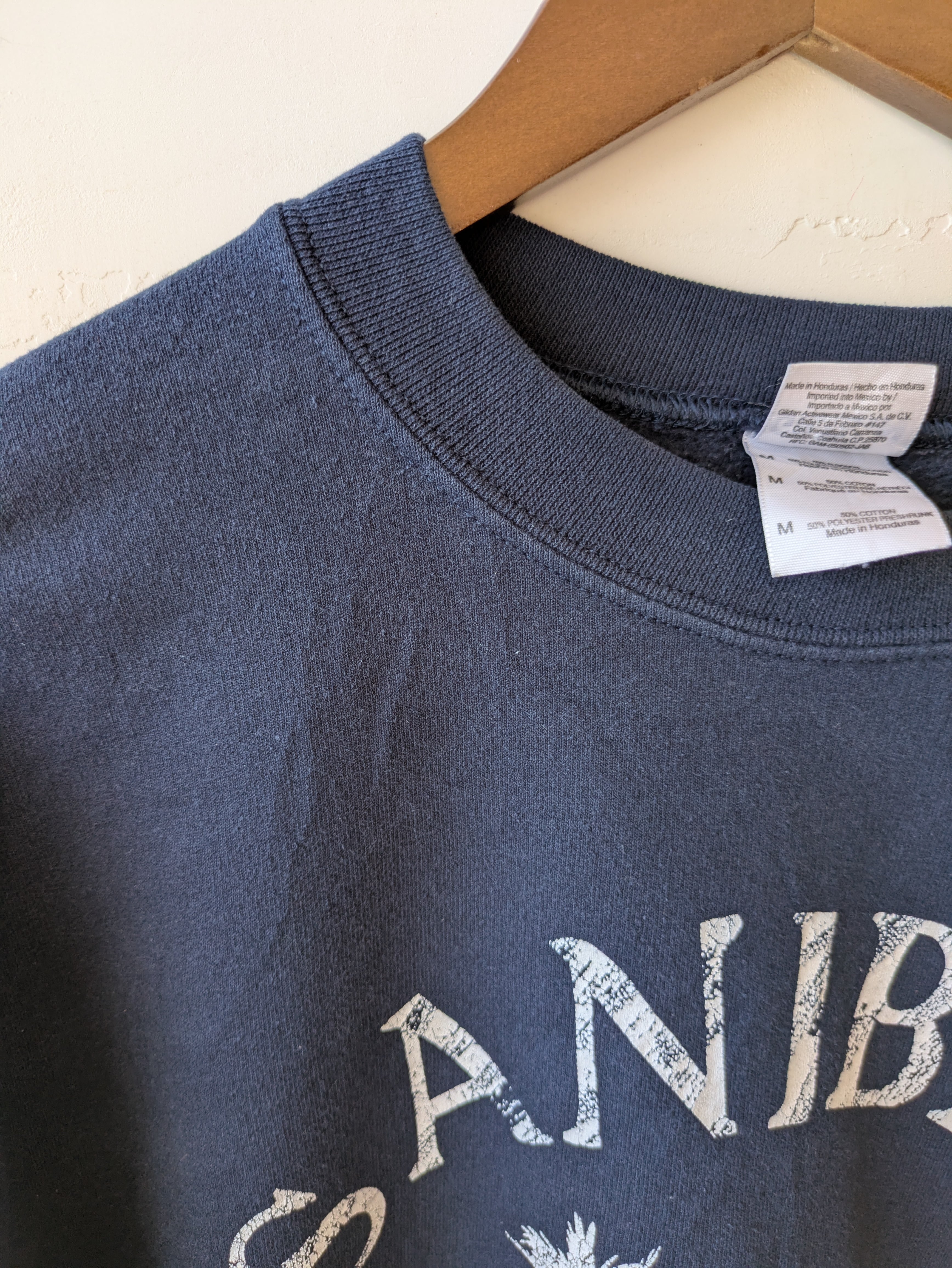 併せやすいネイビーのボディにホワイトのロゴが目を惹くシンプルなスウェット。