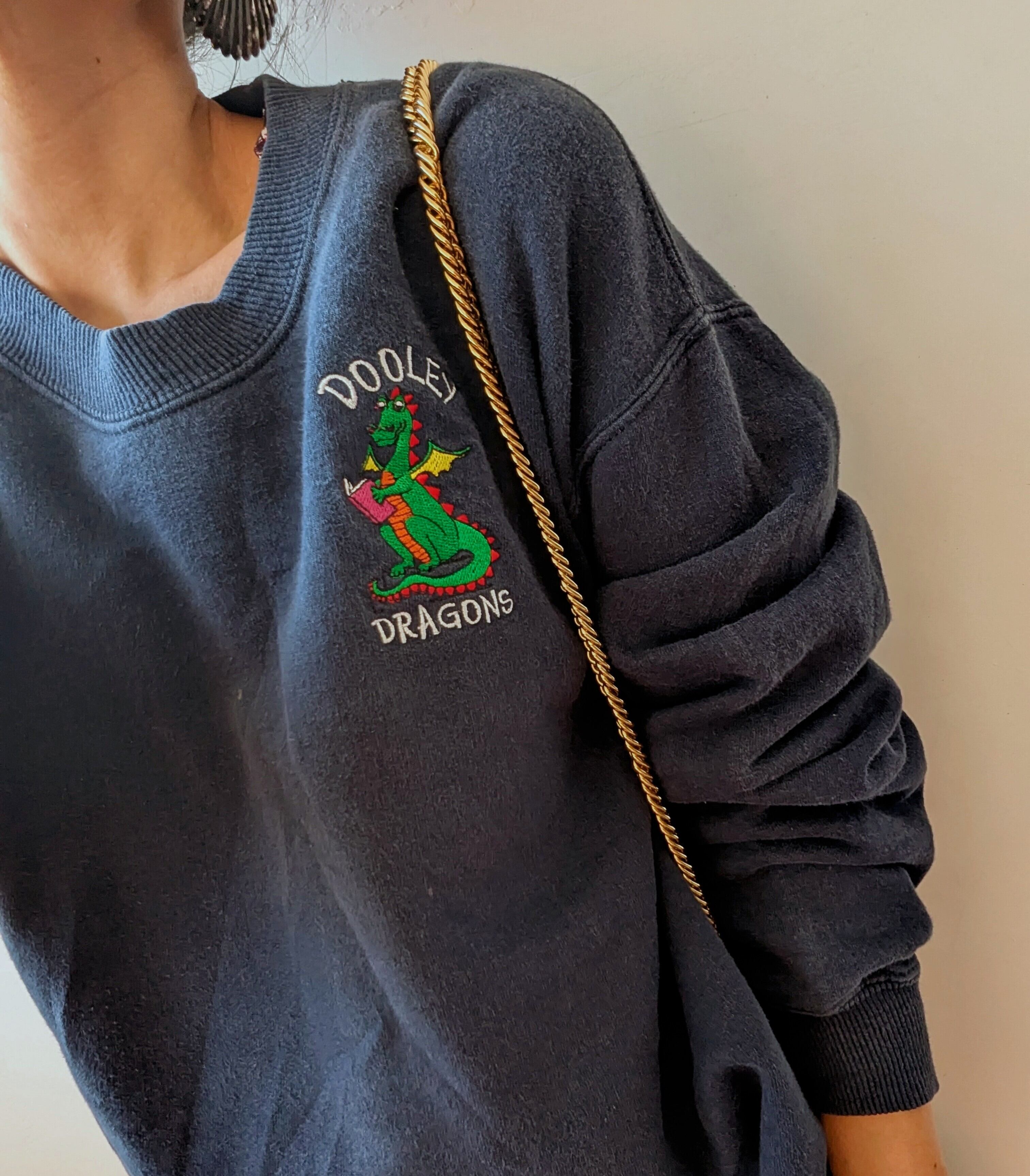 90年代のレトロなドラゴンのワンポイント刺繍が可愛いGILDAN製スウェット。