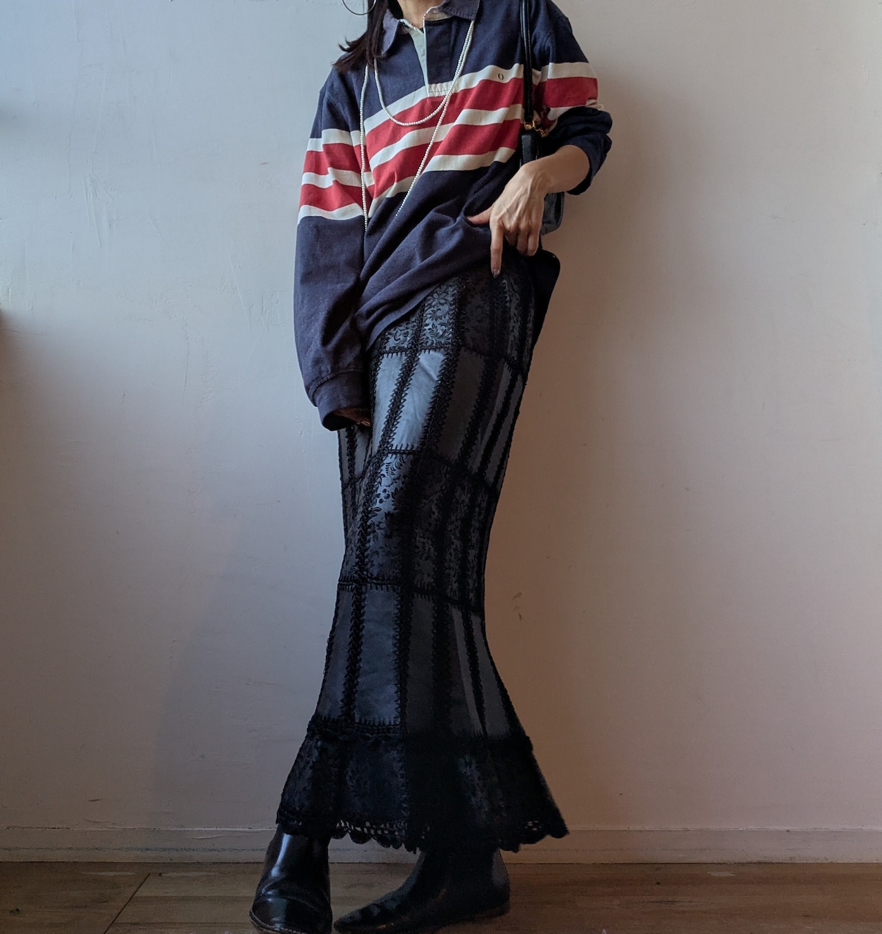 ゆるいシルエットが大人カジュアルなスタイルにもピッタリ。ネイビー×レッドカラーがどんなスタイルにも合わせやすく、日常使いはもちろん、キレイめのスラックスや、ヒール、ローファや、パールの小物併せでお出かけやオフィスにも。ワンランク上のカジュアルスタイルを楽しんでいただける1着です。