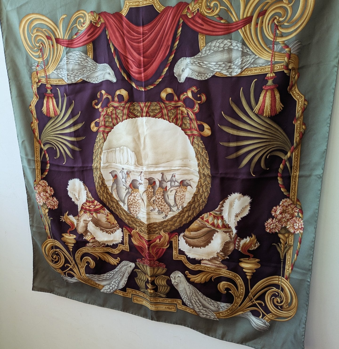 カラフルな色彩でまるで絵画のような繊細で美しい絵柄の大判スカーフです。