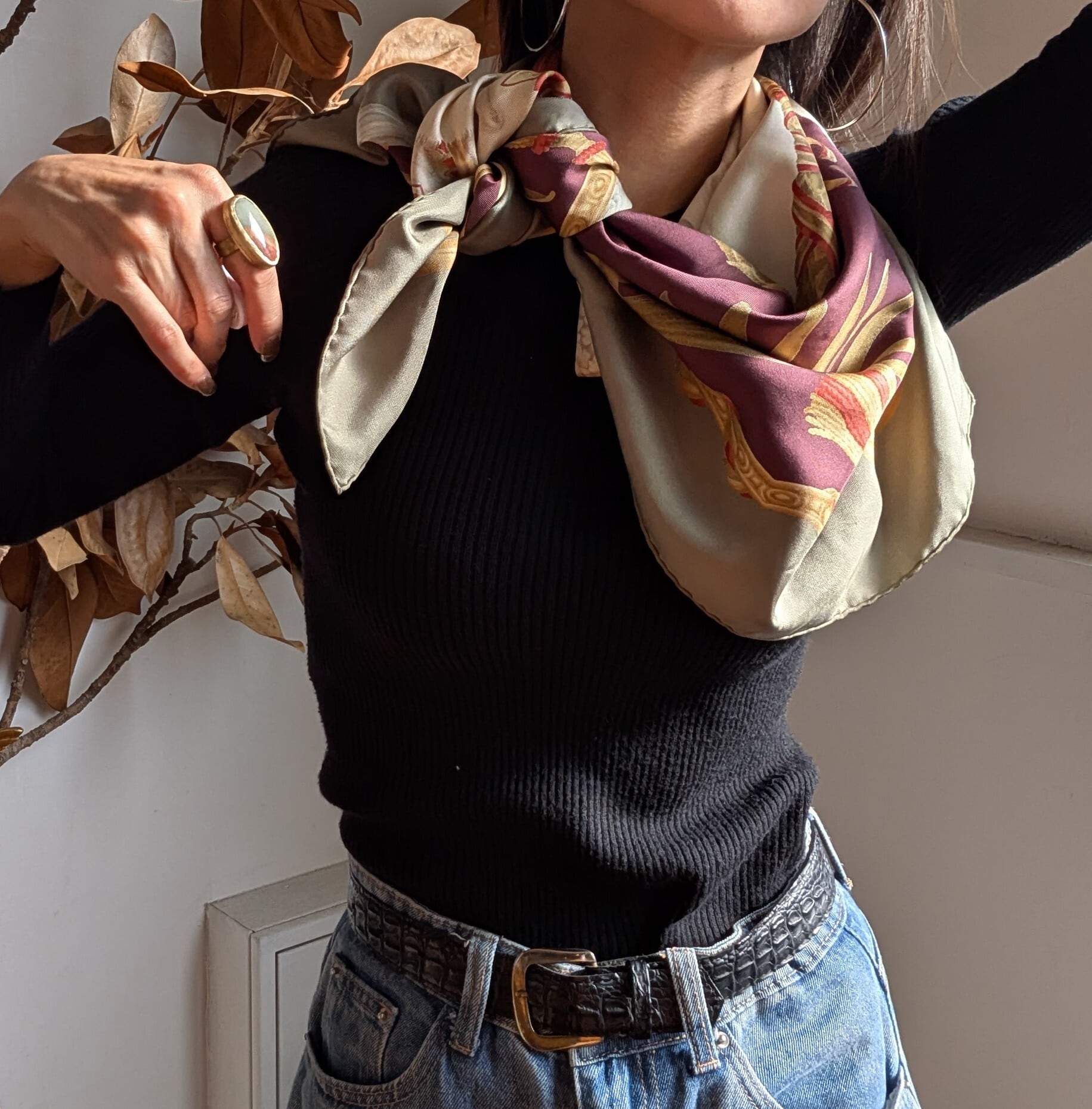 SILK100%で、肌触りもよく、シワになりにくいのでバッグに忍ばせて、その日のアレンジを楽しんでいただけます。