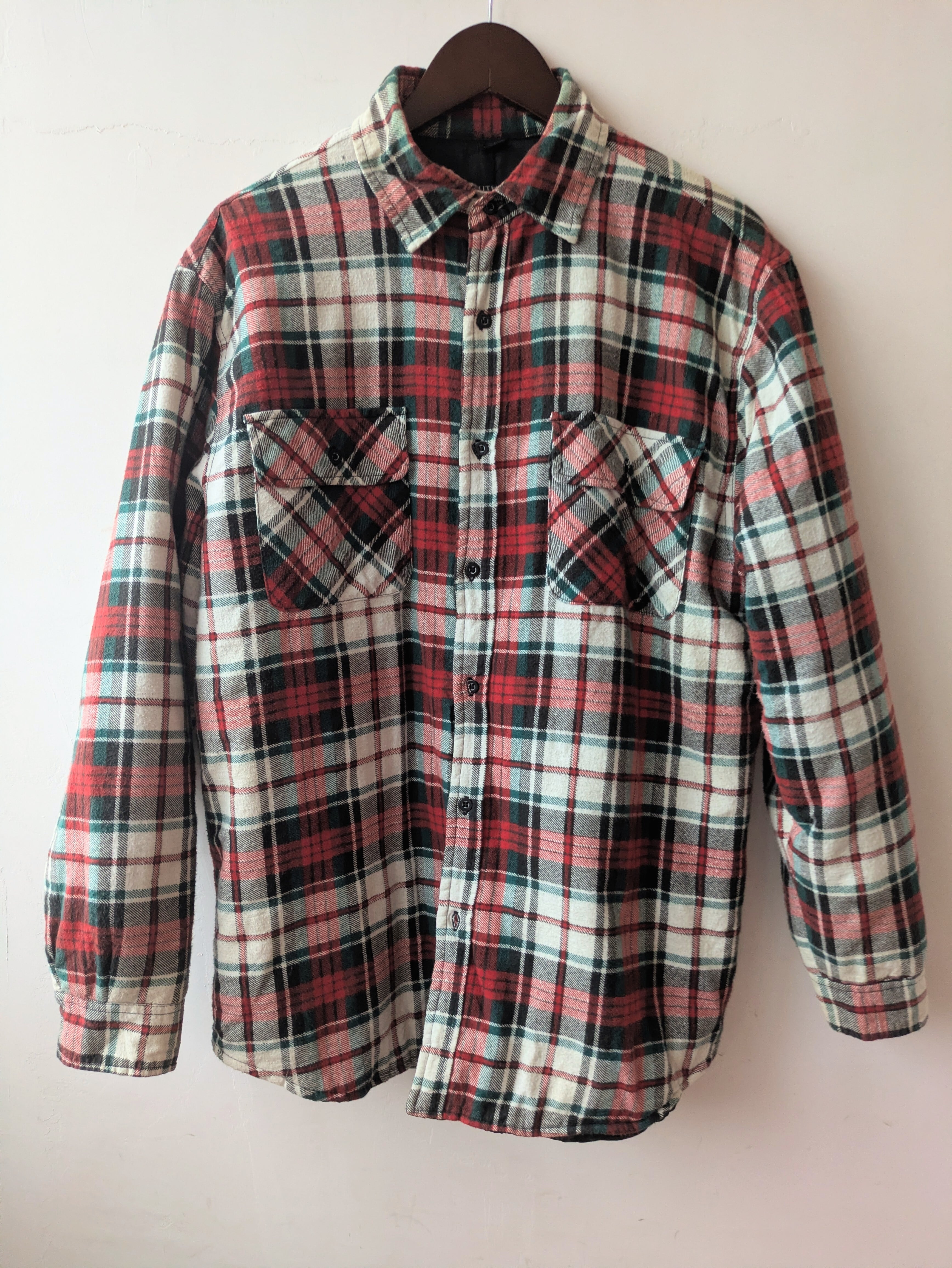 中綿入りで暖かく、見た目はシャツのようですがアウターのように使える暖かい1着。
