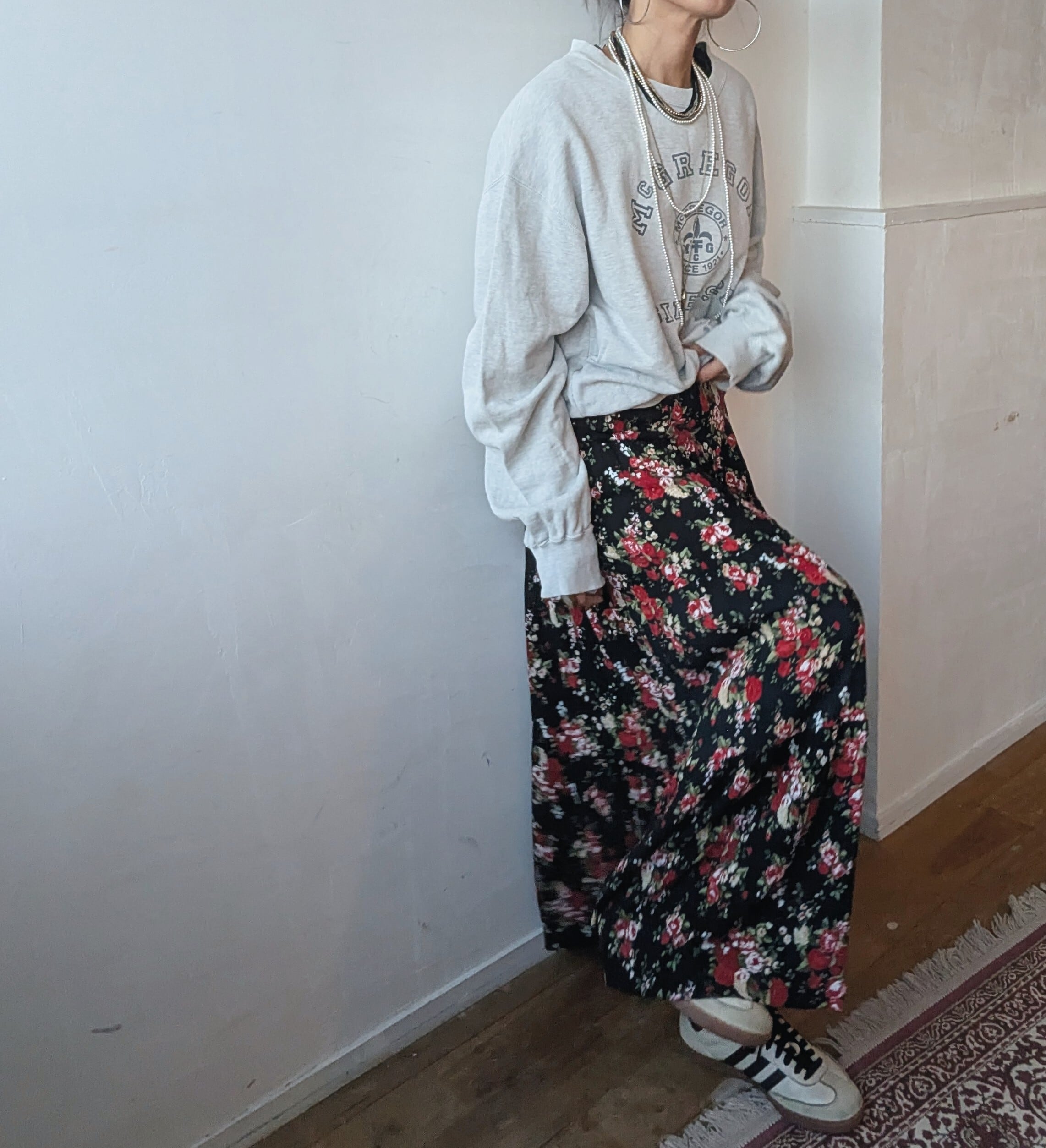 vintageならではの風合いがかっこよく、スカートや、ワンピース、デニムなどシンプルなので様々なボトムに併せていただけます。