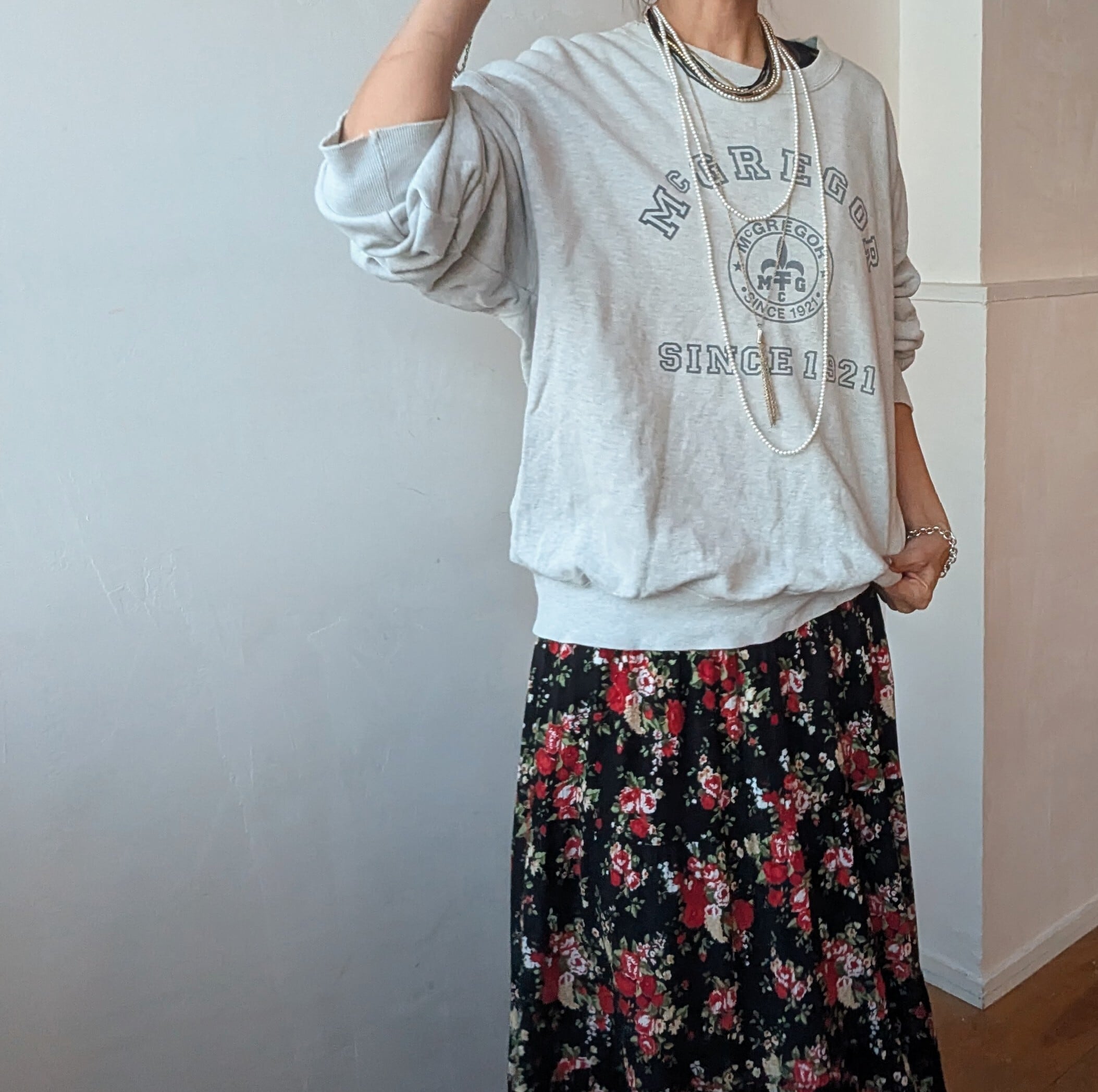 明るいカラーがカジュアルスタイルにコーディネートしやすい、USAヴィンテージスウェットです。