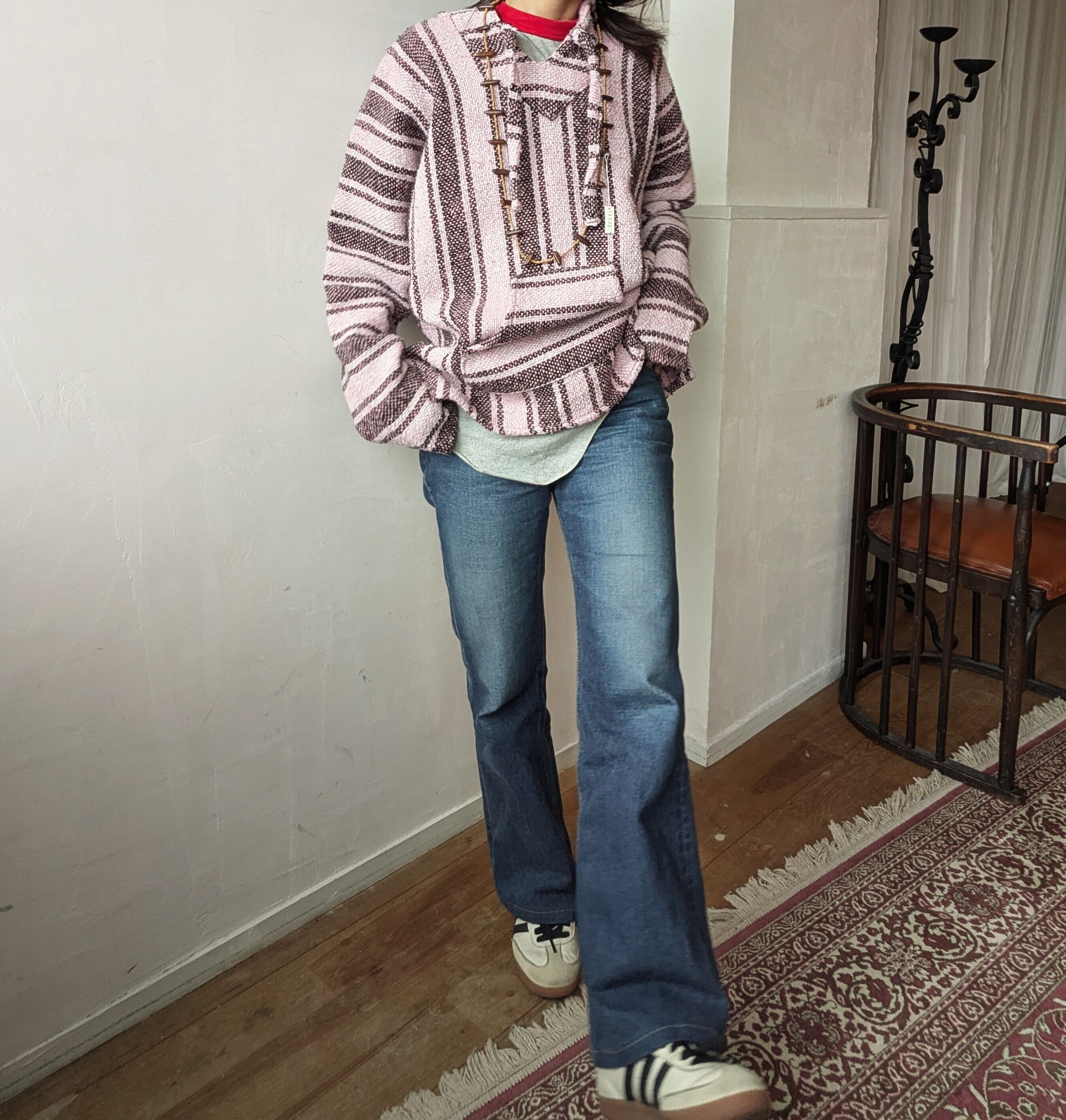 明るい薄ピンクとブラックのコントラストが可愛いくてかっこいいMexicon parka。