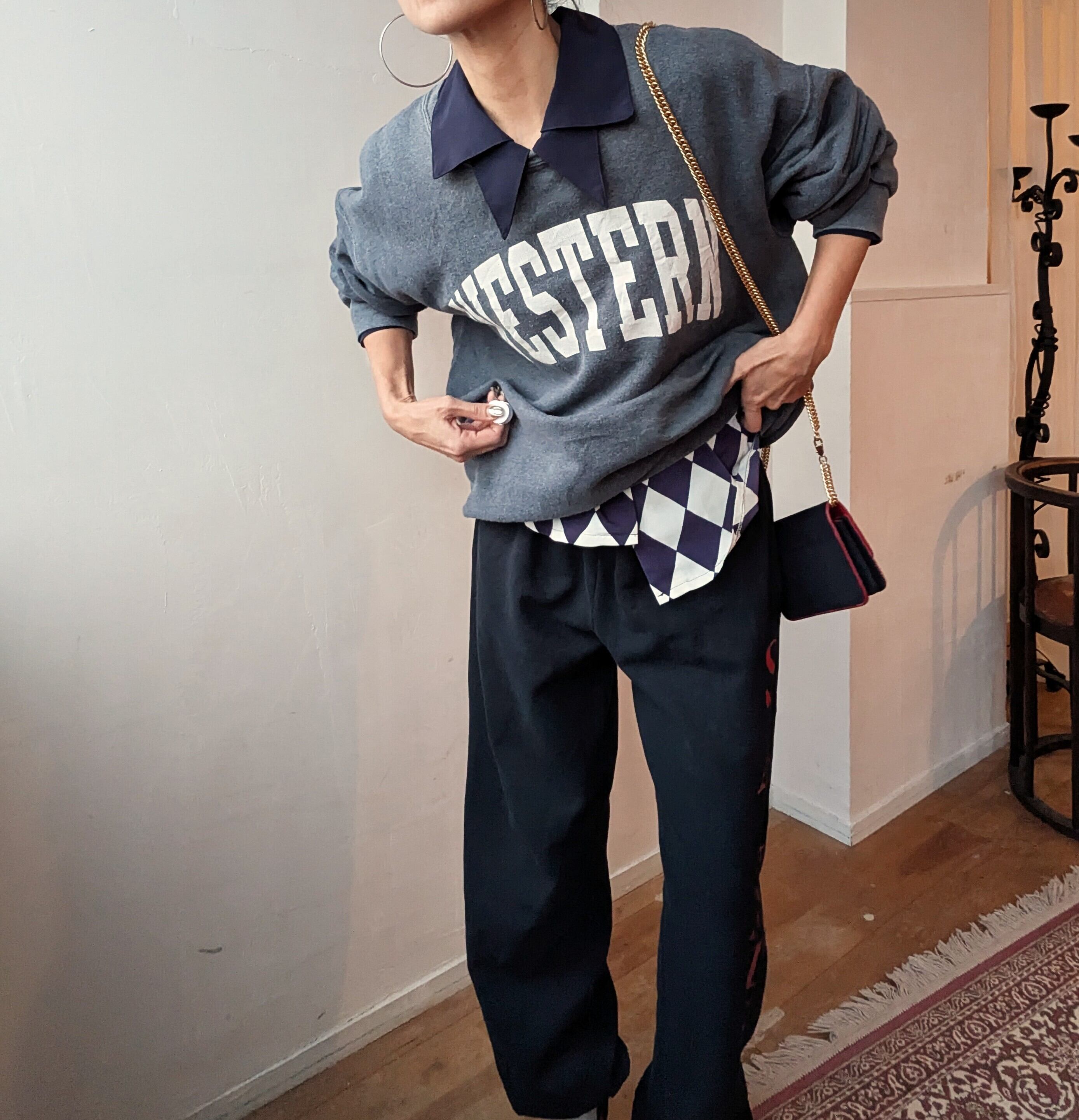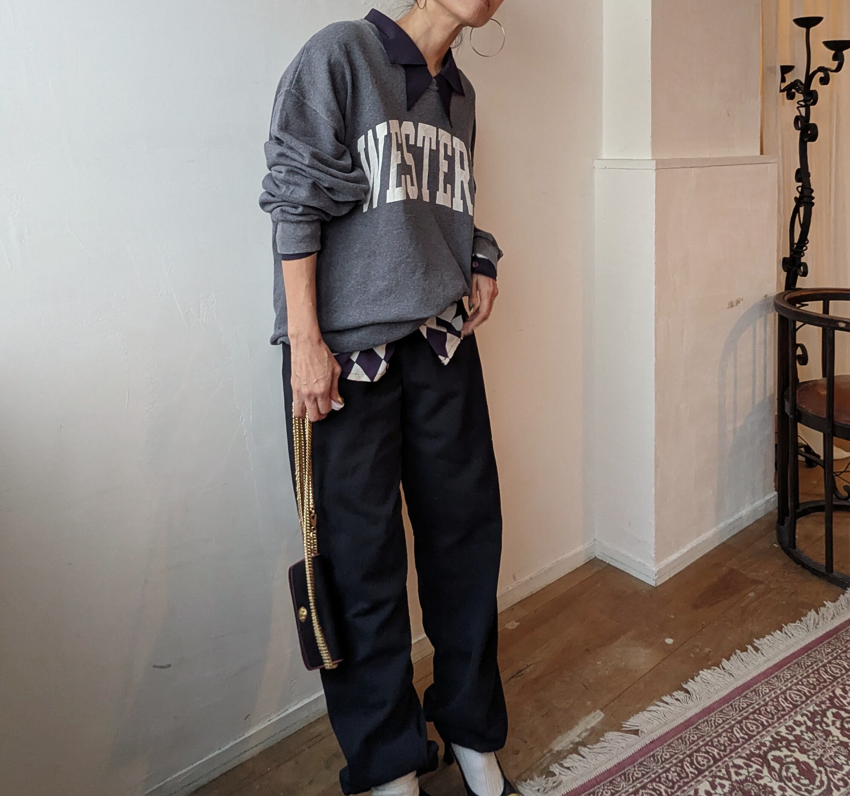 スウェットのインナーや、カーディガンからのぞかせて、大人かわいいコーデが完成します。