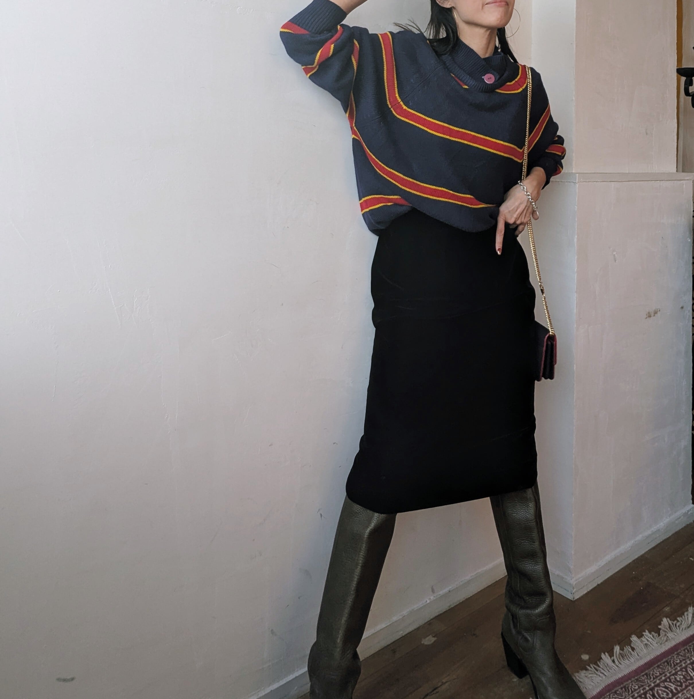 丈は長めですが、薄手なのでボトムインスタイルもごわつがずスッキリ。