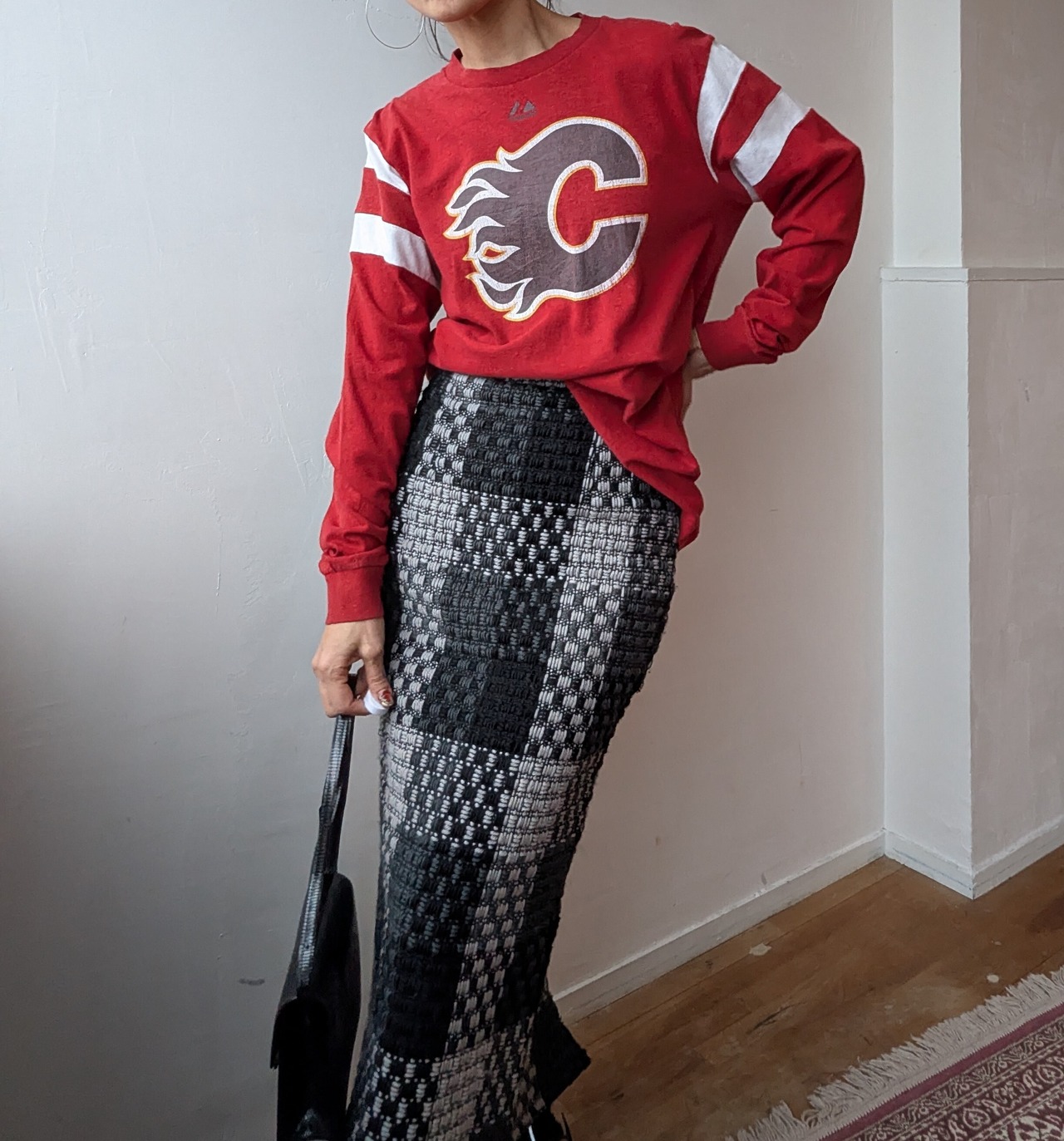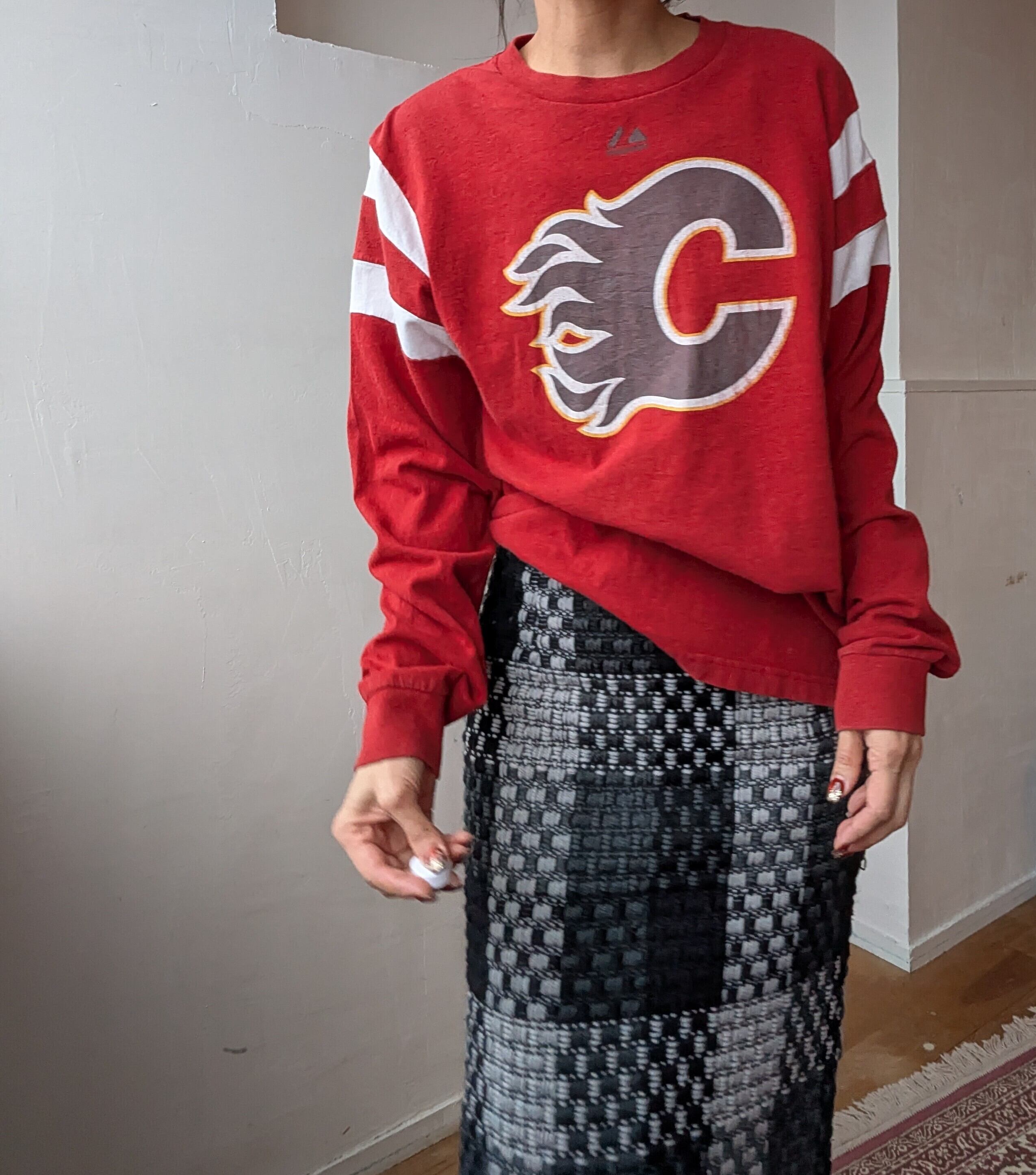 深紅のボディにカナダのホッケーチームロゴがかっこいいFOOTBALLTシャツ。