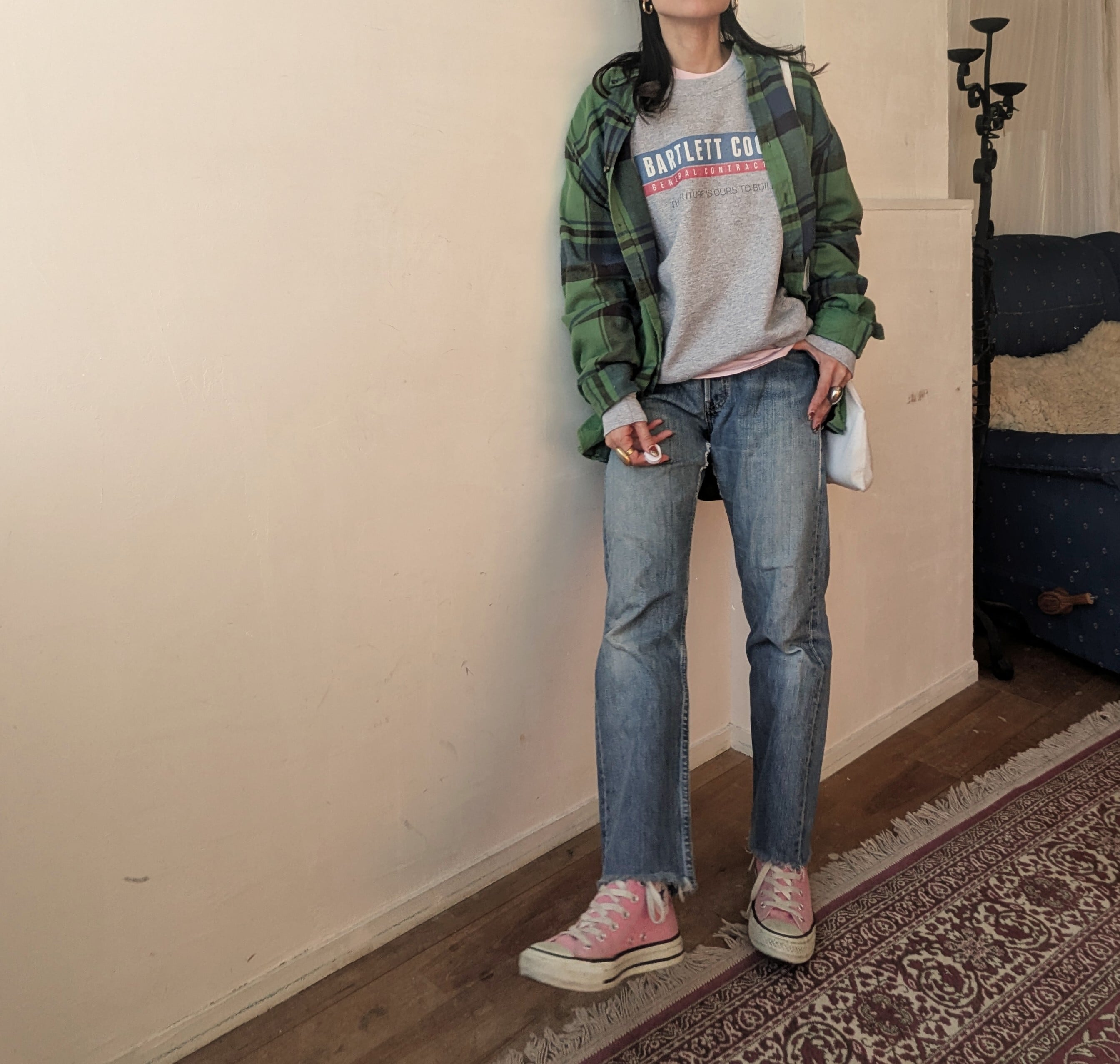 ゆったりとしたサイズ感で、オーバーすぎないサイズ感がどんなボトムともバランスよく着用していただけます。