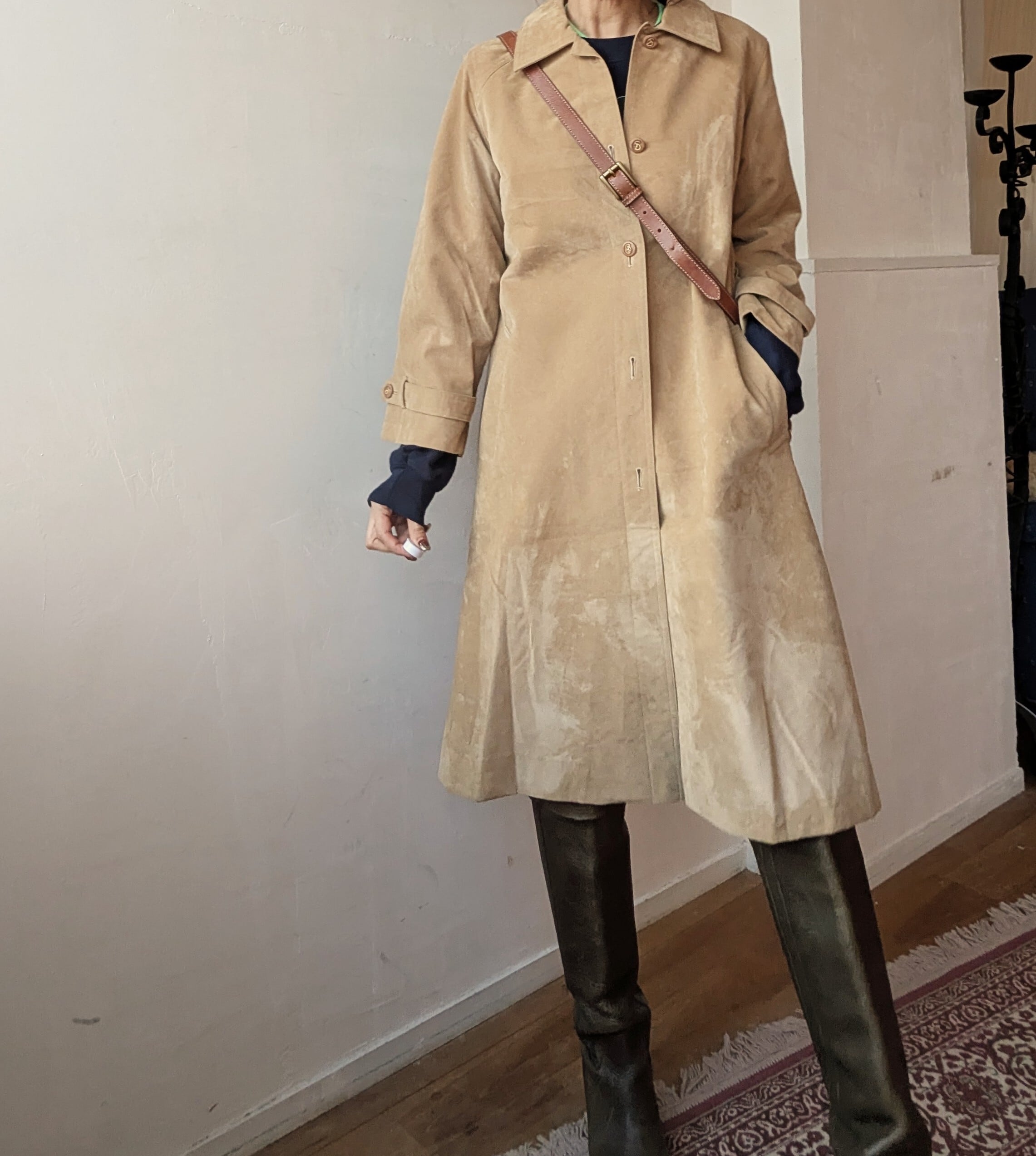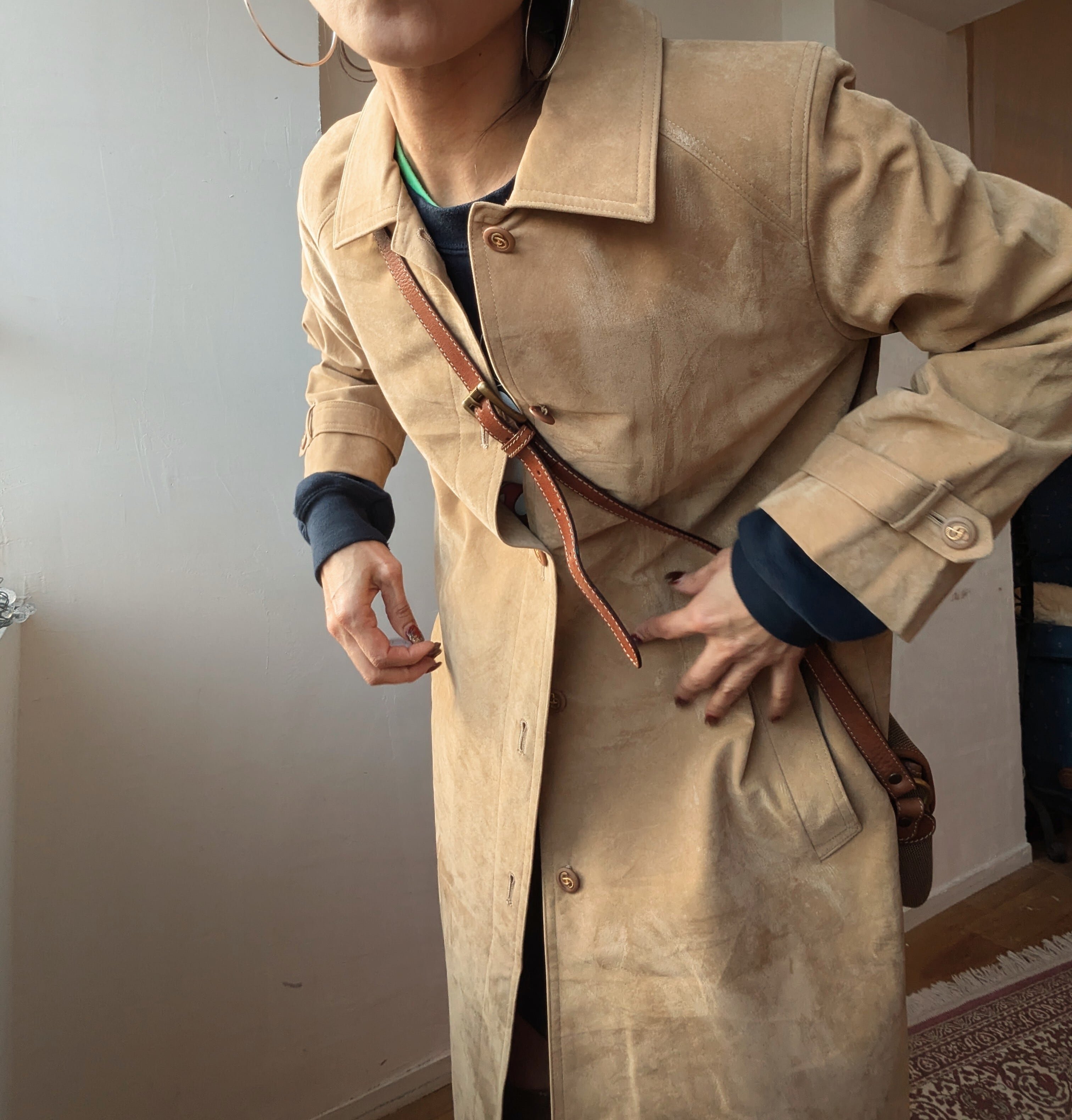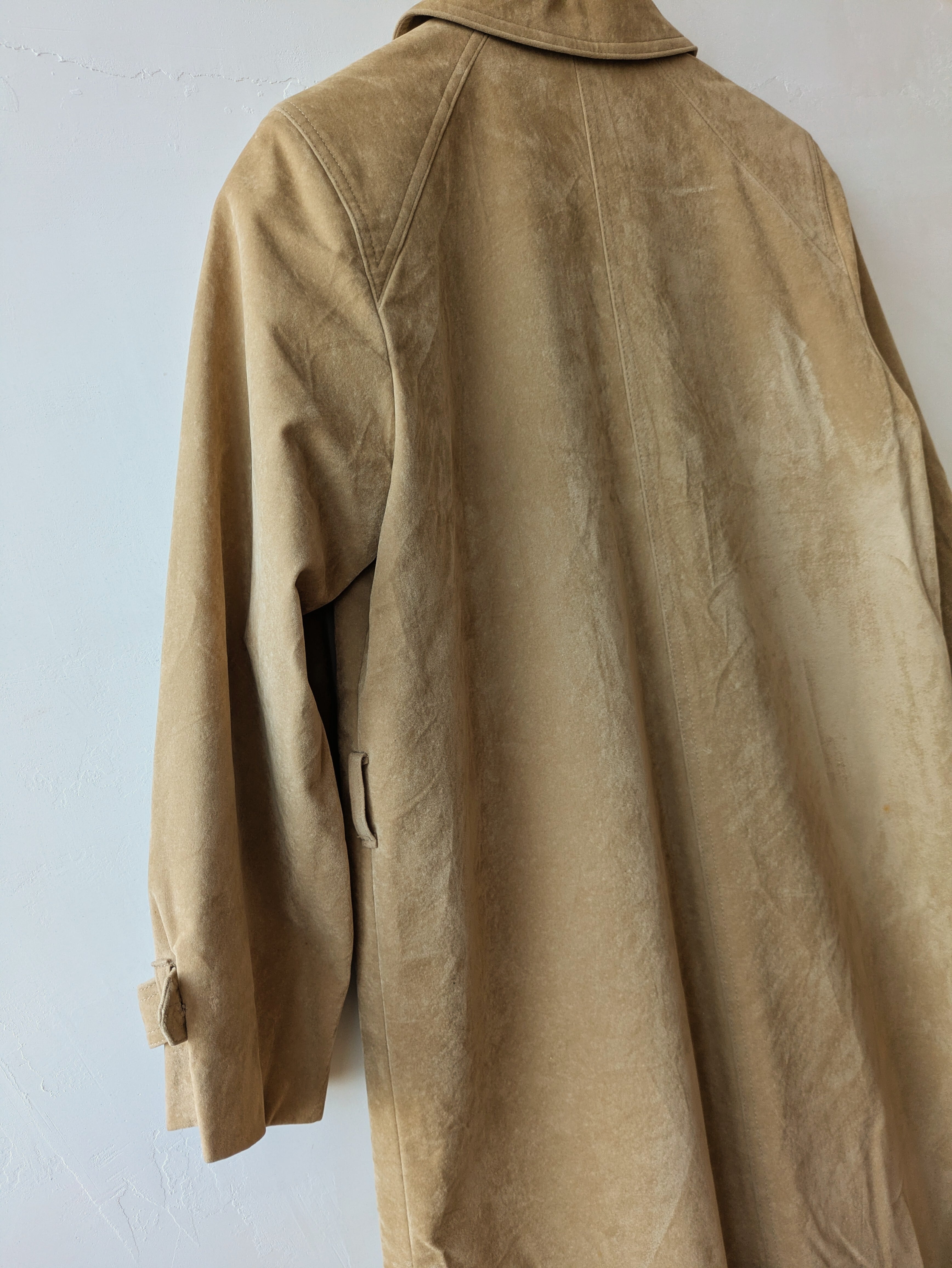 表地はさらっと肌触りの良いスエード調生地が、大人な雰囲気の着心地の良いステンカラーコートです。