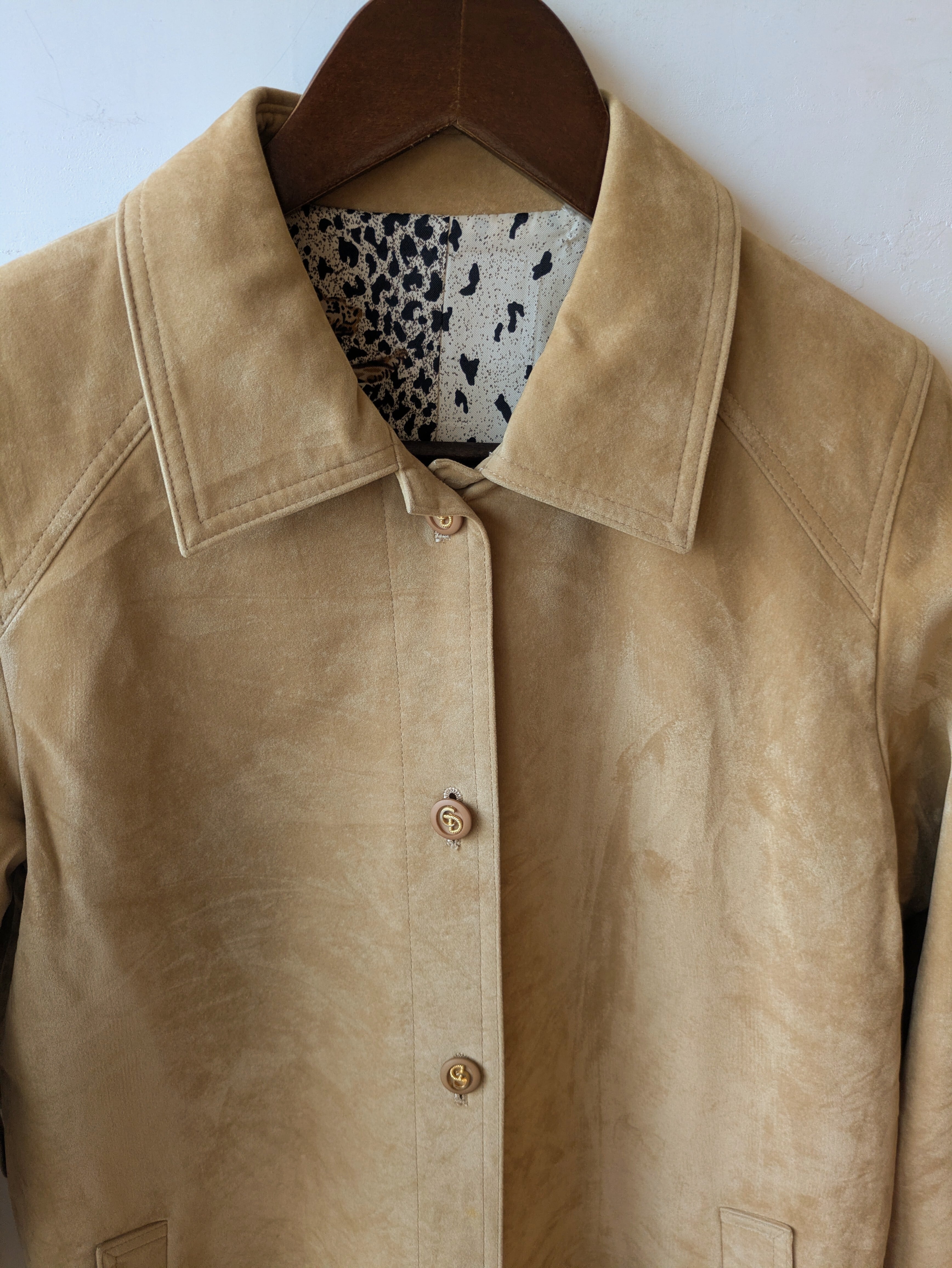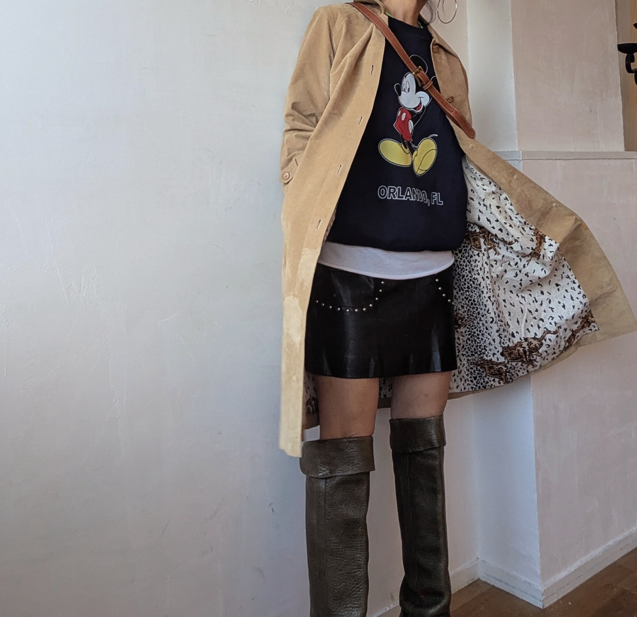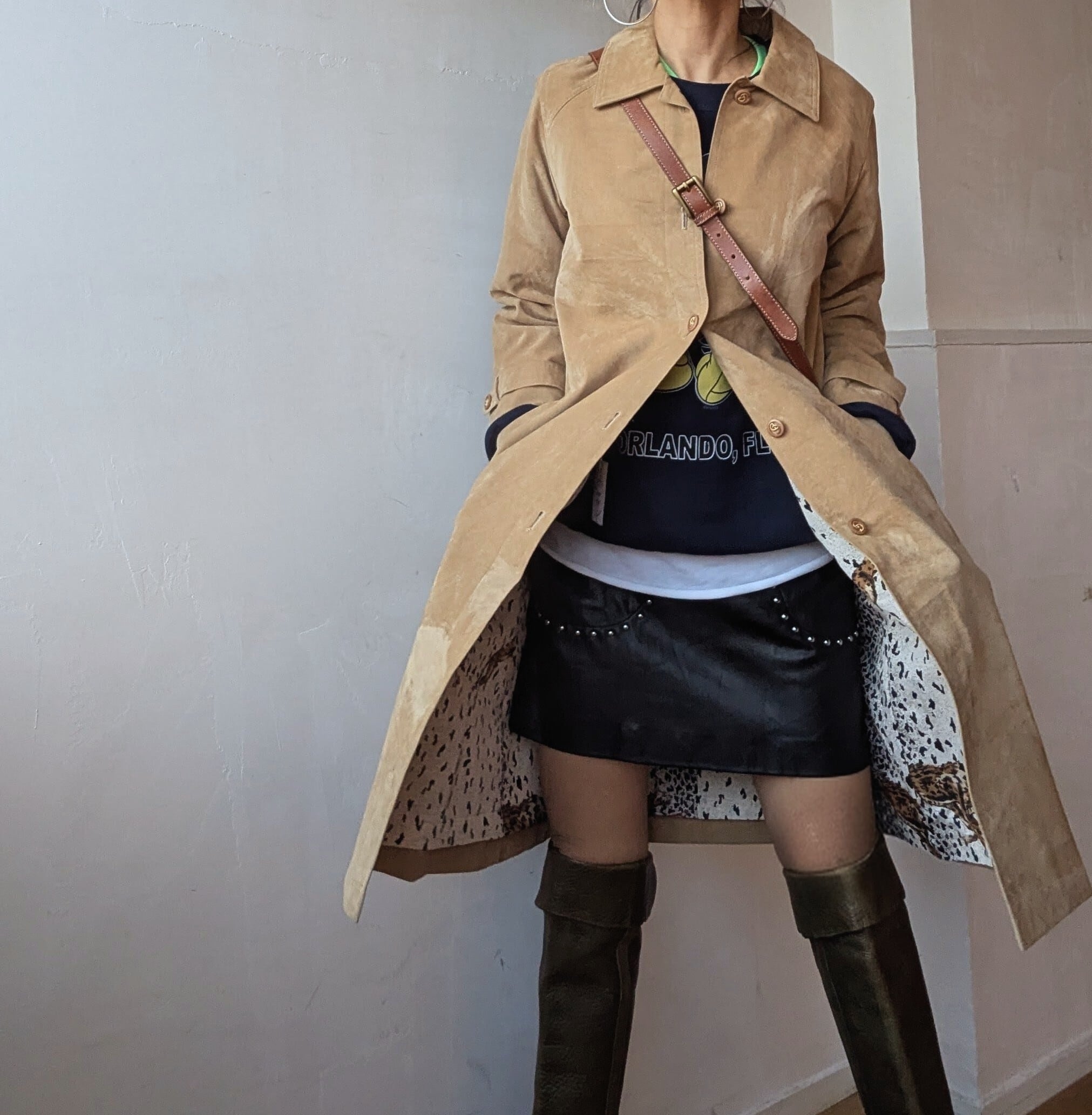 レオパード柄の裏地がさりげなく存在感大で、大人のカジュアルスタイルに華やかさをプラスしてくれます。