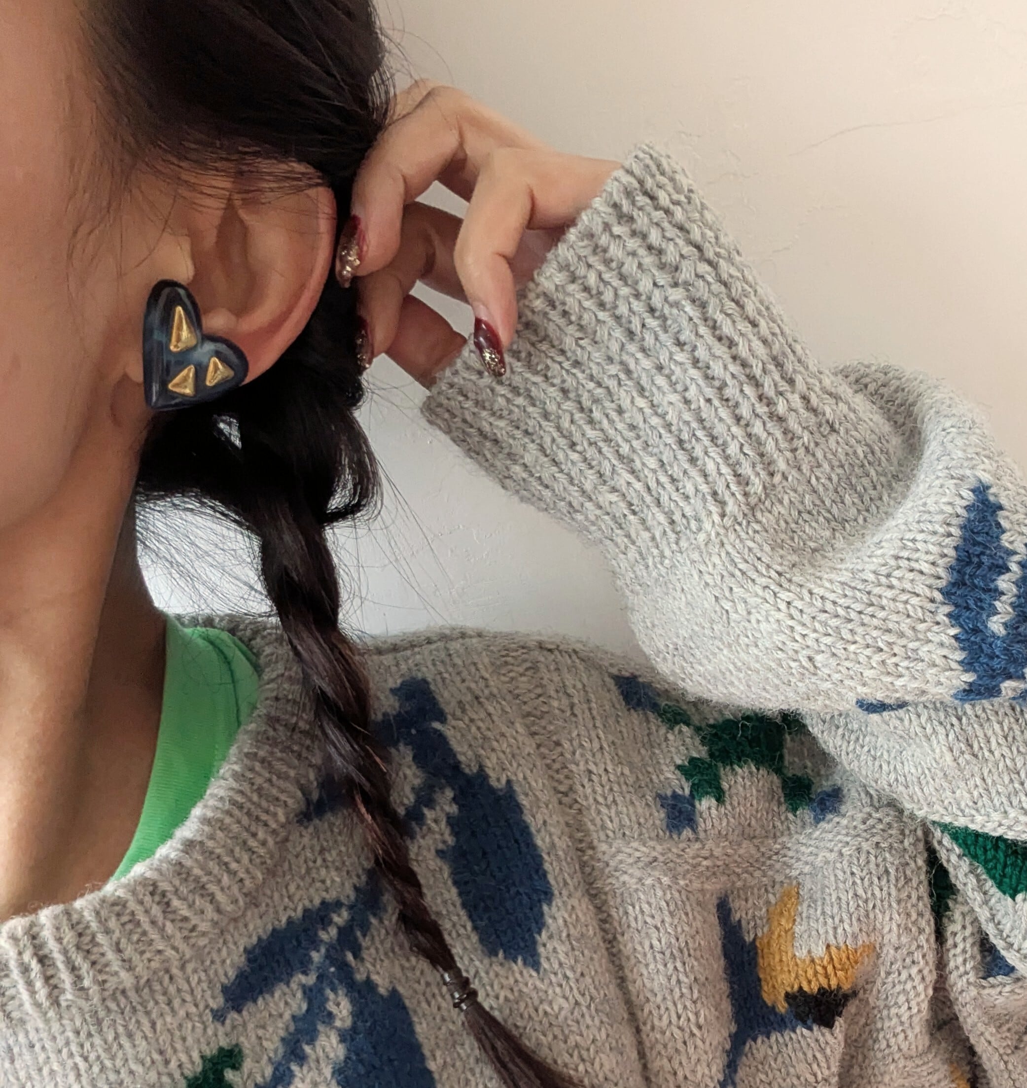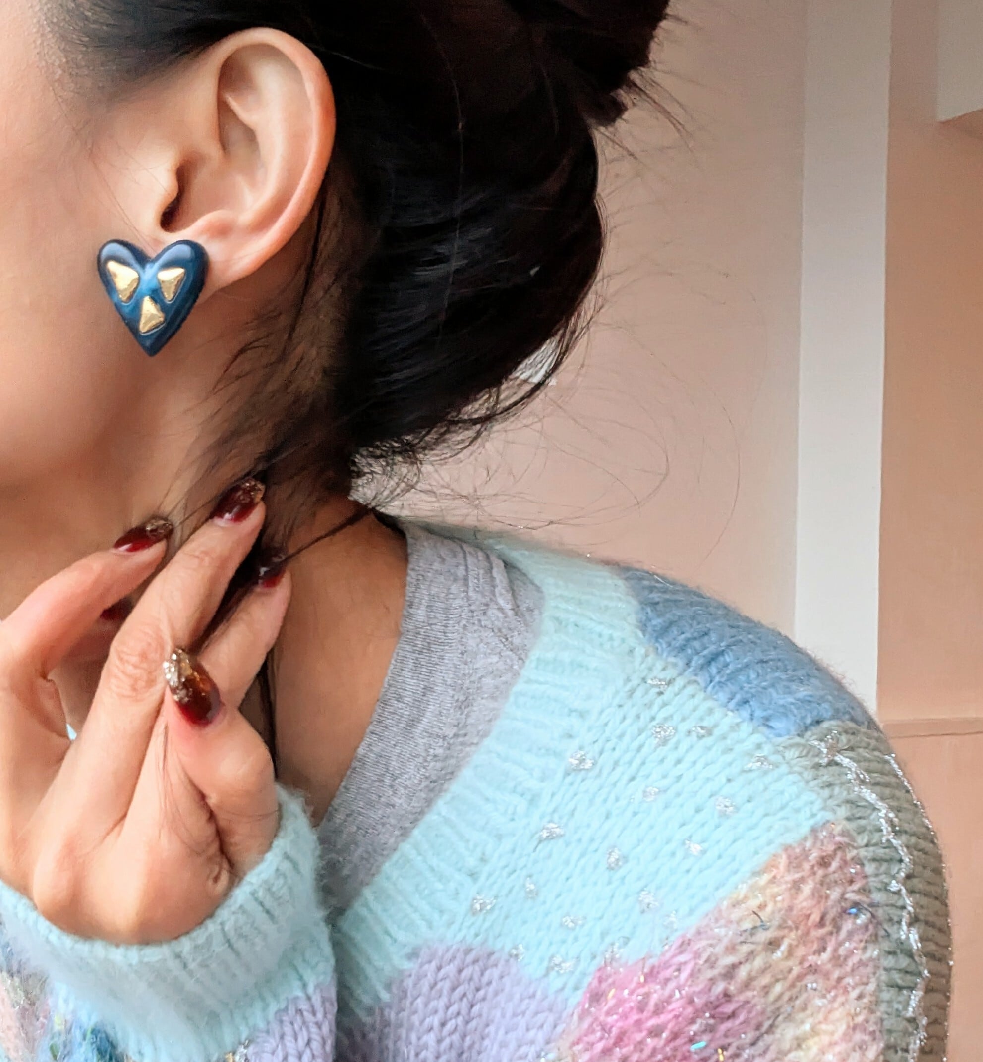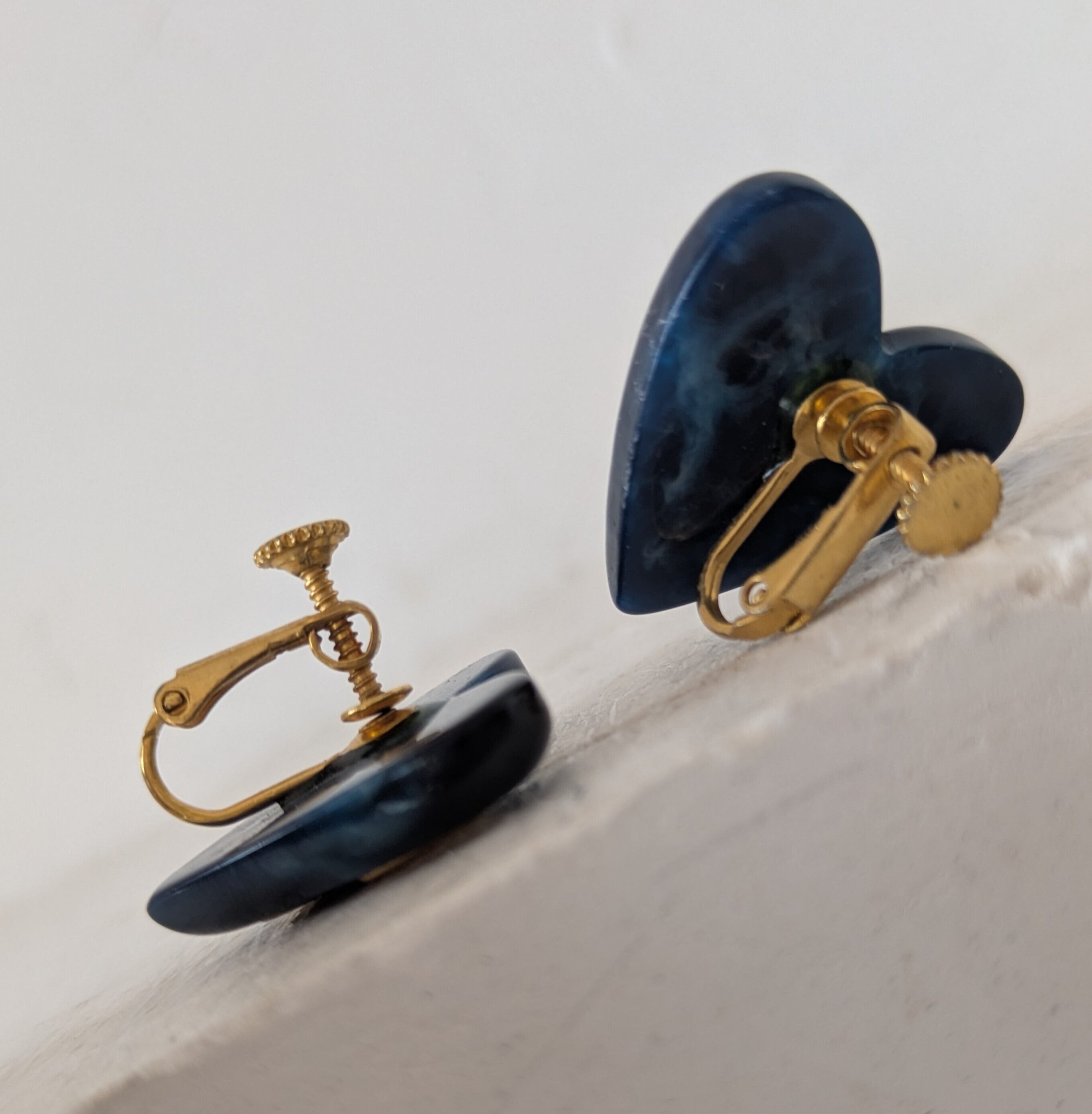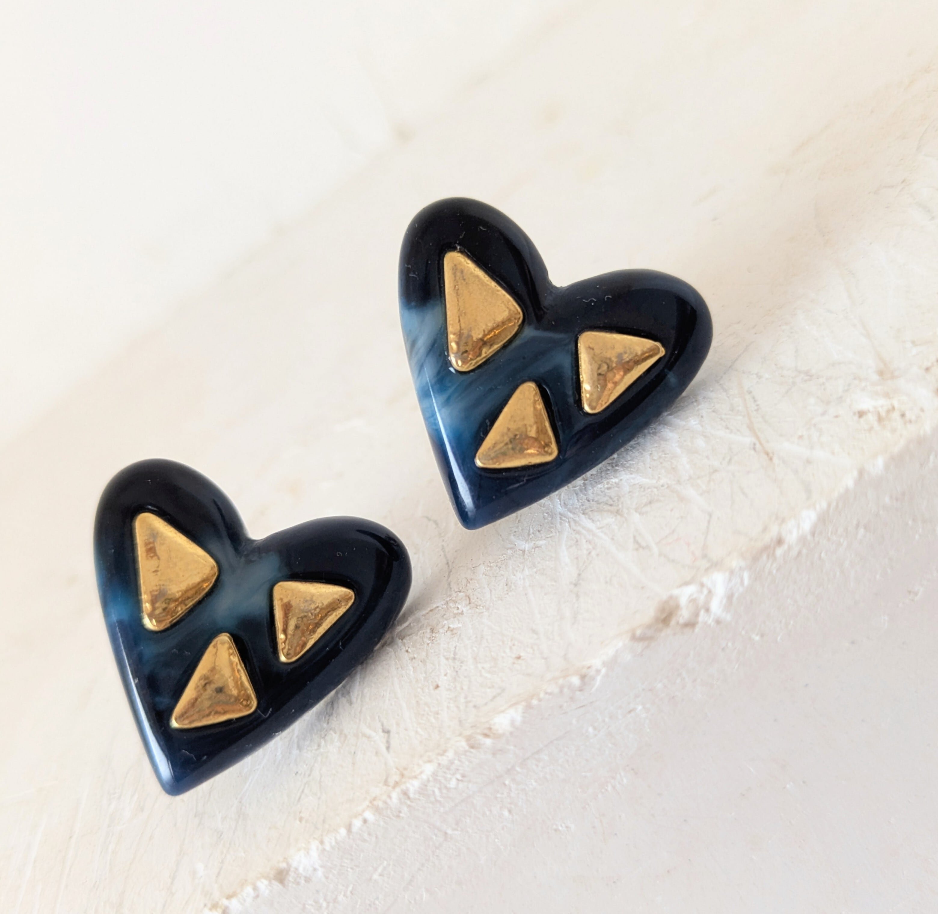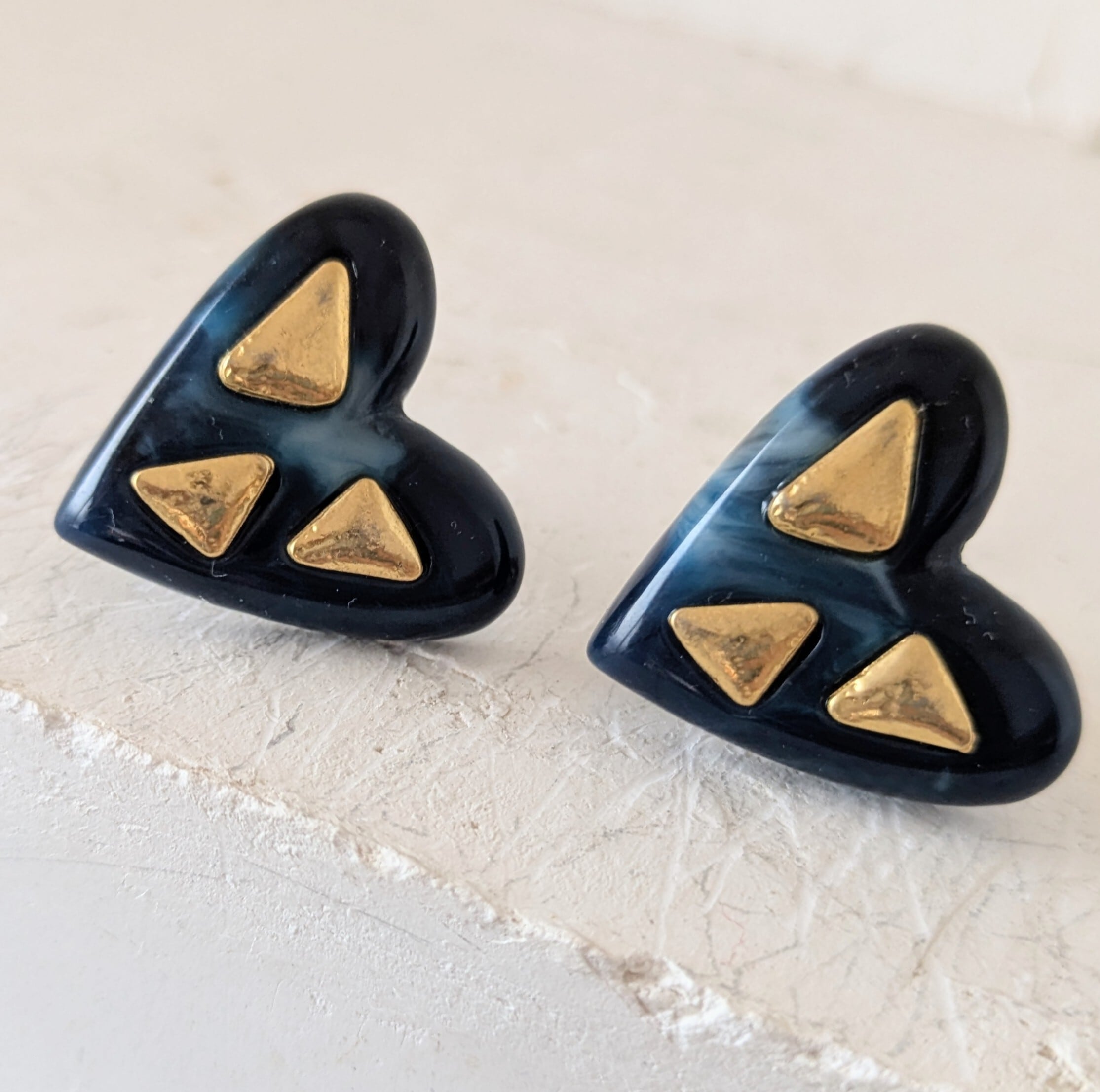 ゴールドとネイビーのマーブル模様が可愛いハート型イヤリングです。