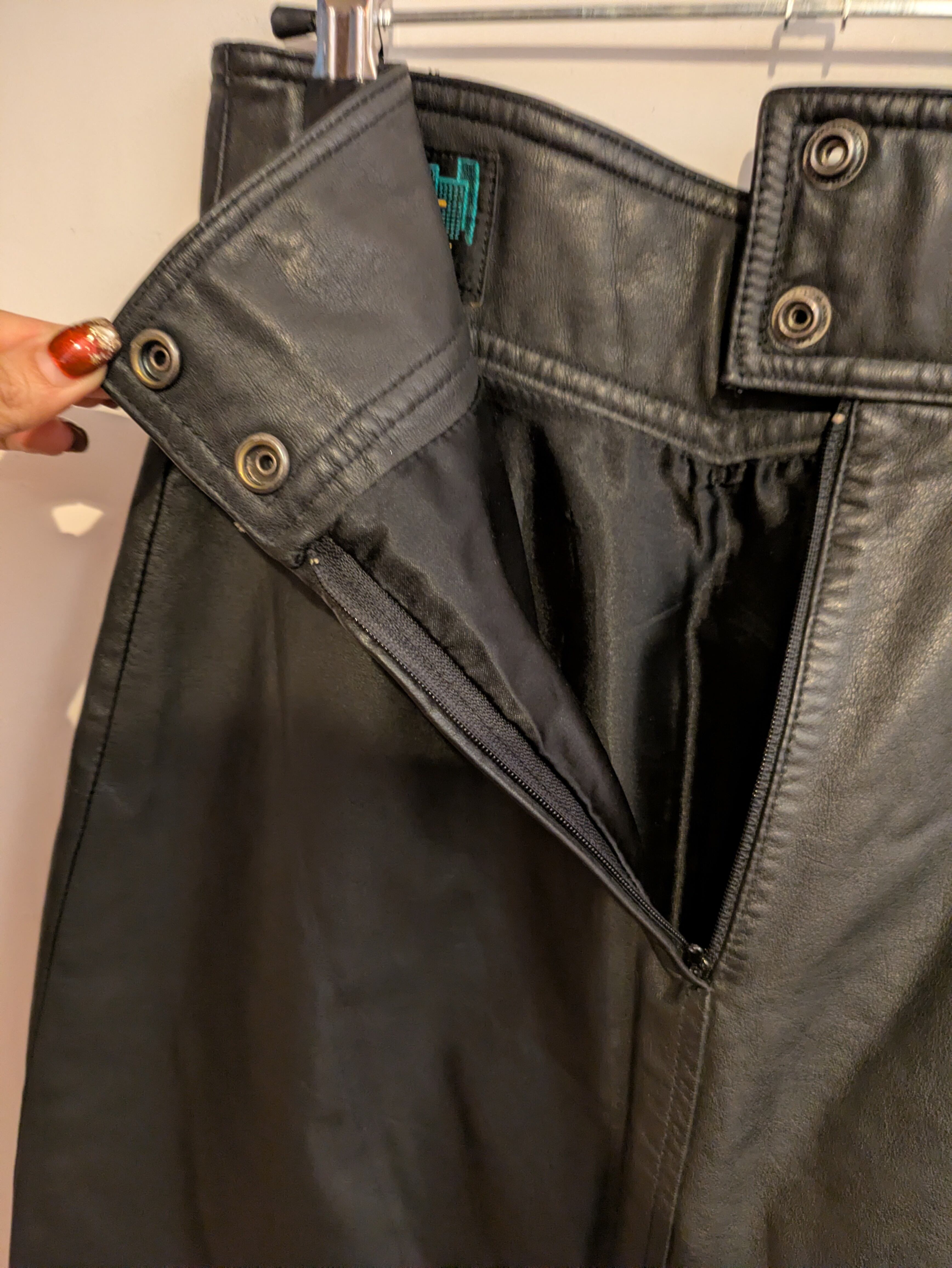 シンプルながらもハイウエスト&太めのベルベトデザインや、スタッズがかっこよく、スッキリとした縦ラインシルエットが脚長効果もあり、スタイルアップ効果も。どんなトップスとも相性抜群です。