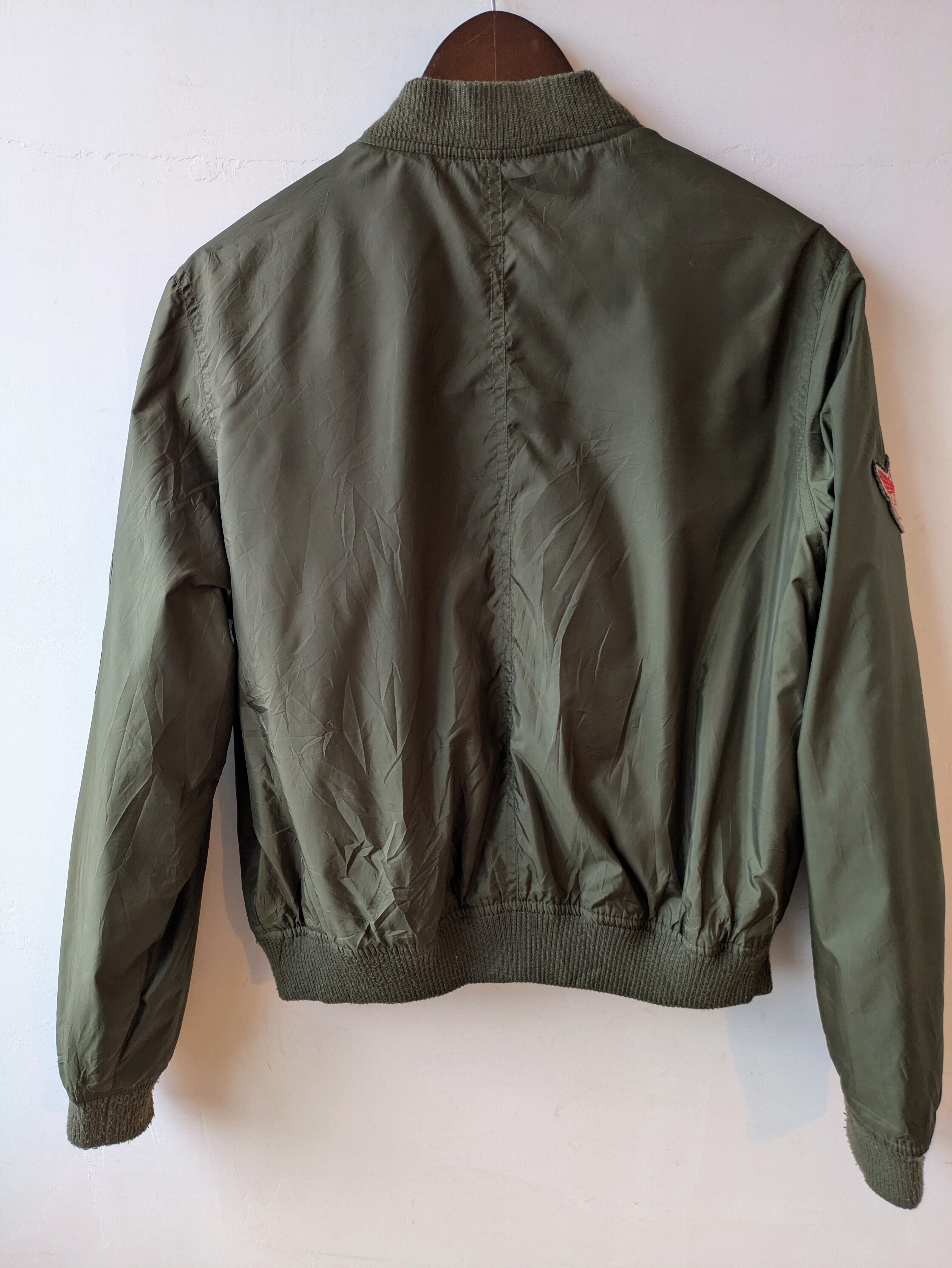 さらっとしたナイロン素材のワッペンがかっこいいミリタリースタジアムジャンパー。