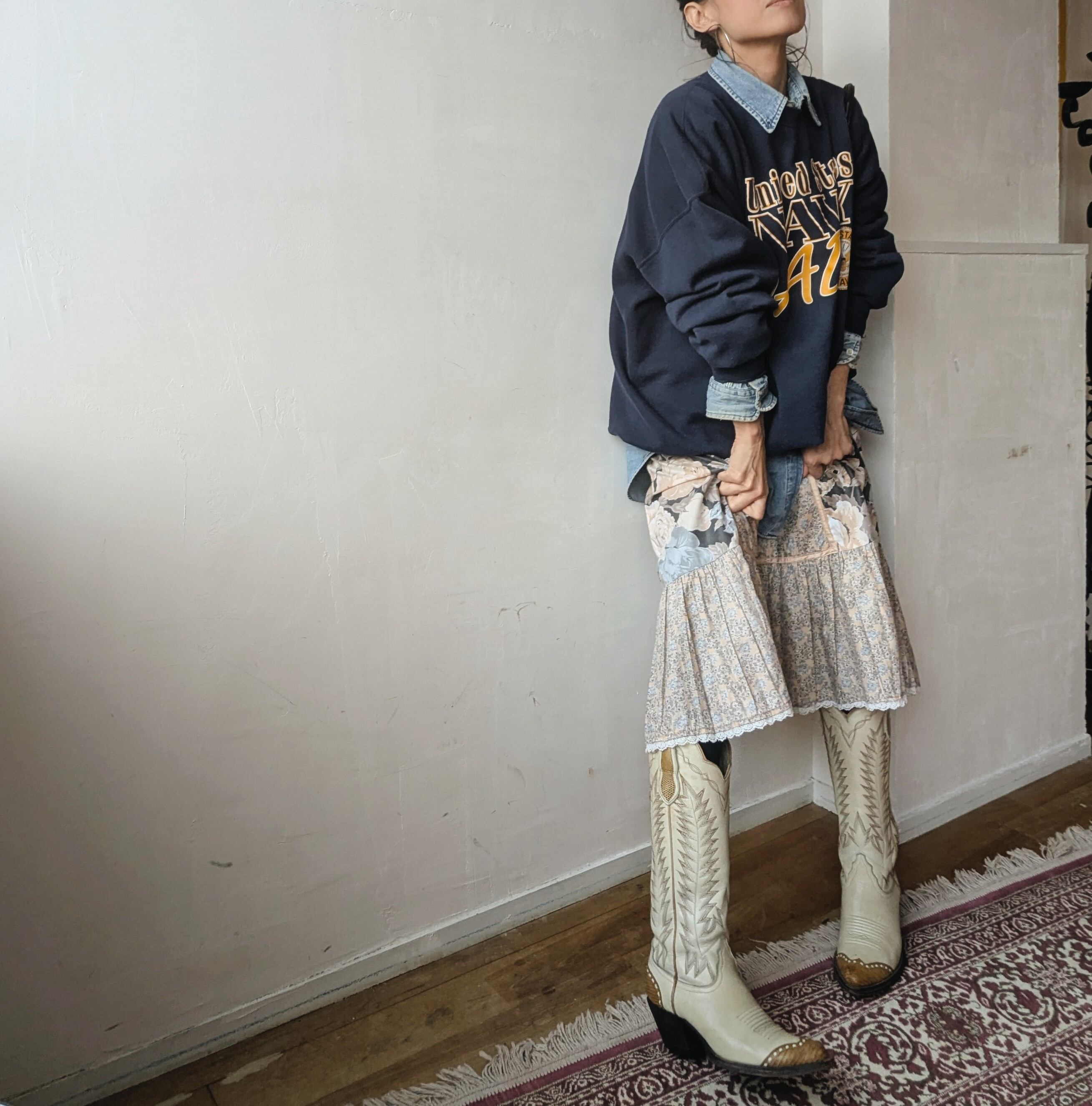 パンツをインしたスタイルや、ワンピースや、ロングスカートとも相性抜群。