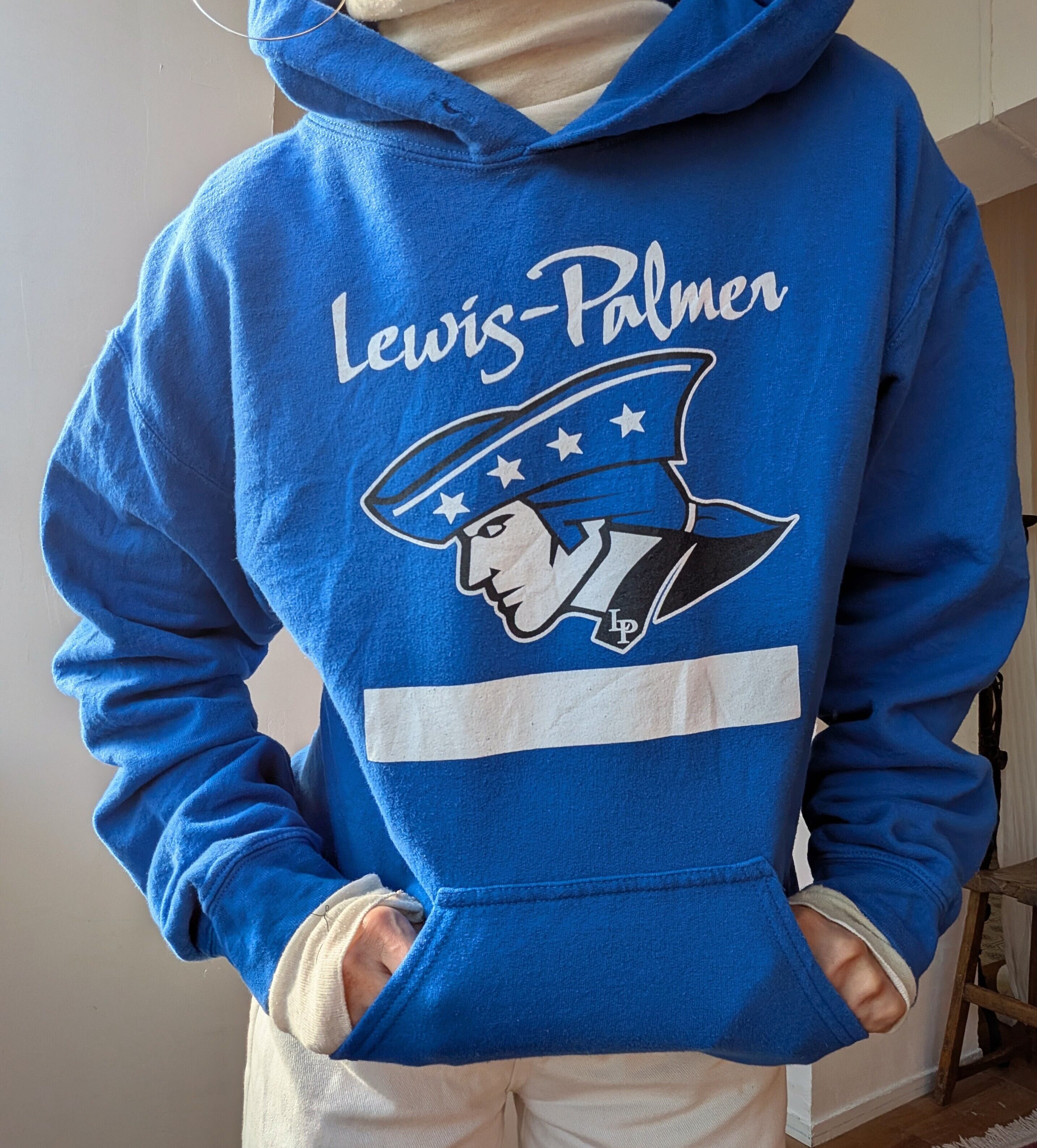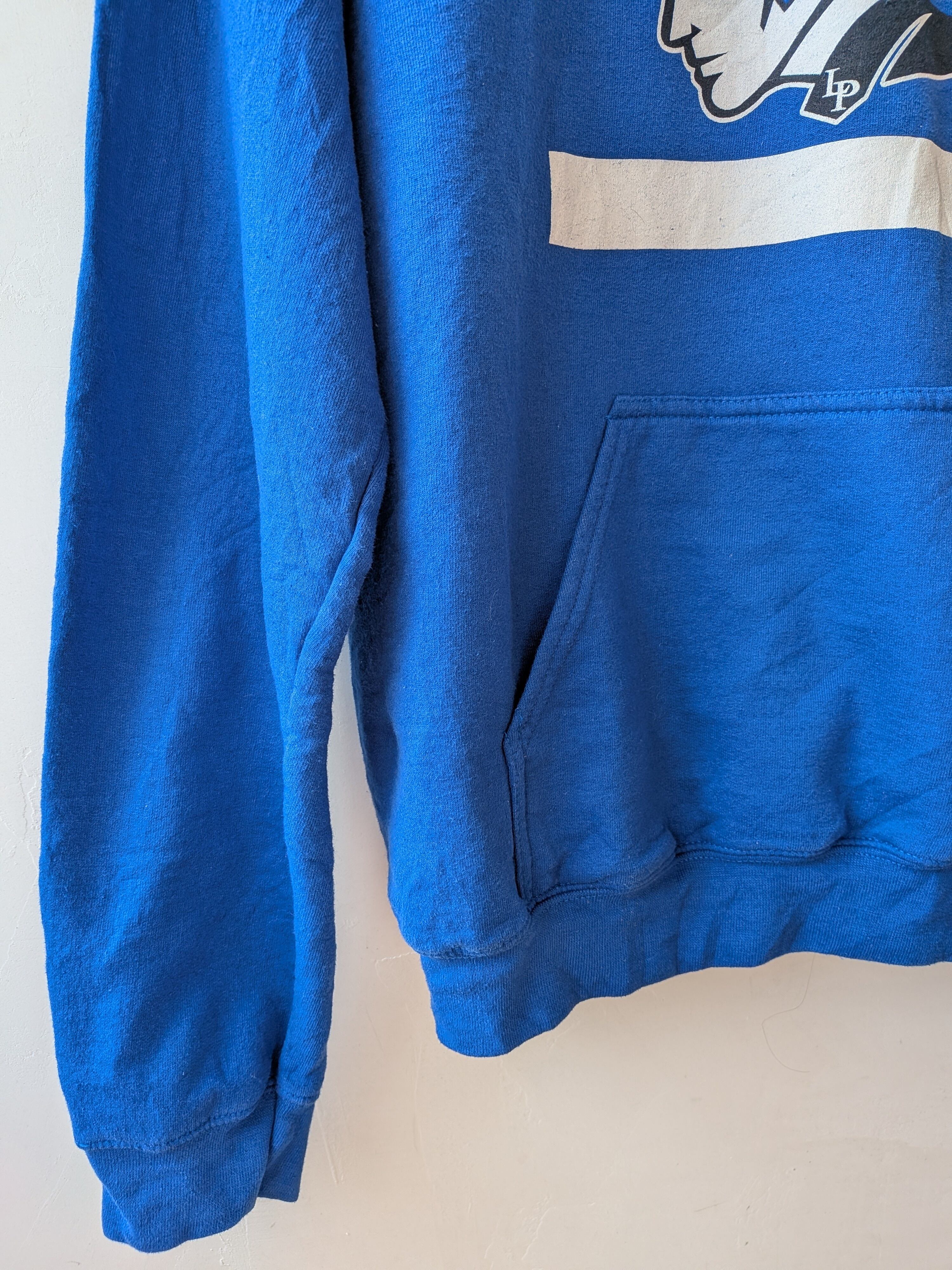 フロントの紳士なデザインと、明るいブルーカラーのボディにホワイトのロゴが目を惹くGILDAN製foodie