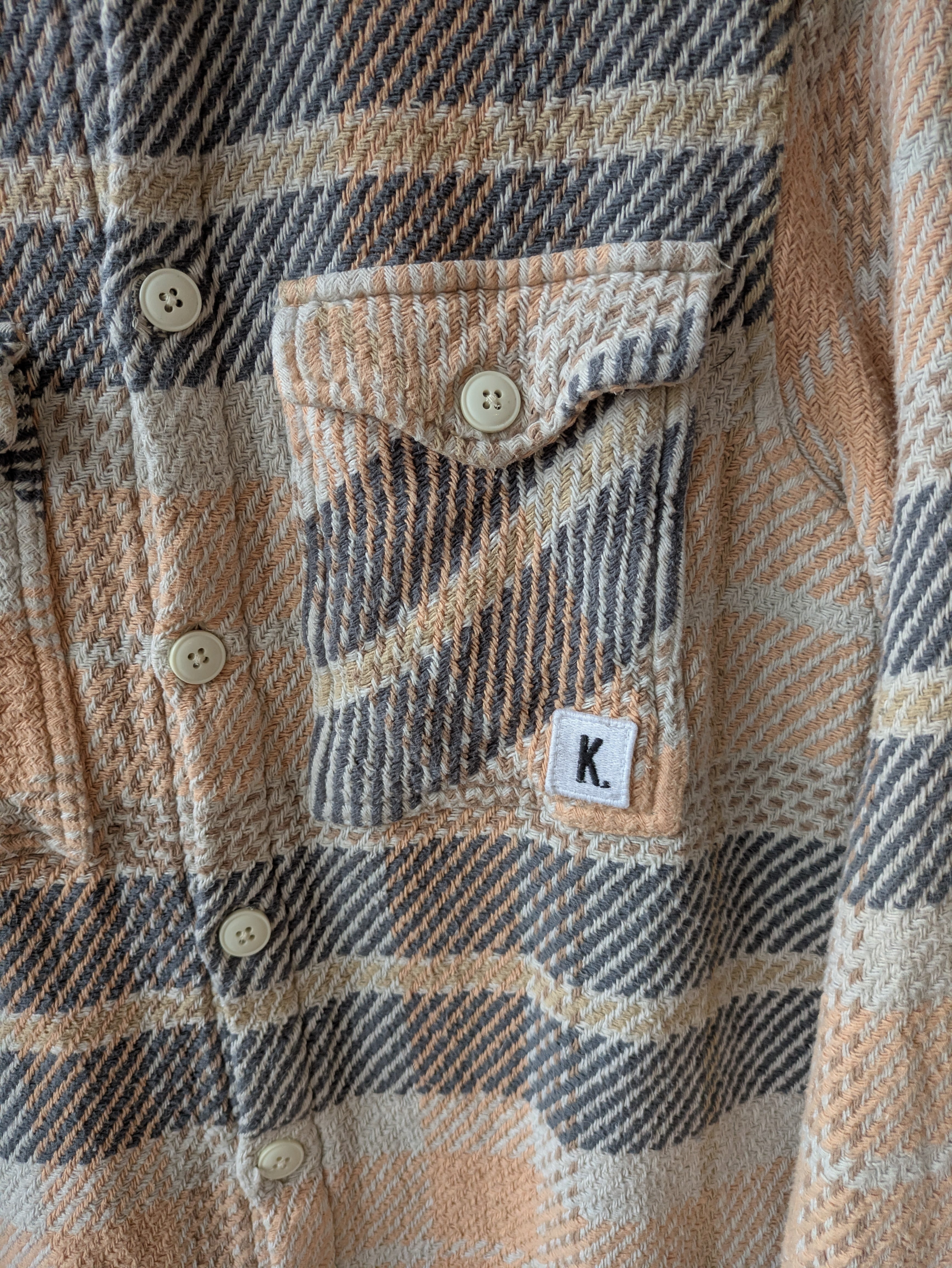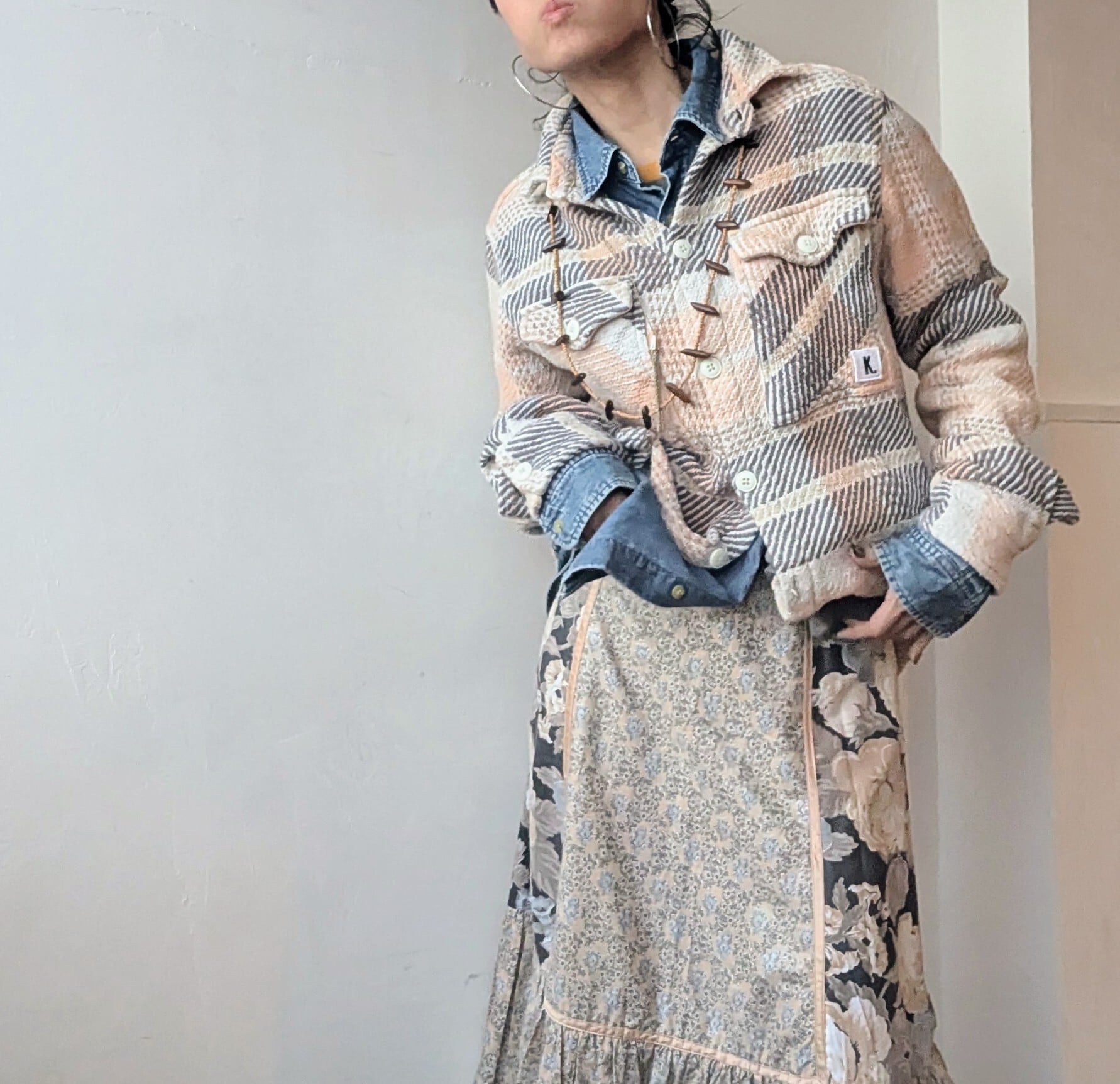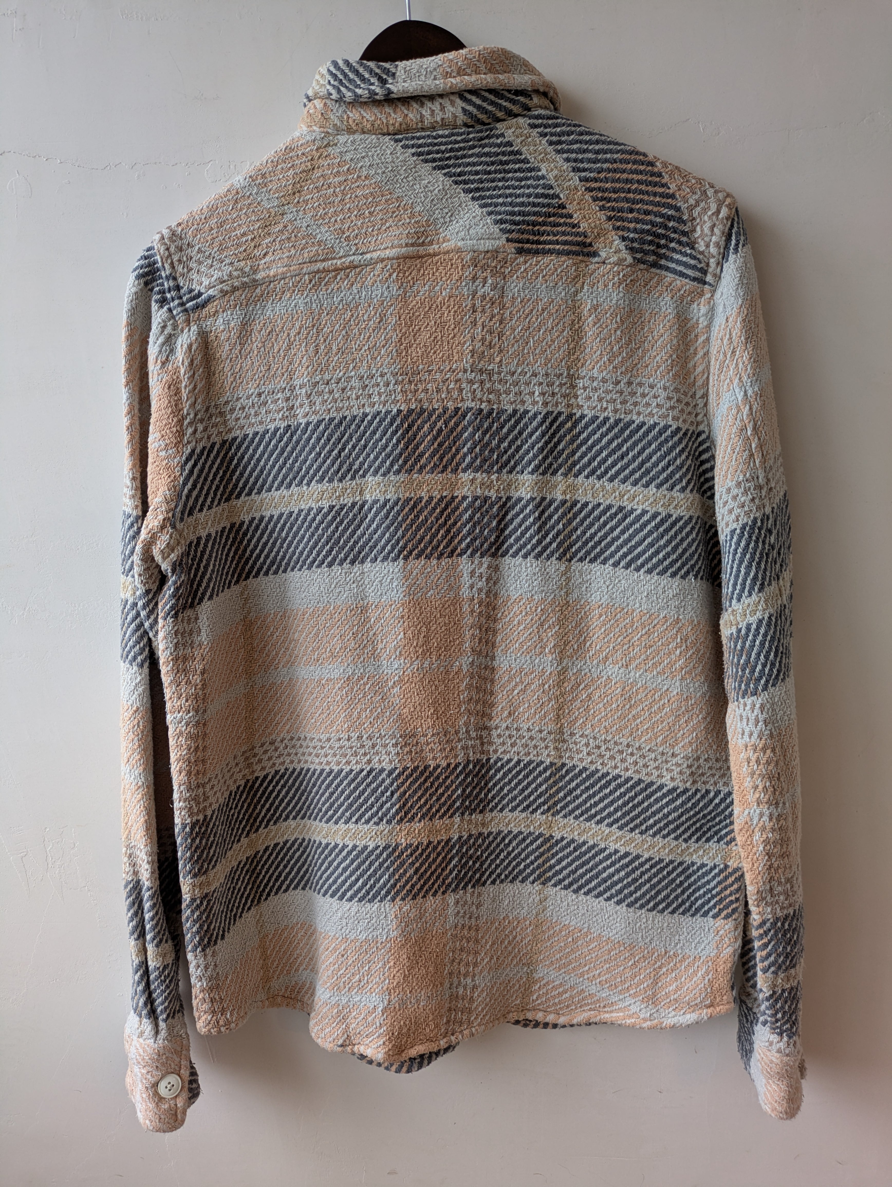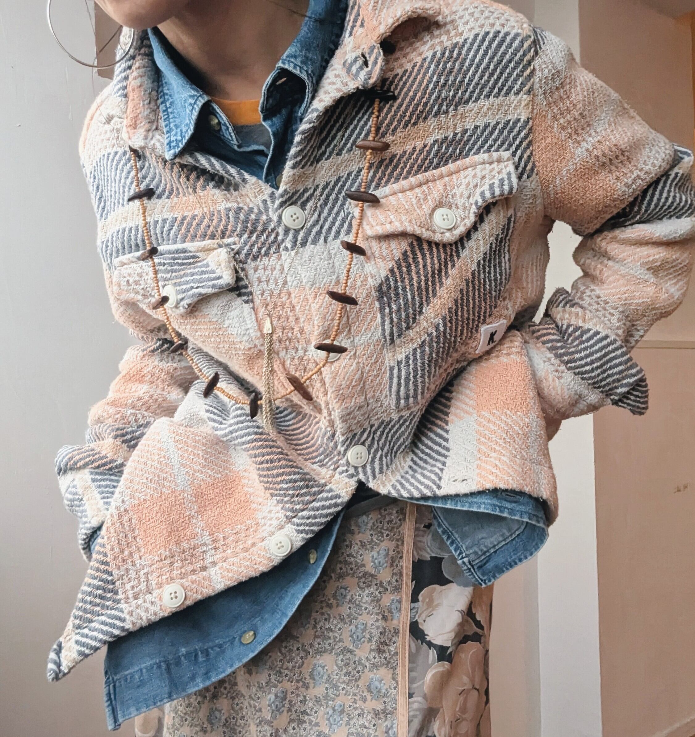 淡いカラーと、Weaving cottonのリラックスしたラフな雰囲気が魅力のshirt Jacketです。
