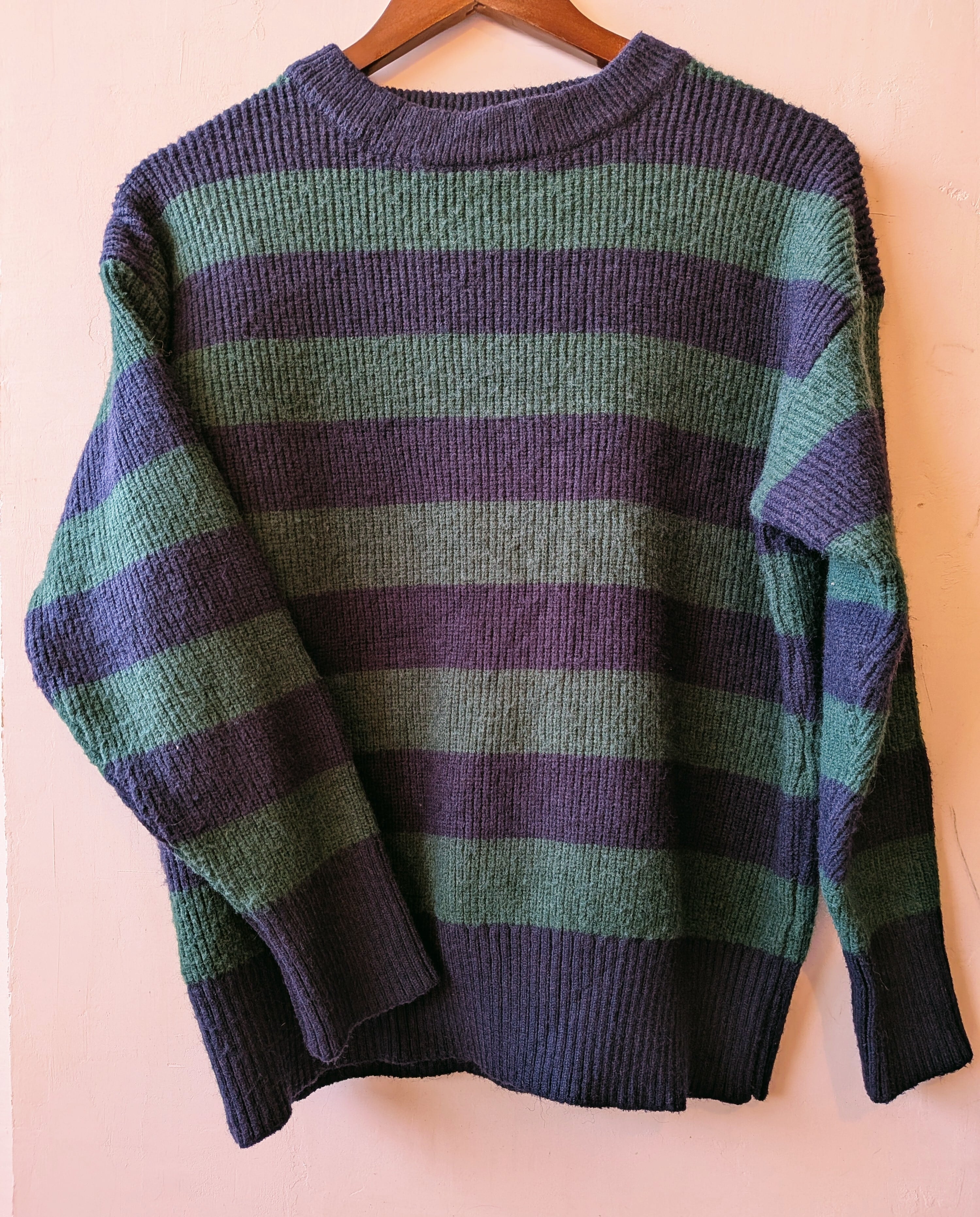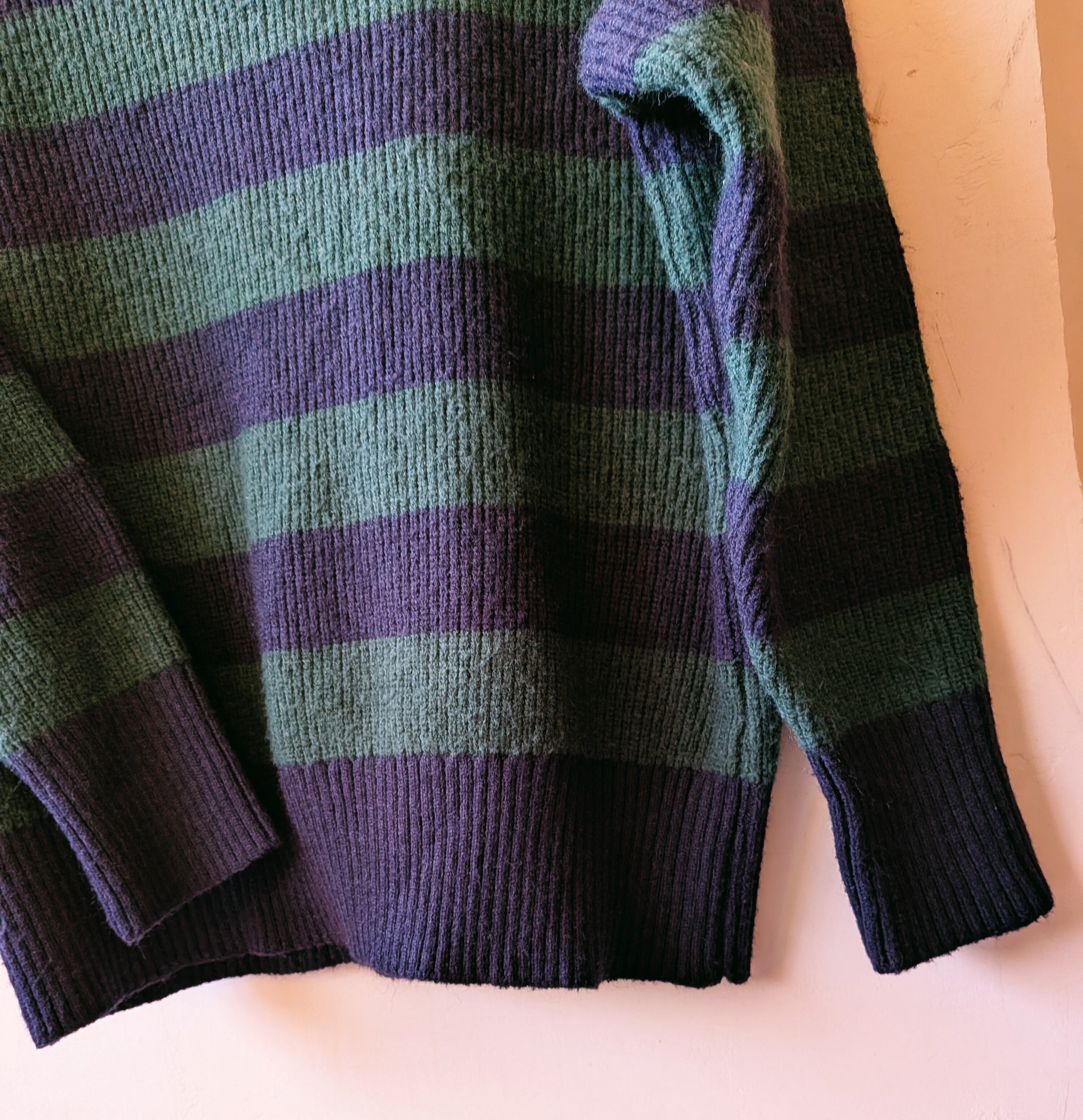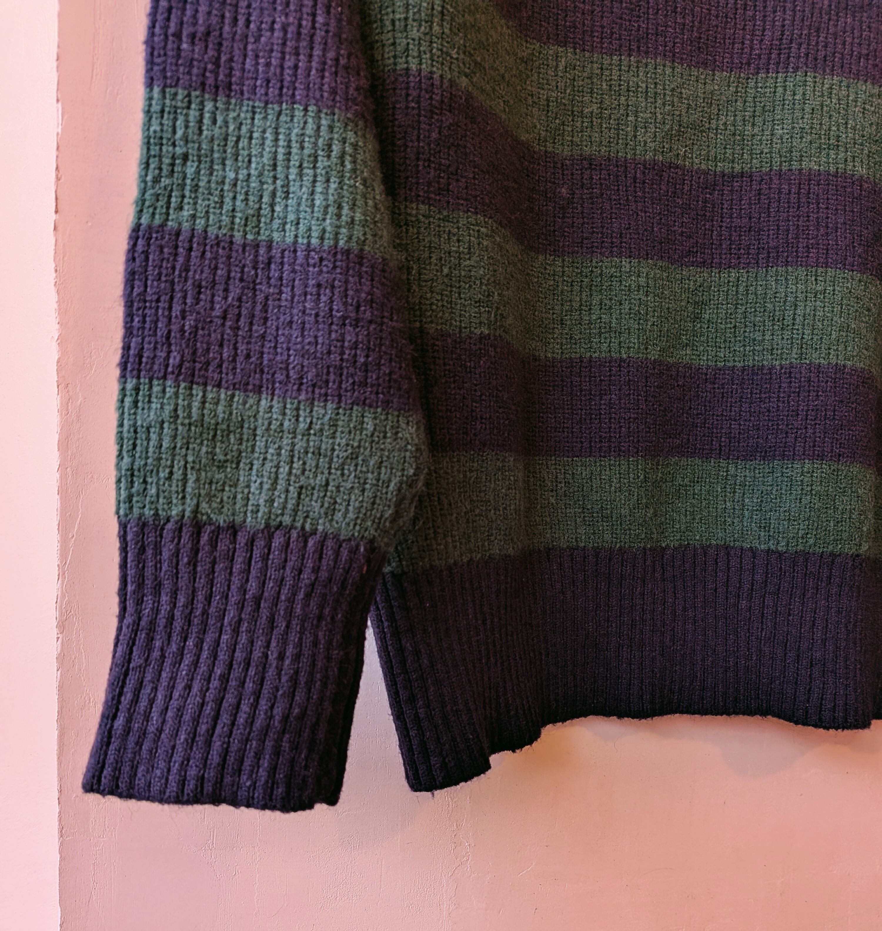 もっちりと肌触りが心地よい、Wool 100%のラウンドネックボーダーニットプルオーバー。