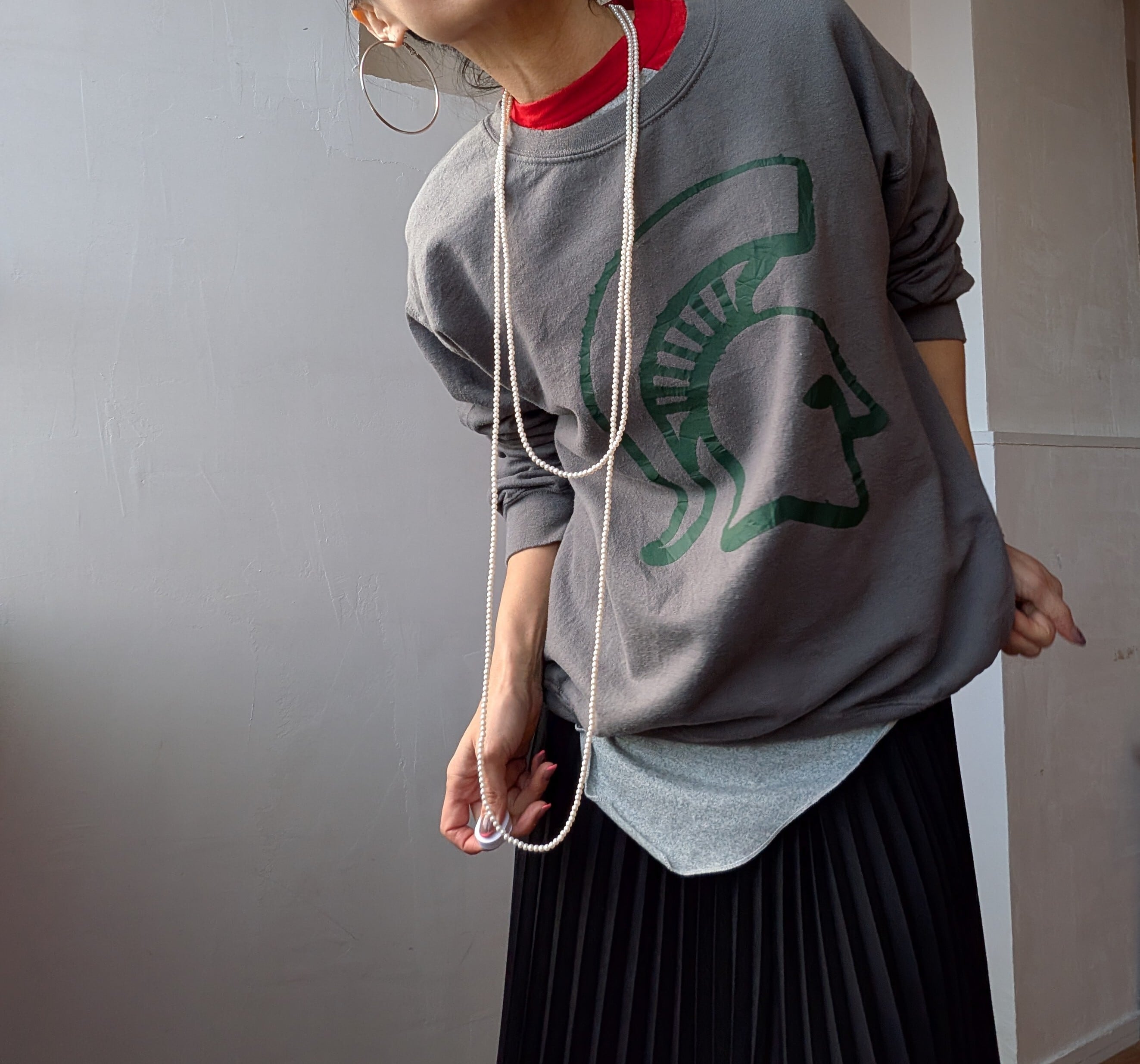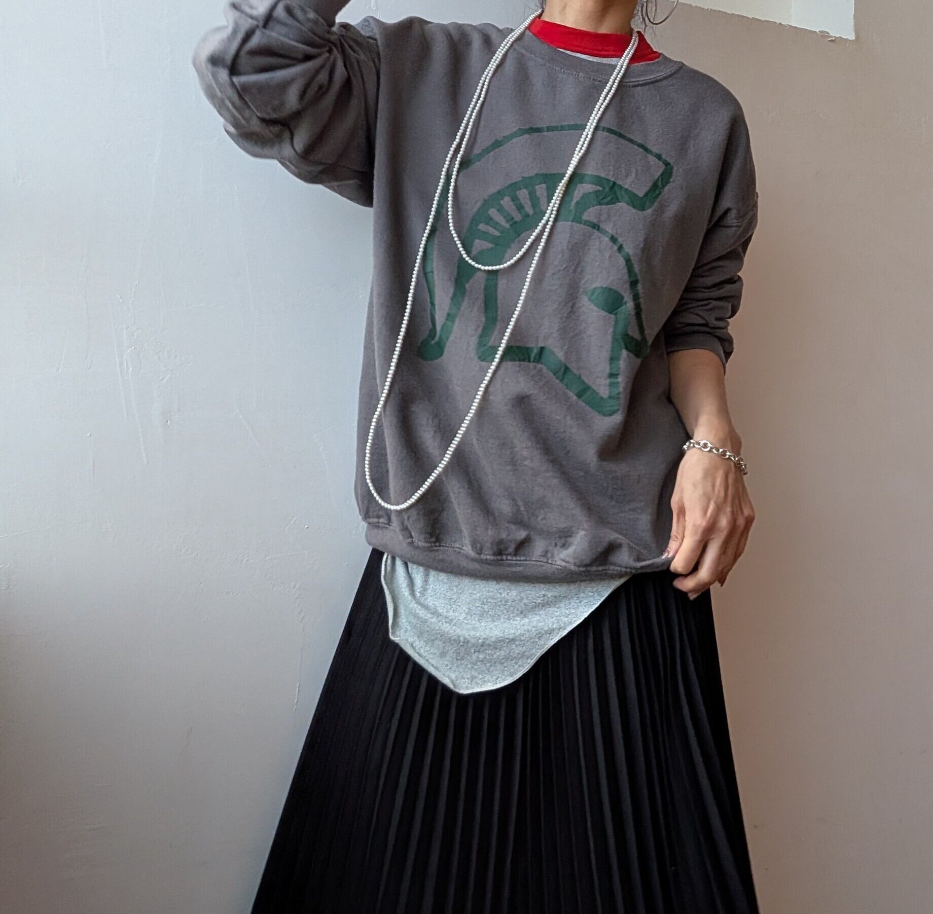グレーのボディにグリーンの色の組み合わせ、戦士のイラストがかわいいスウェット。
