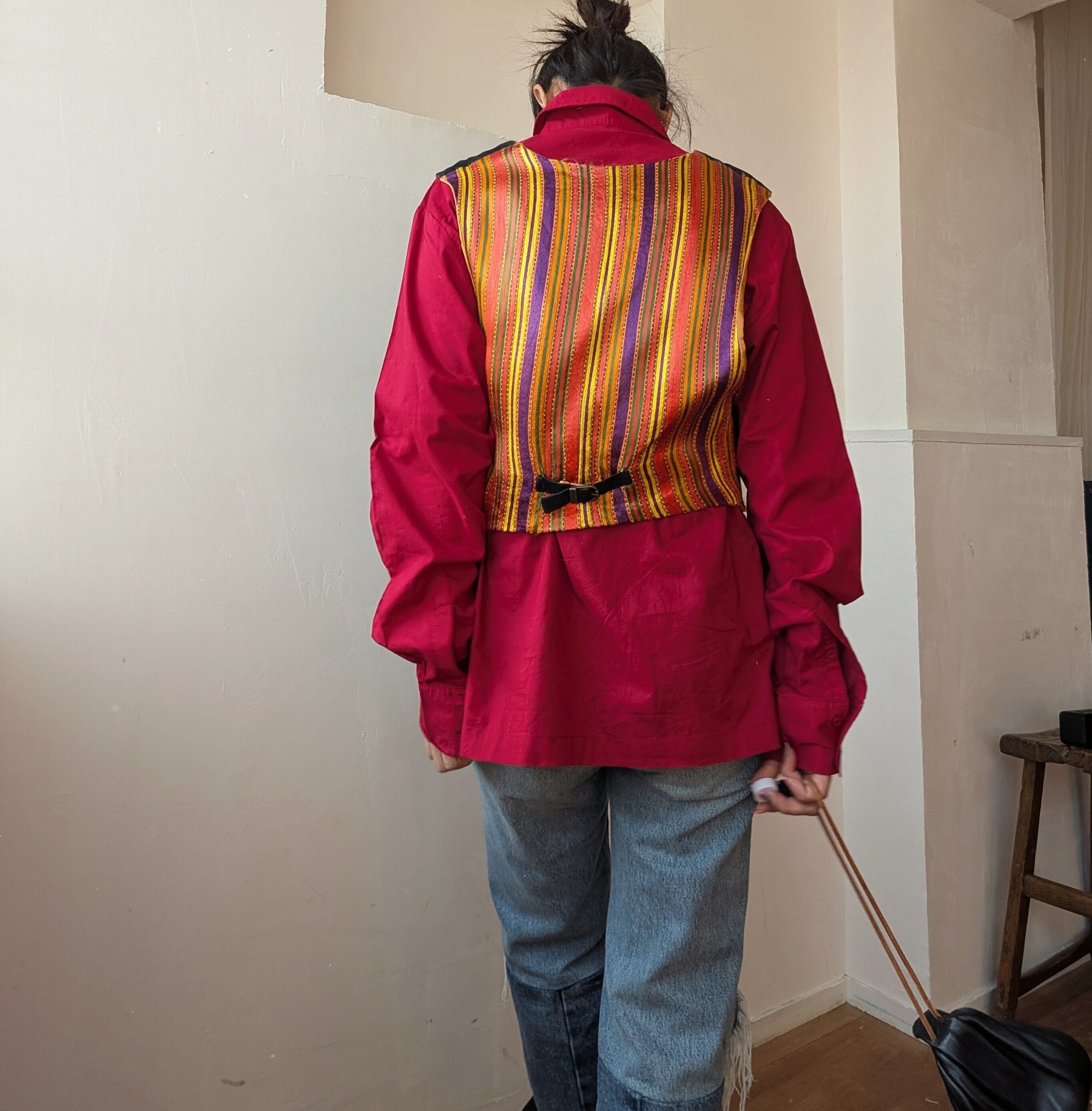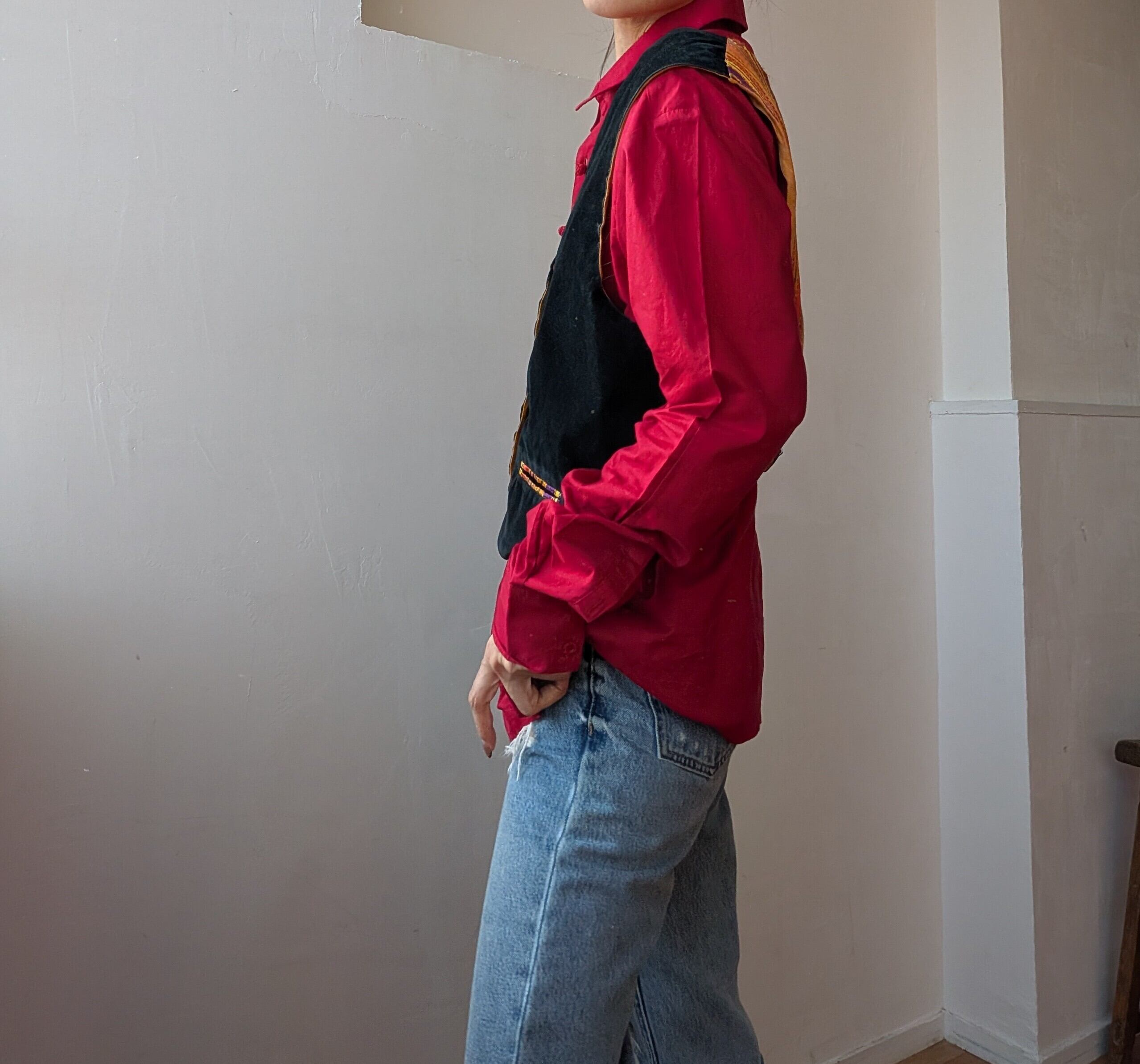 個性的な刺繍と、胸のボタンデザインが特徴で、鮮やかなカラーが目を引く一枚で、カジュアルな日常使いや、レイヤード使いにもおすすめの1着。
