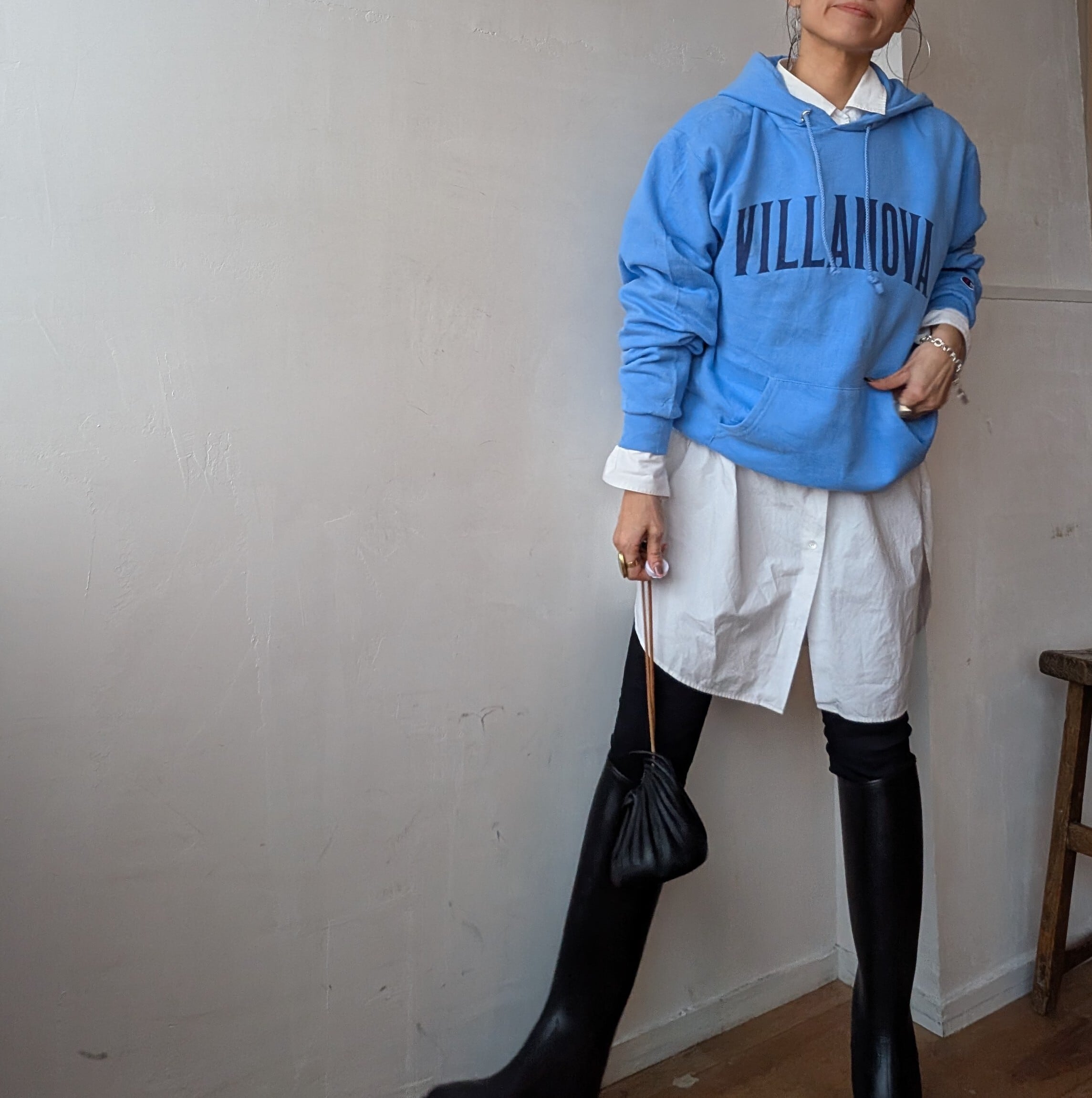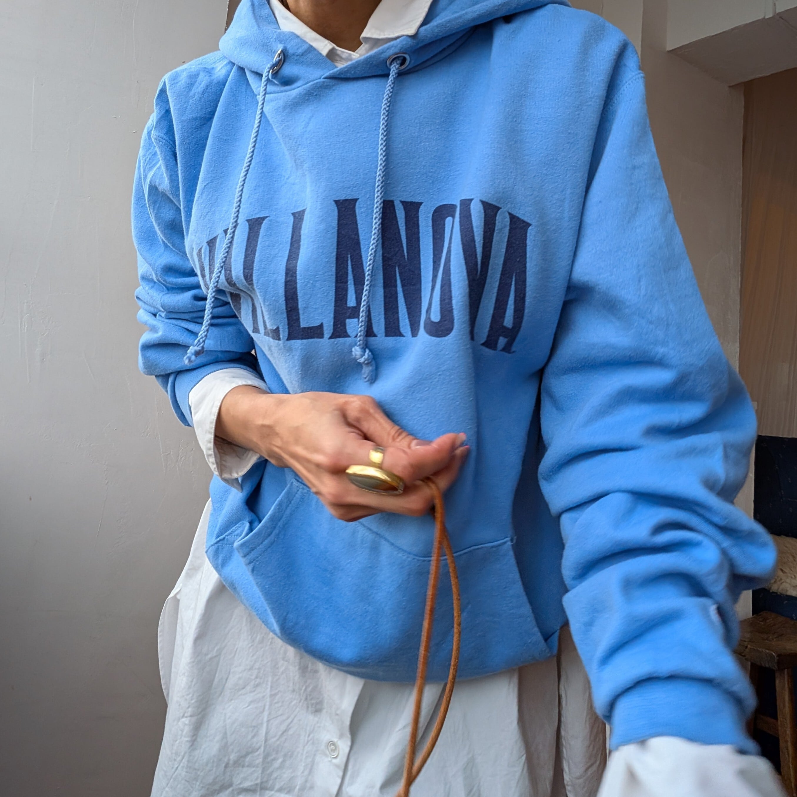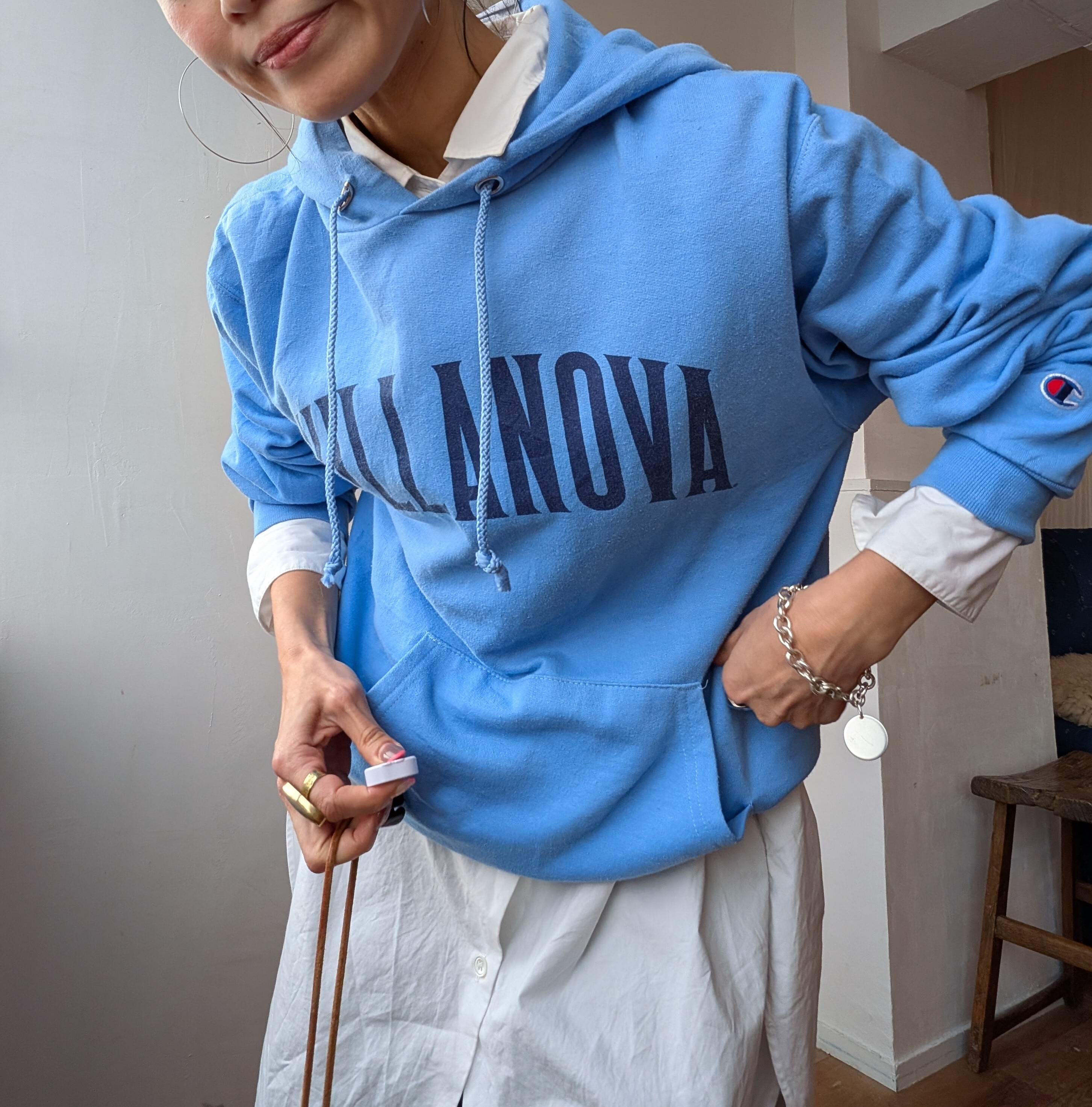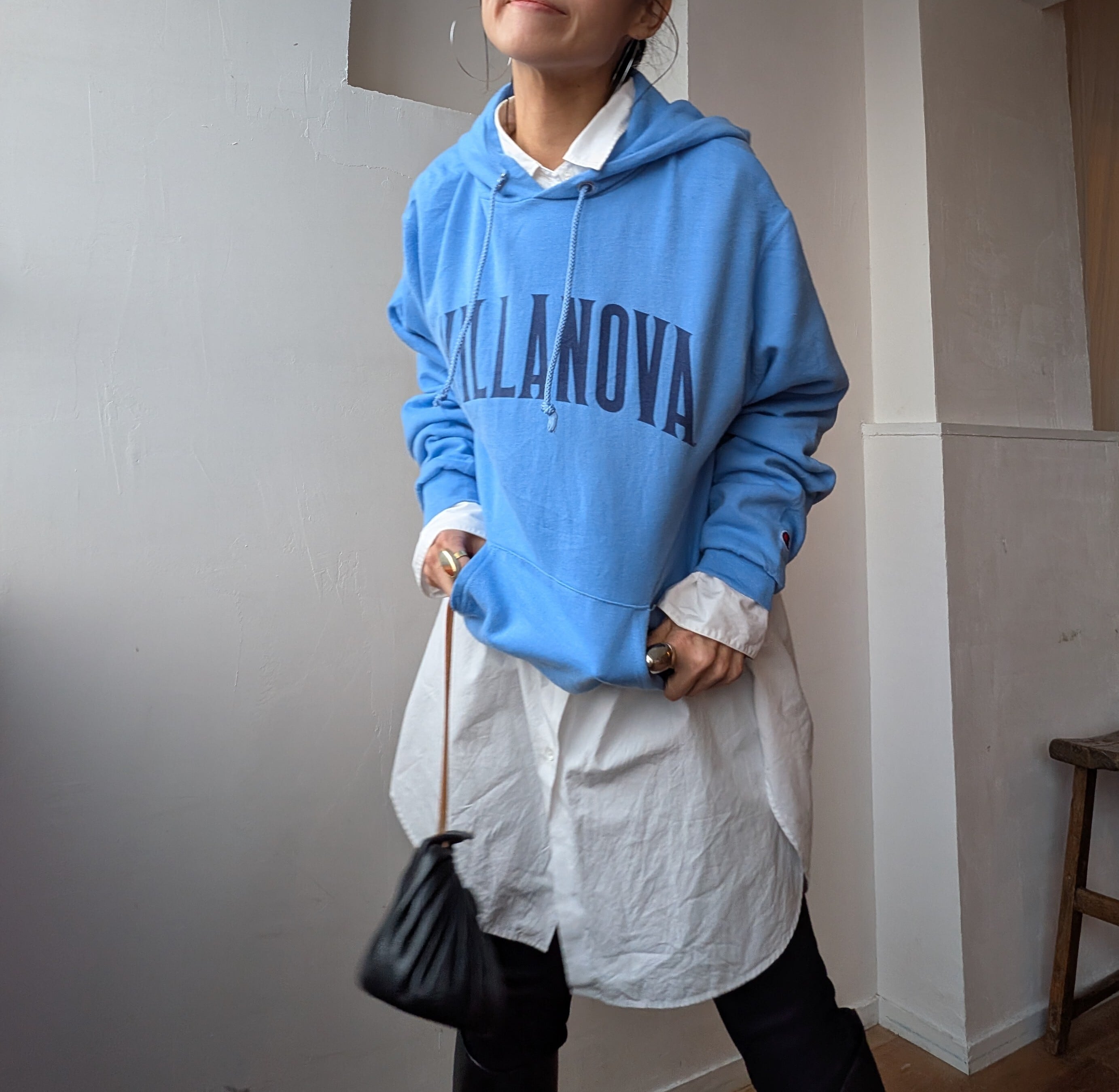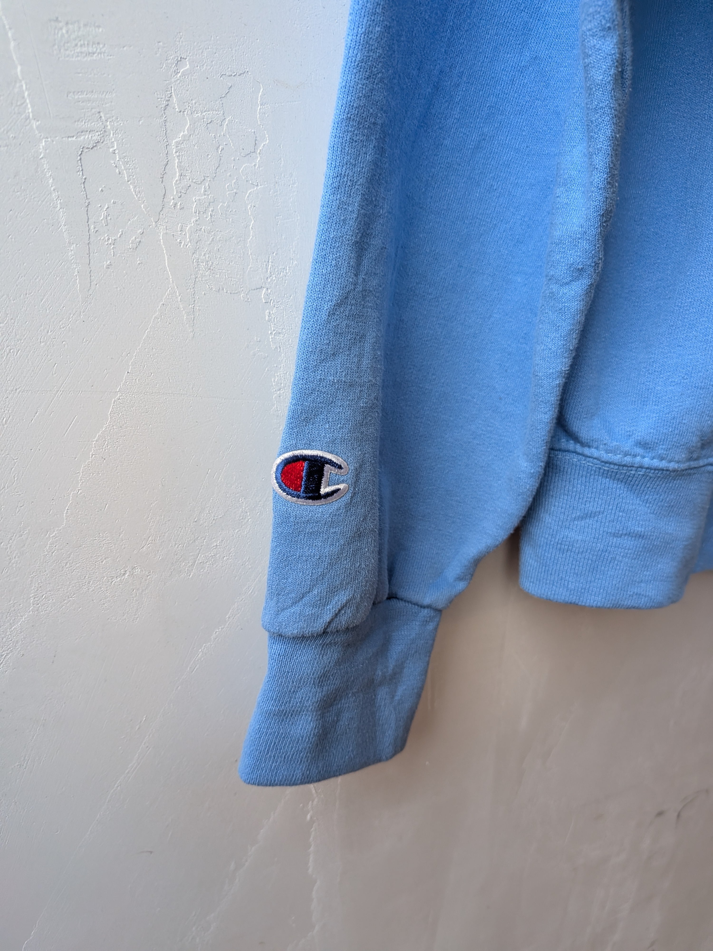 春にぴったりな爽やかなスカイブルーカラーが目を惹くChampionのロゴフーディー。
