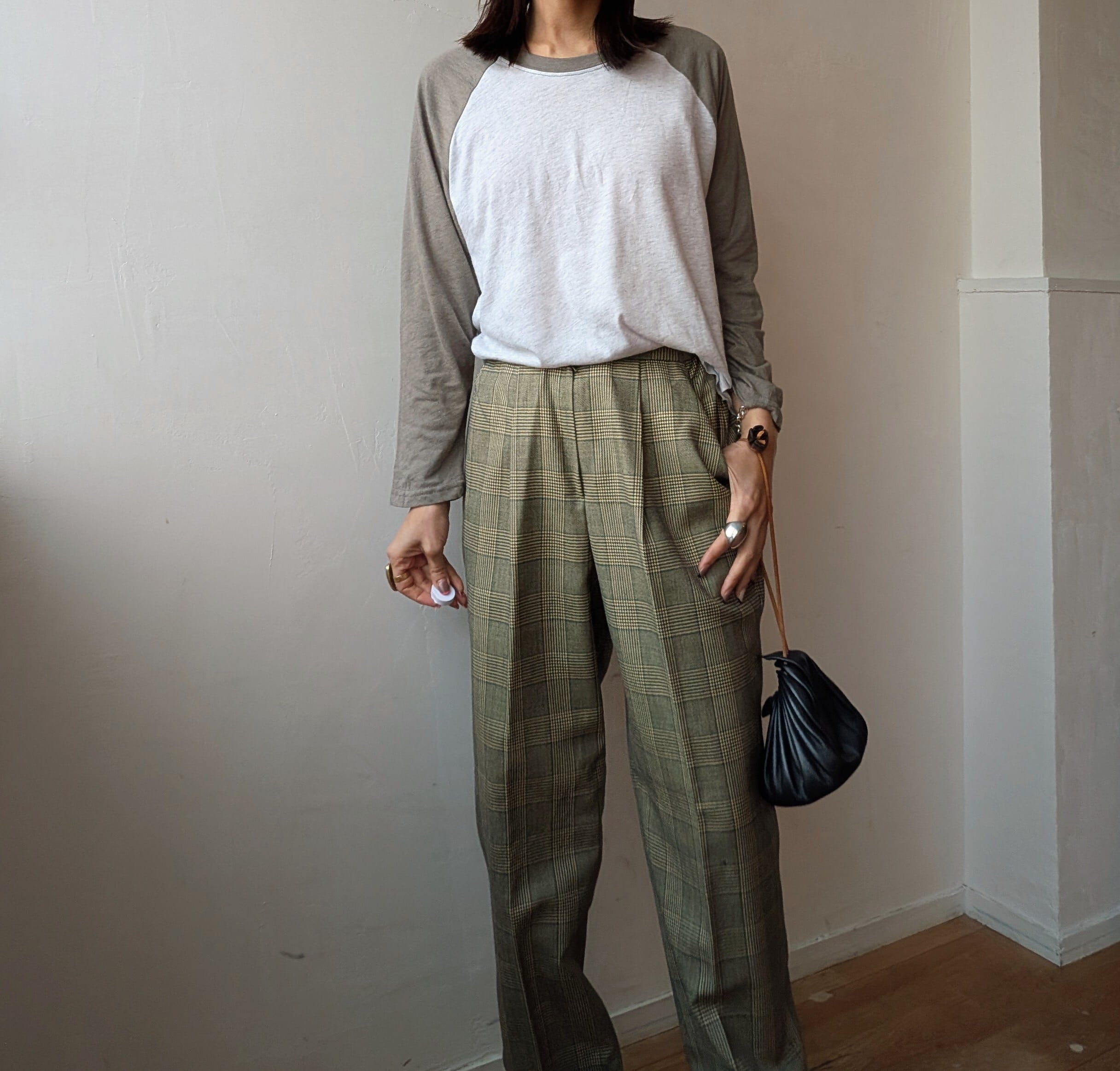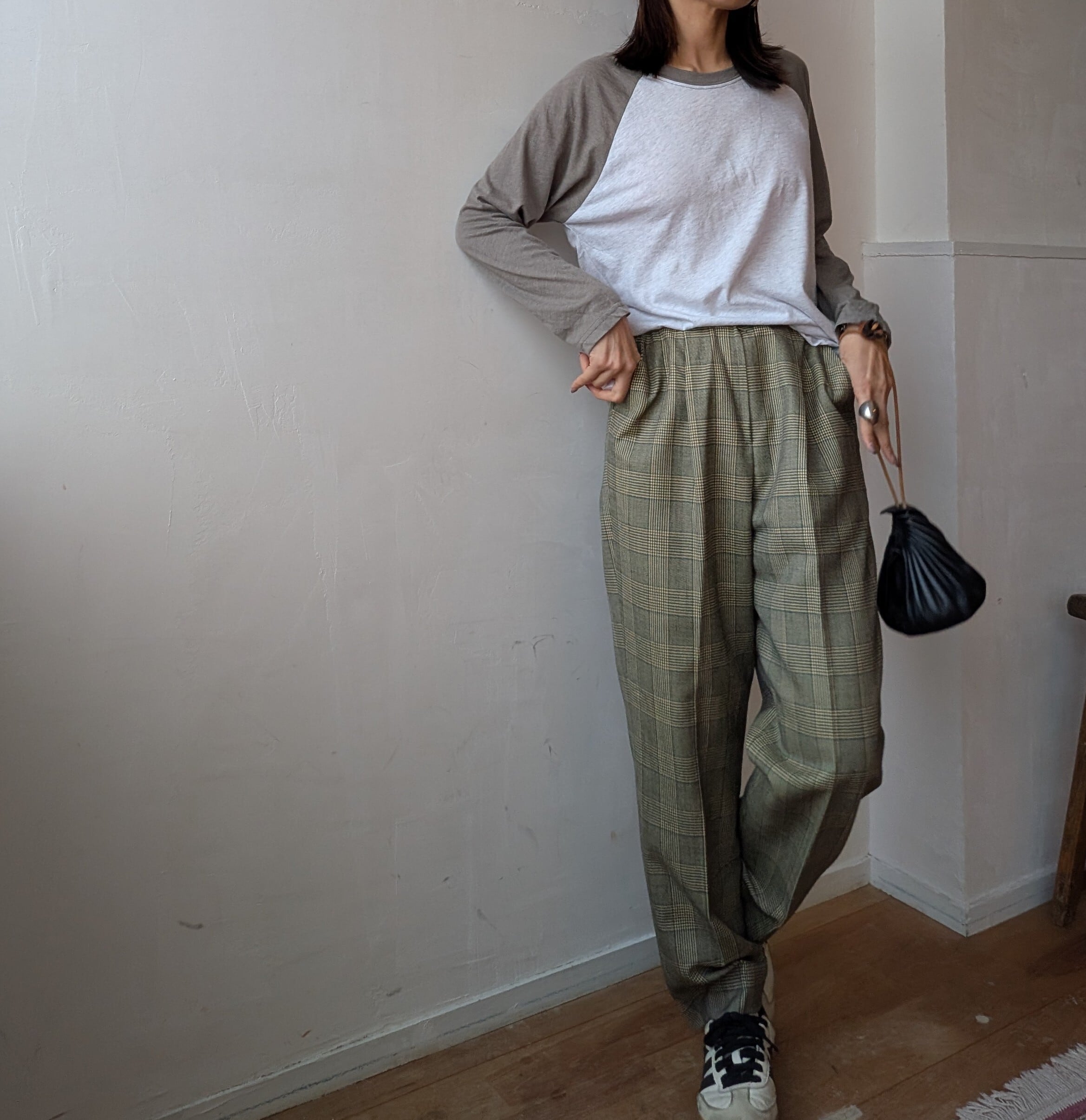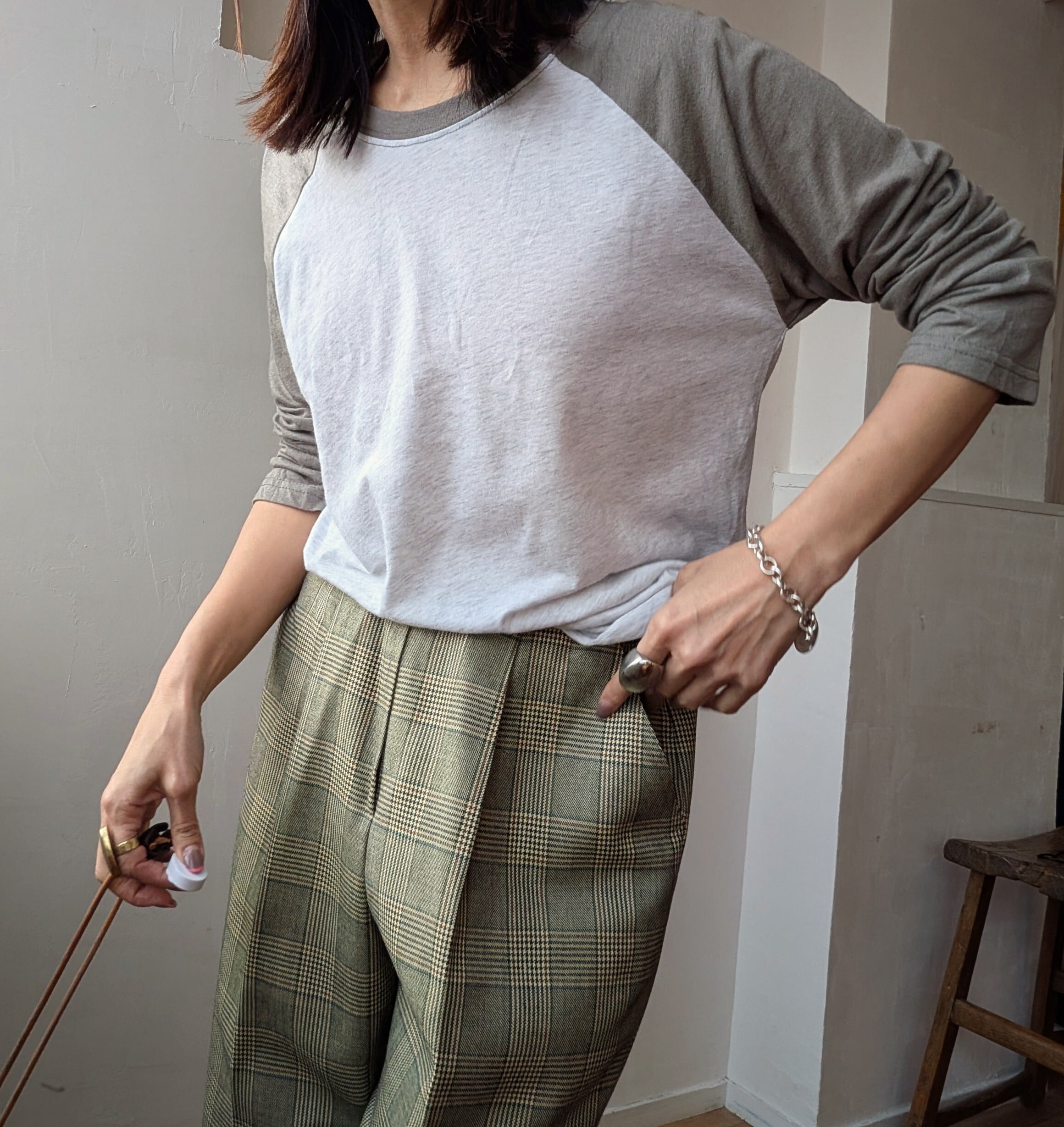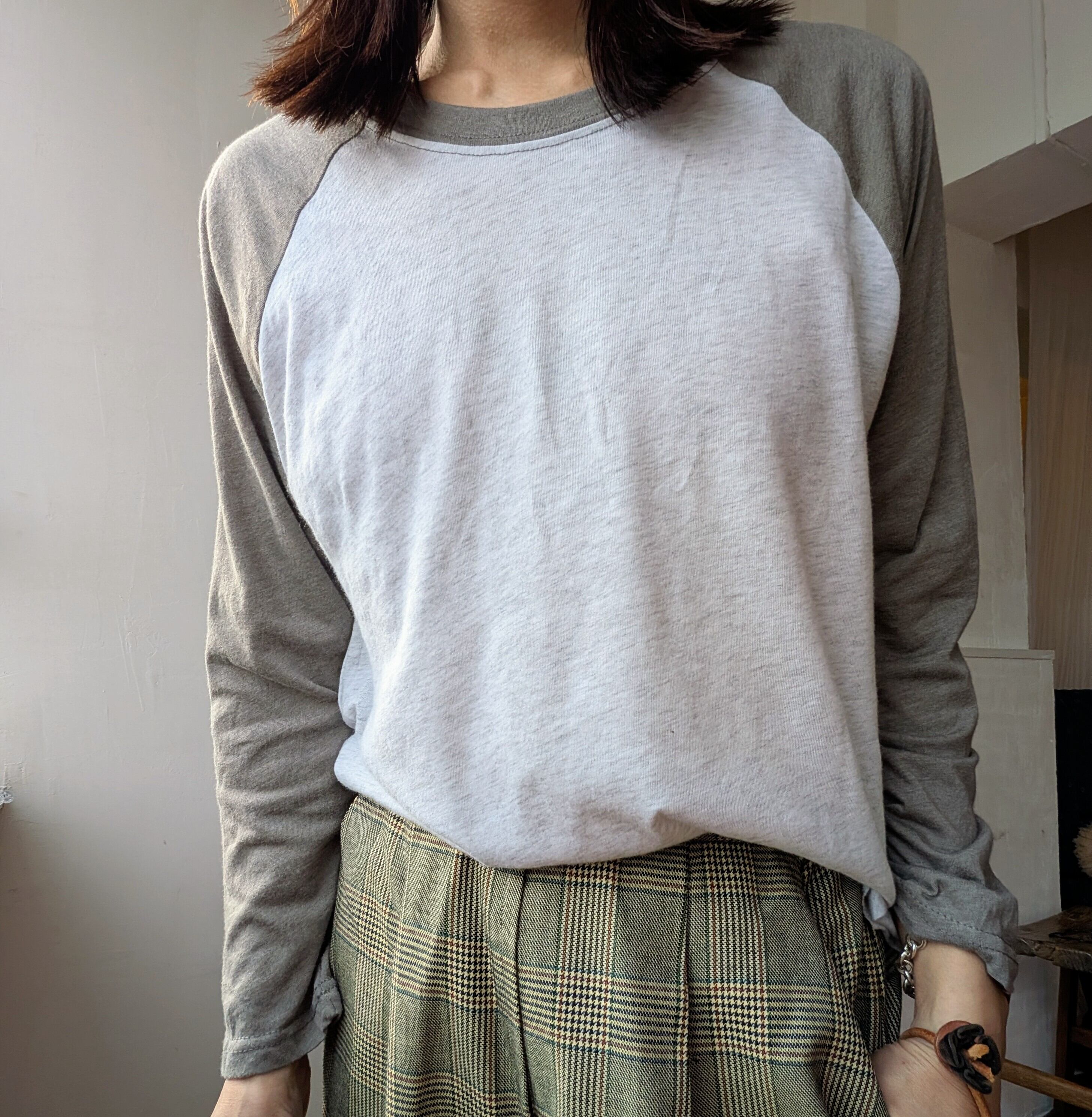 シンプルな無地のラグランはどんなスタイルにも合わせやすい定番アイテムです。