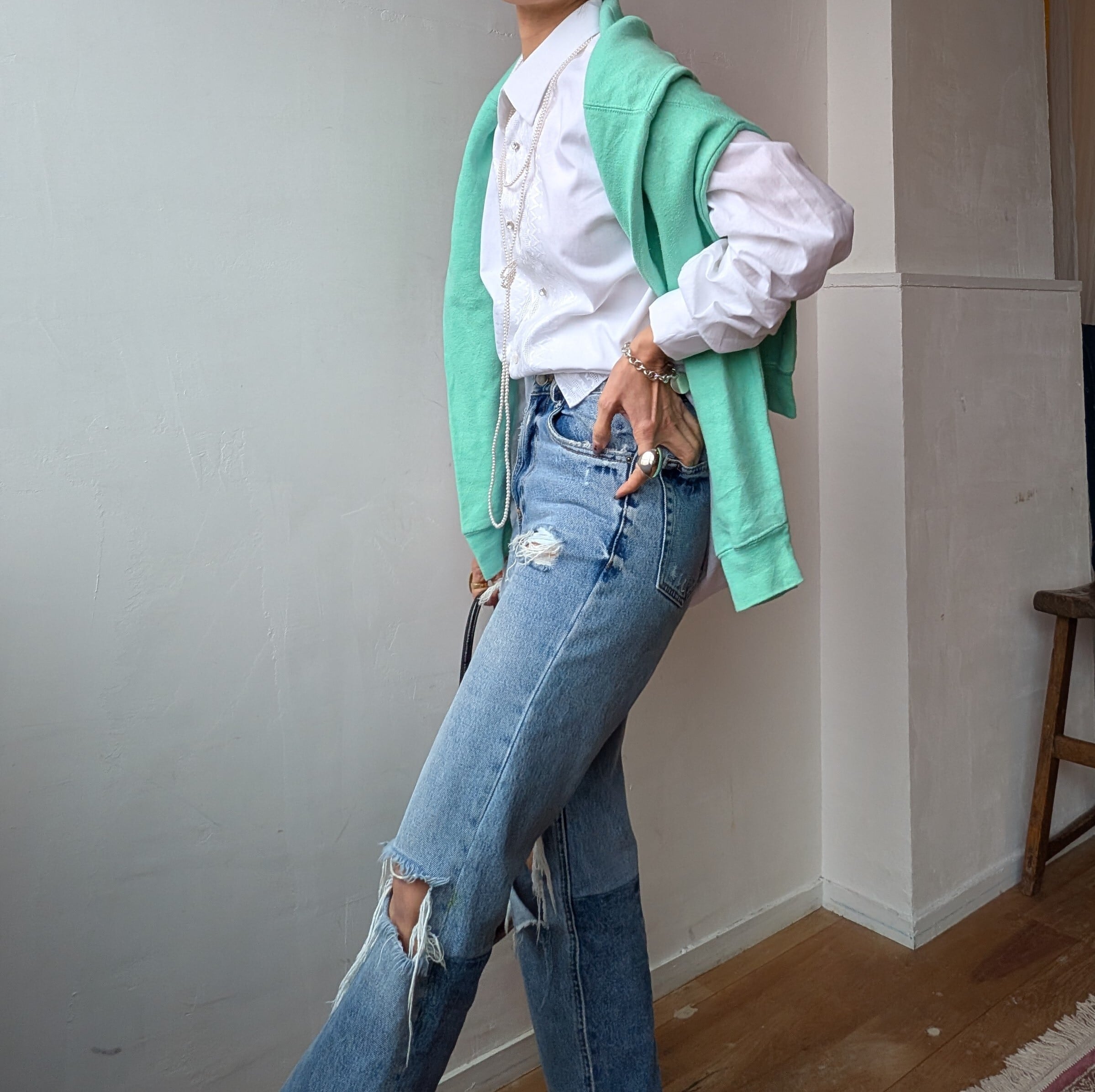 シンプルなデニムや、スカートなど、カジュアルにもキチンとした雰囲気にも