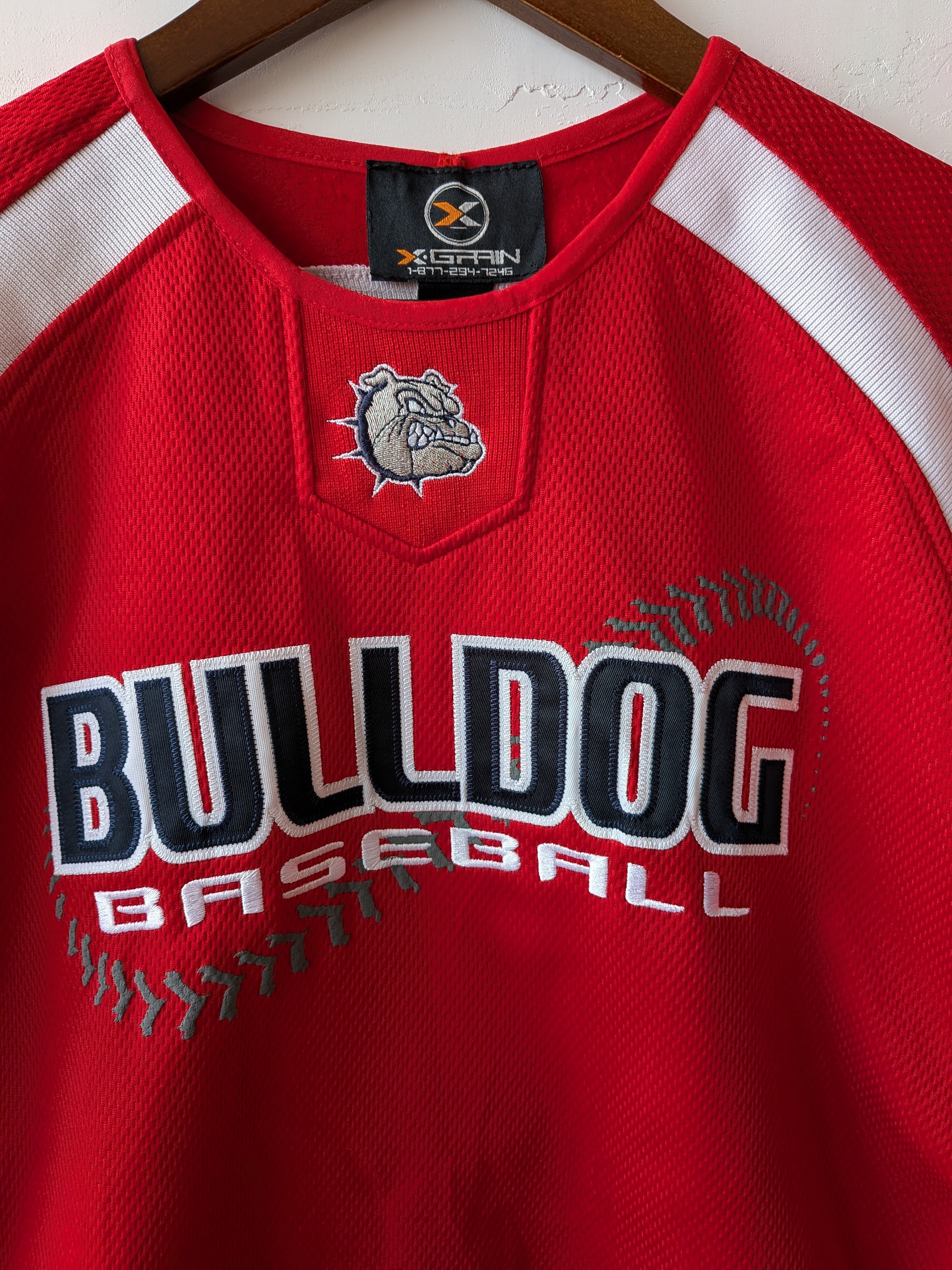 鮮やかなカラーと、ブルドッグのワンポイント、ナンバリングがポイントのUSA game shirt