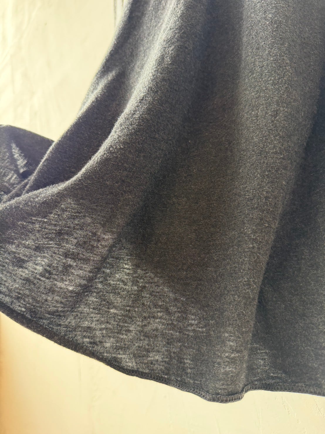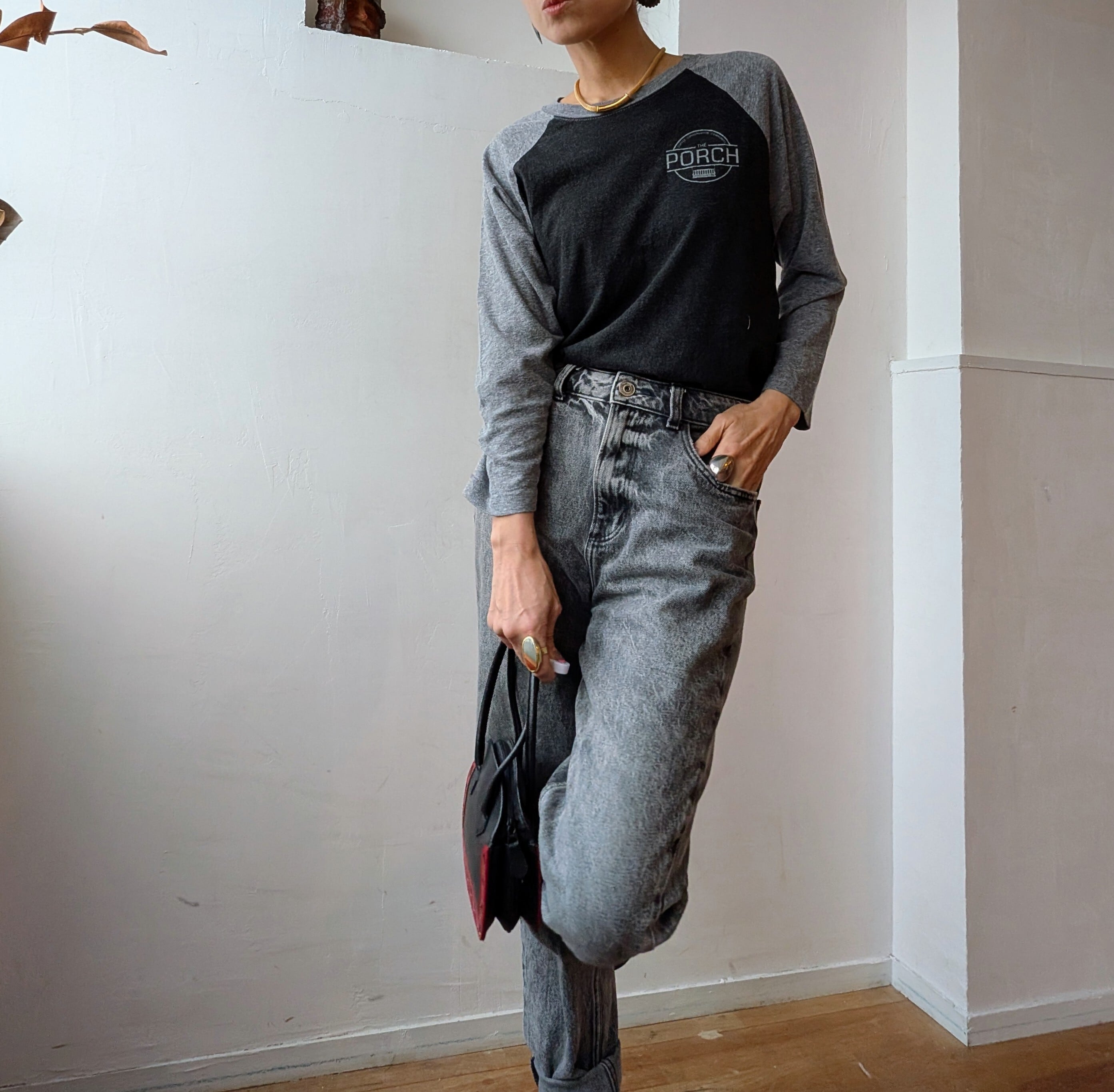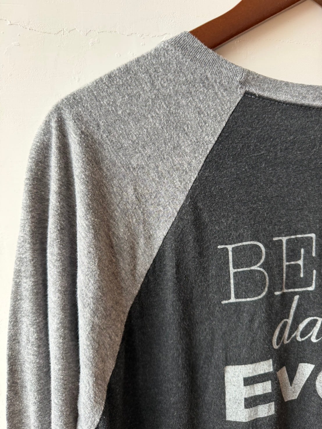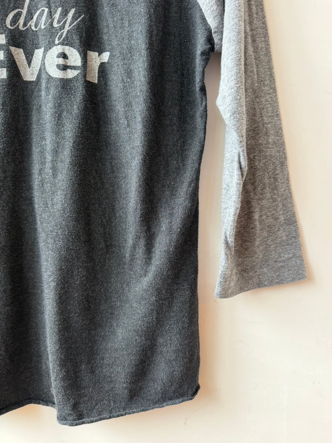 シンプルなデザインとBlack×greyカラーの落ちついたカラーが春におすすめのラグランスリーブTシャツ。