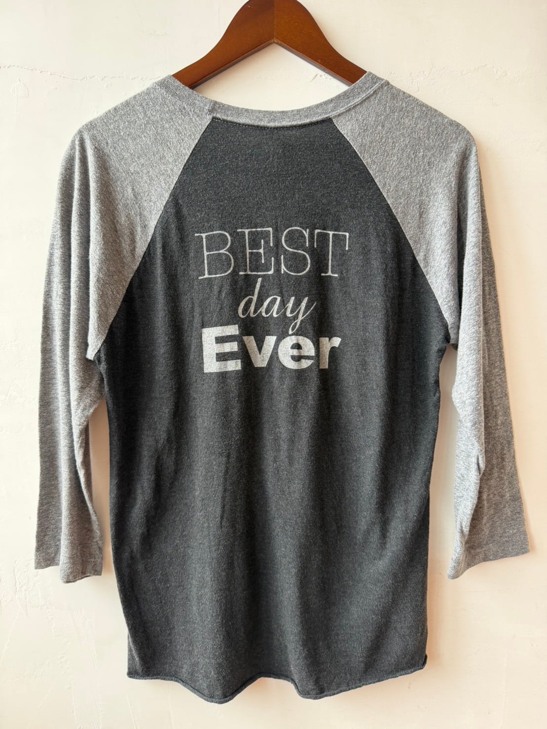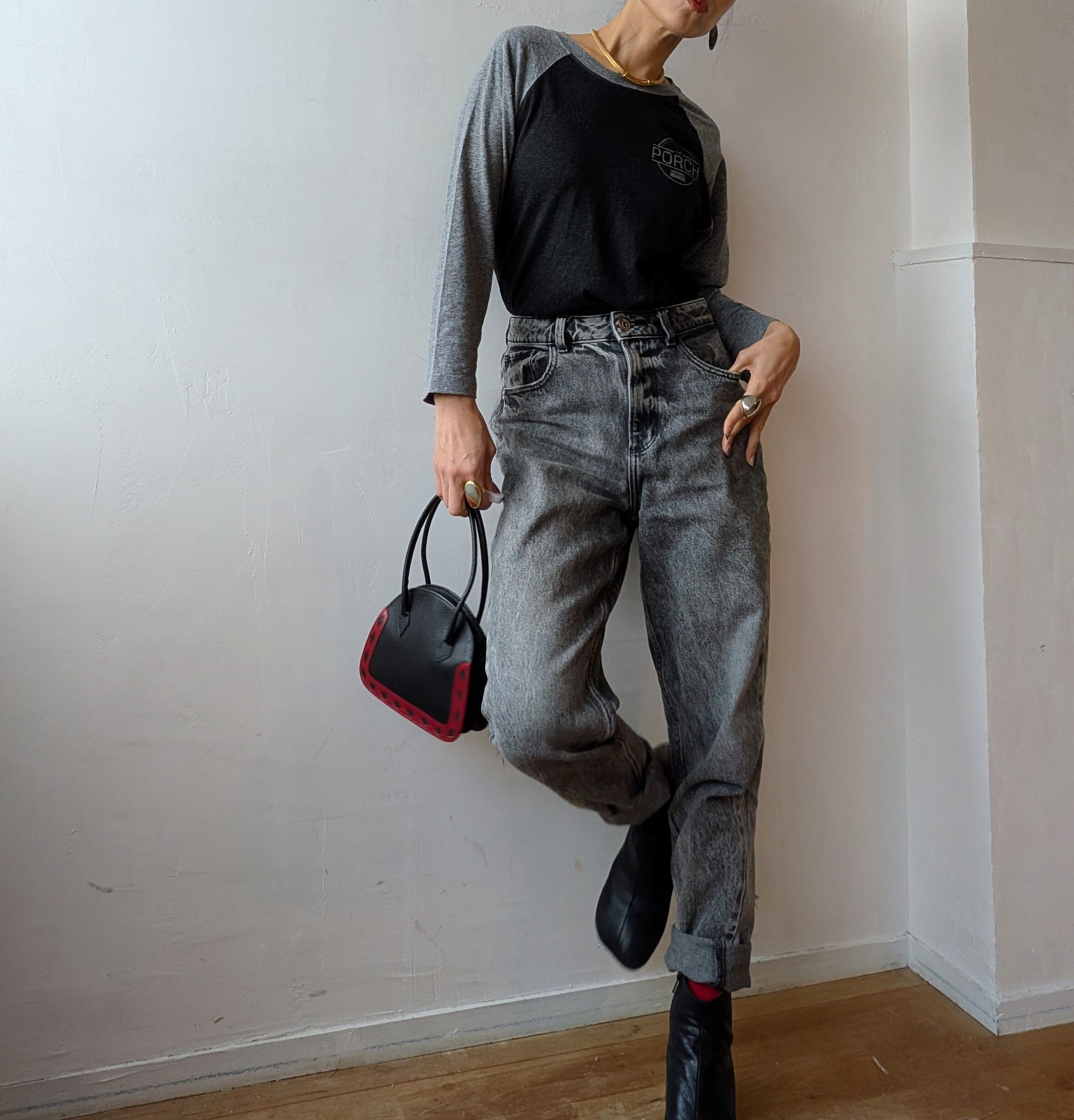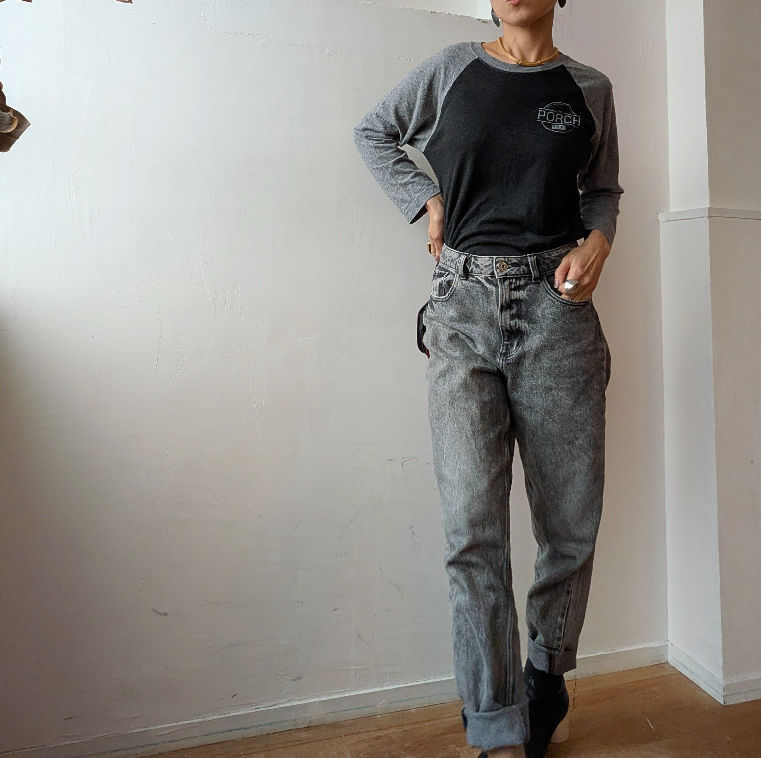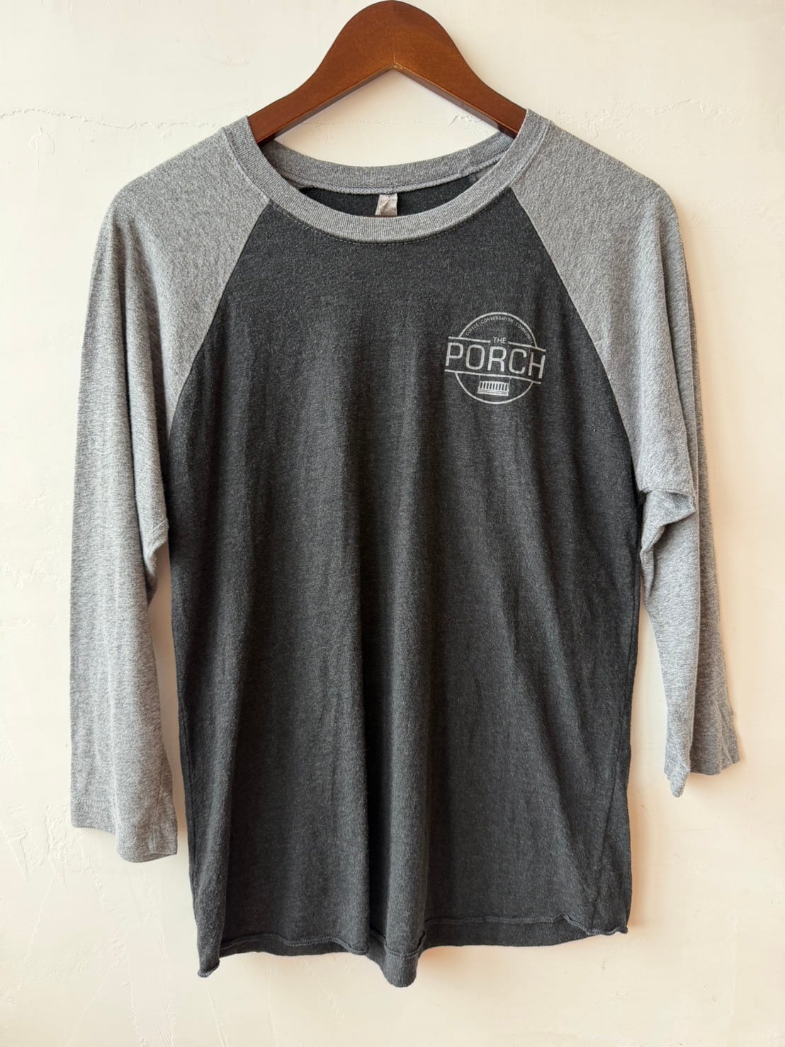 シンプルなデザインとBlack×greyカラーの落ちついたカラーが春におすすめのラグランスリーブTシャツ。