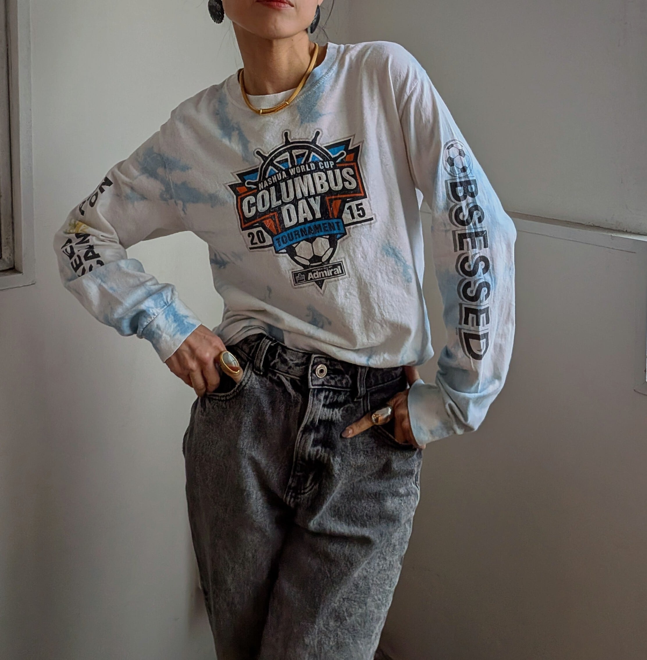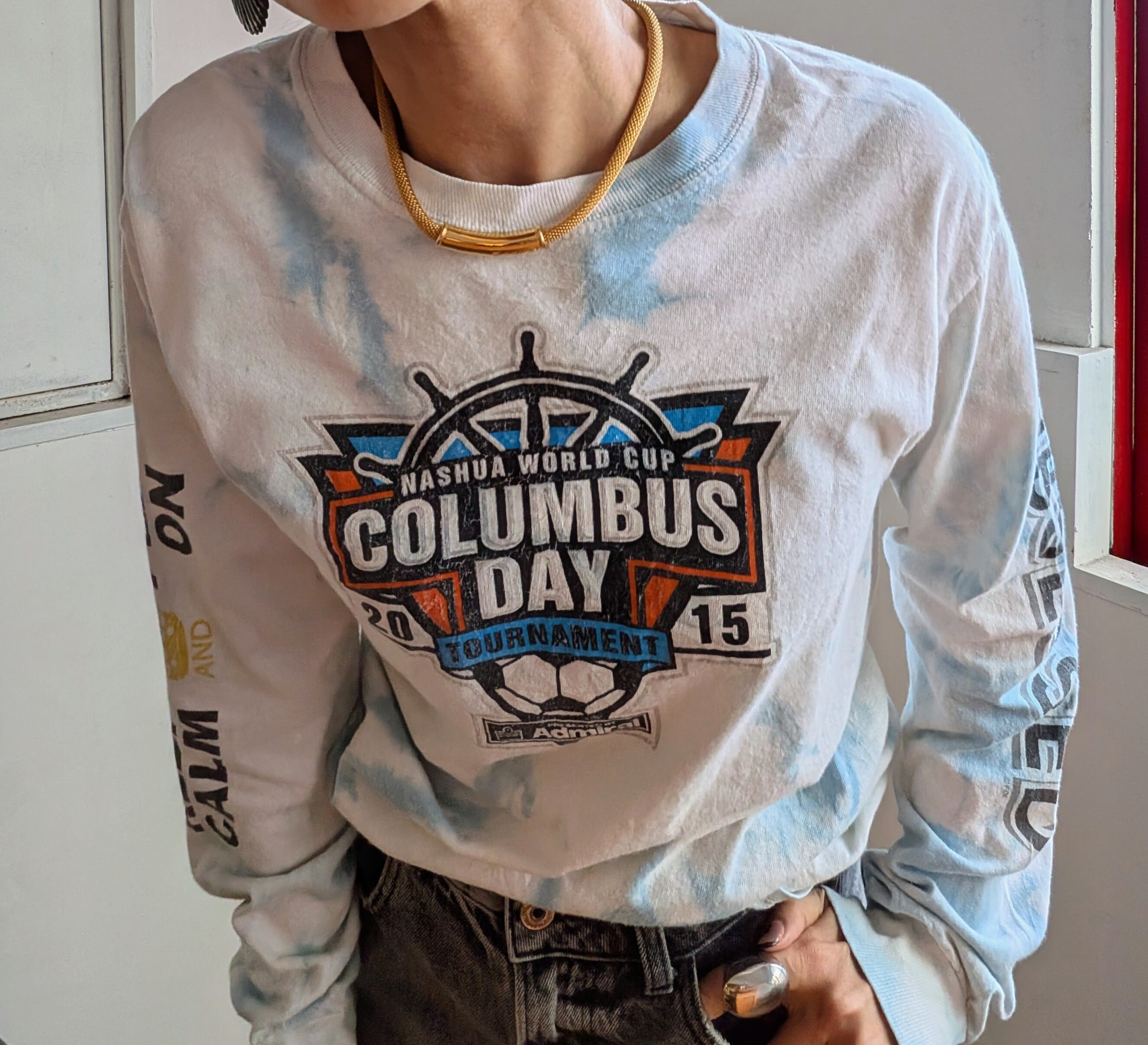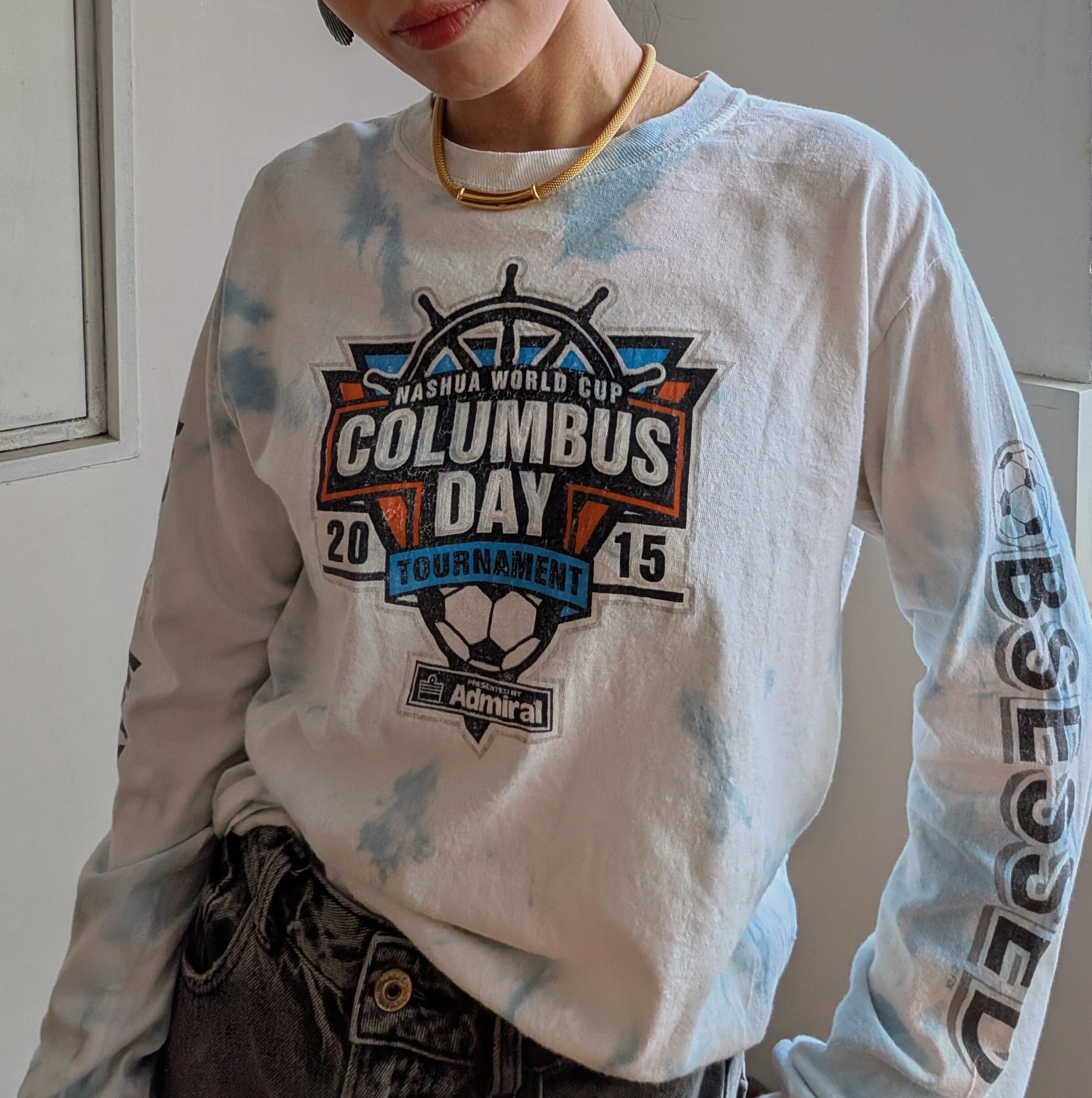 タイダイ柄が特徴のチームロングTシャツ。スポーティでインパクトのあるデザインがカジュアルなスタイルにアクセントを加えてくれます。