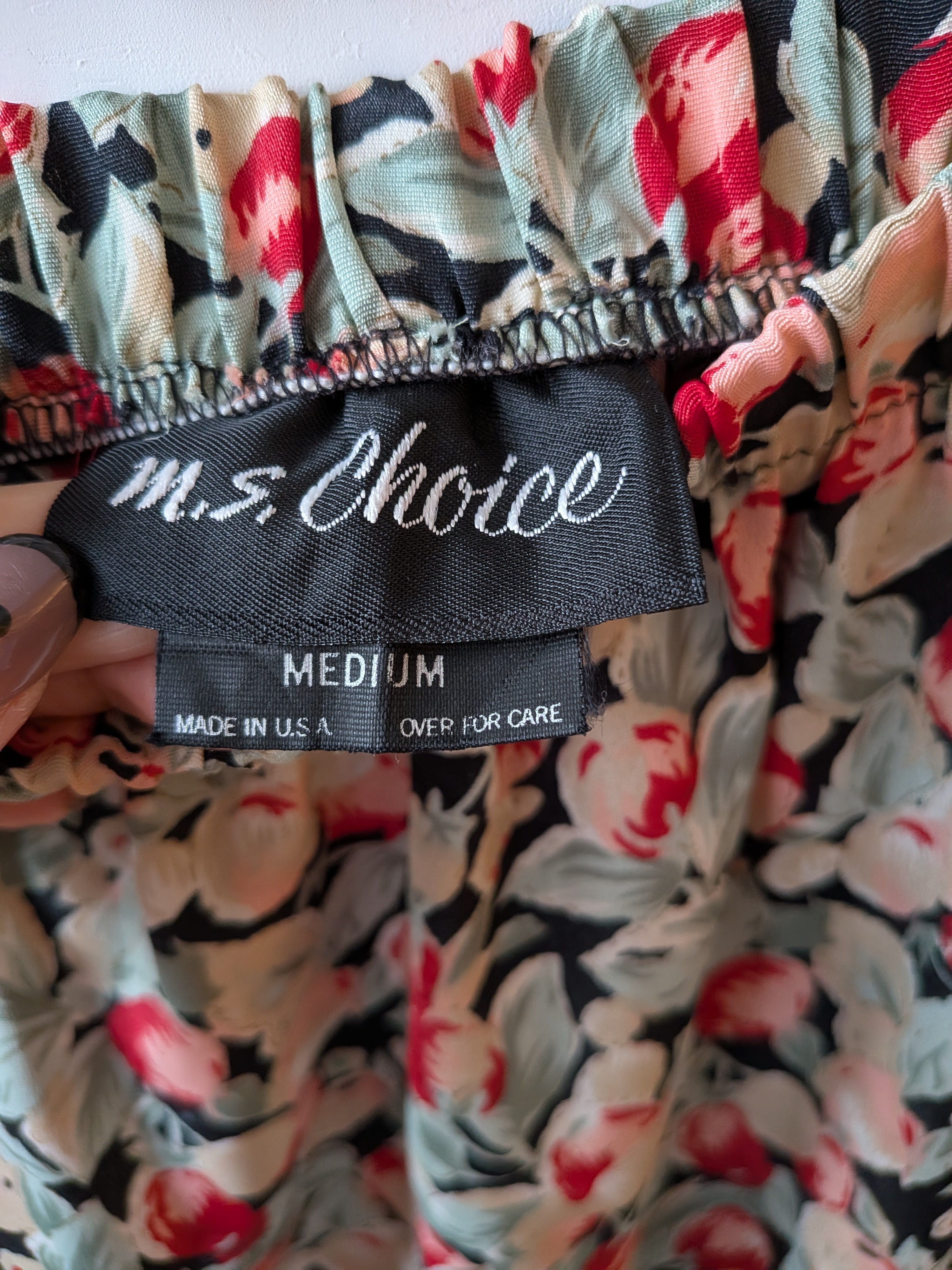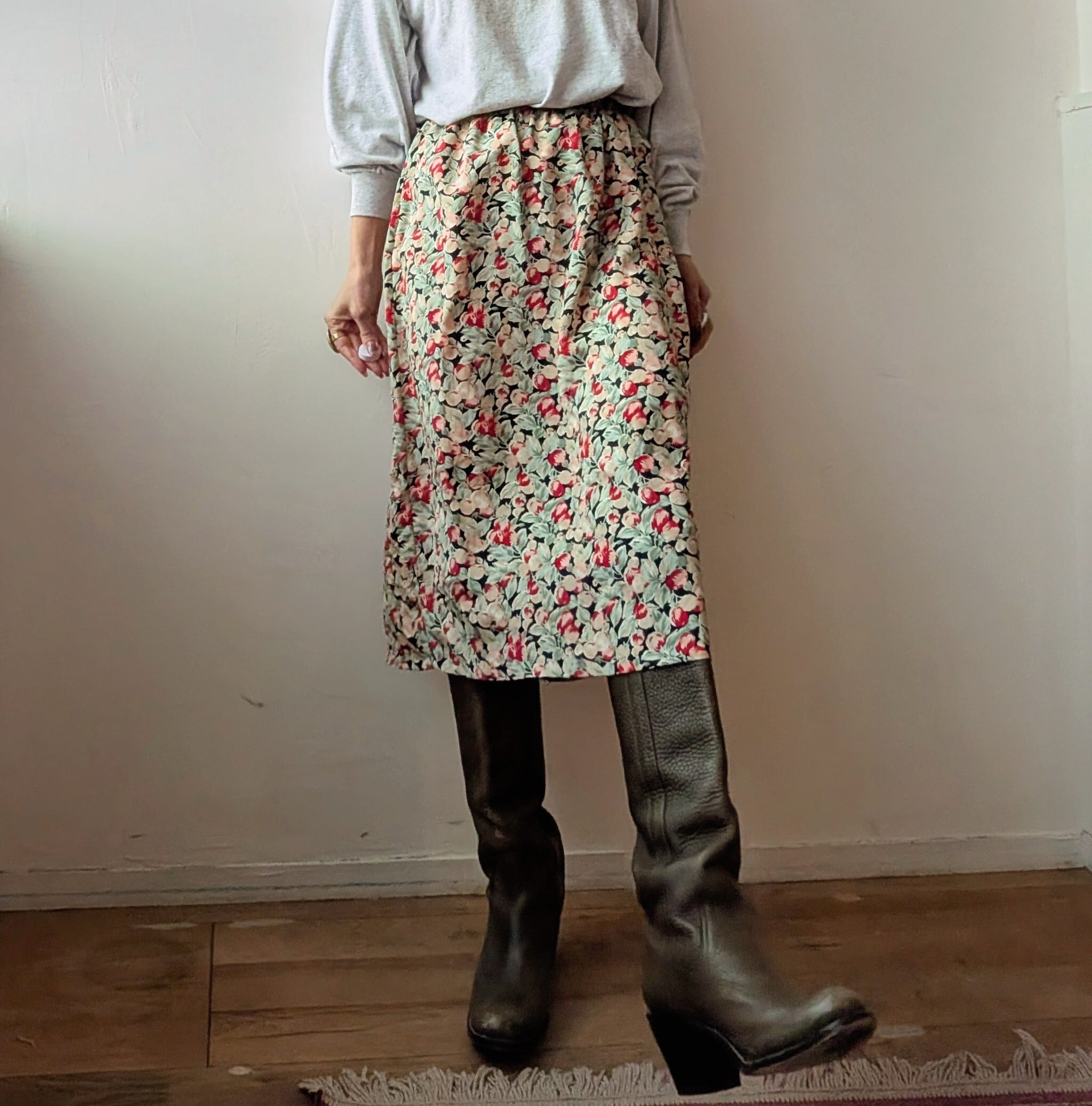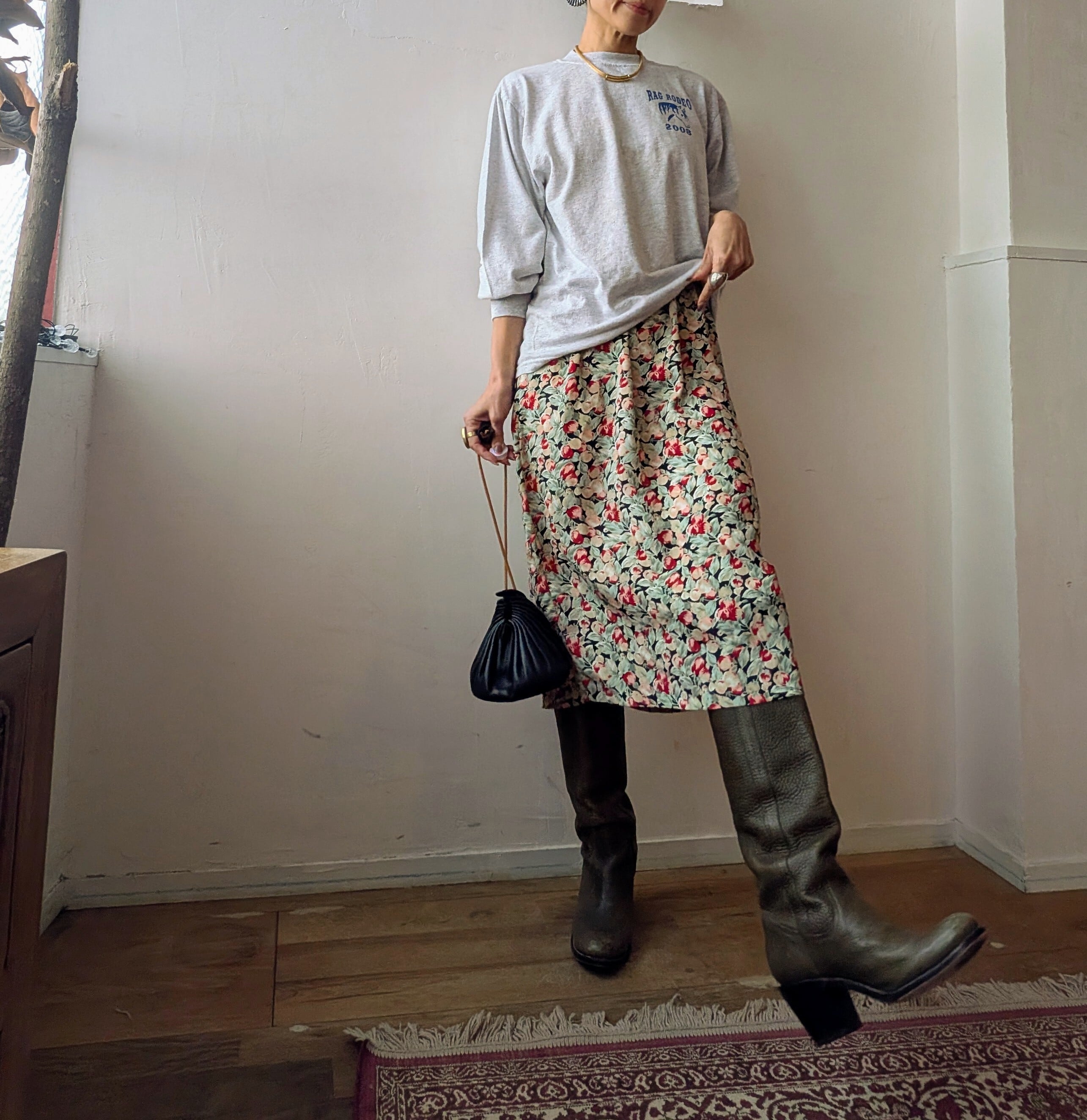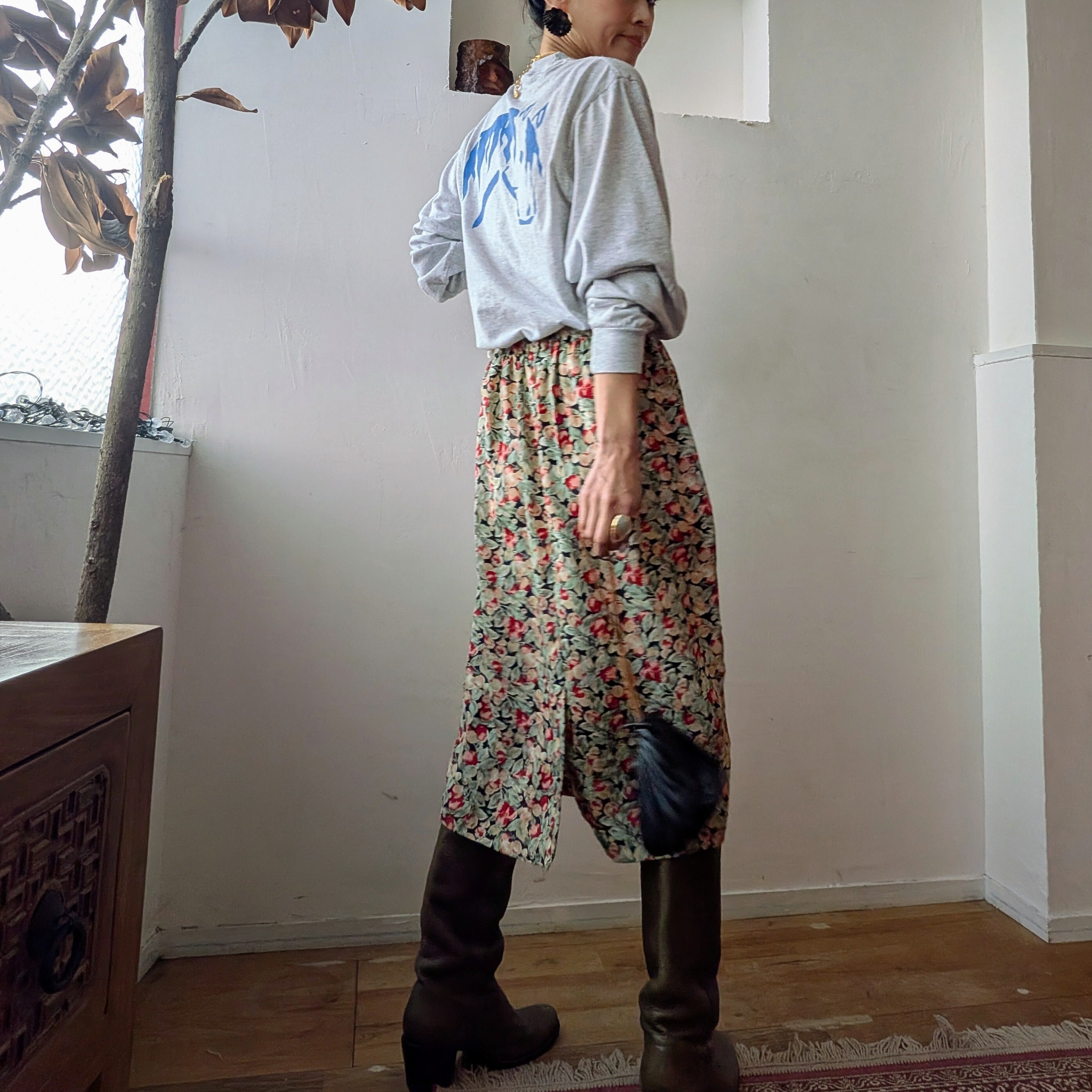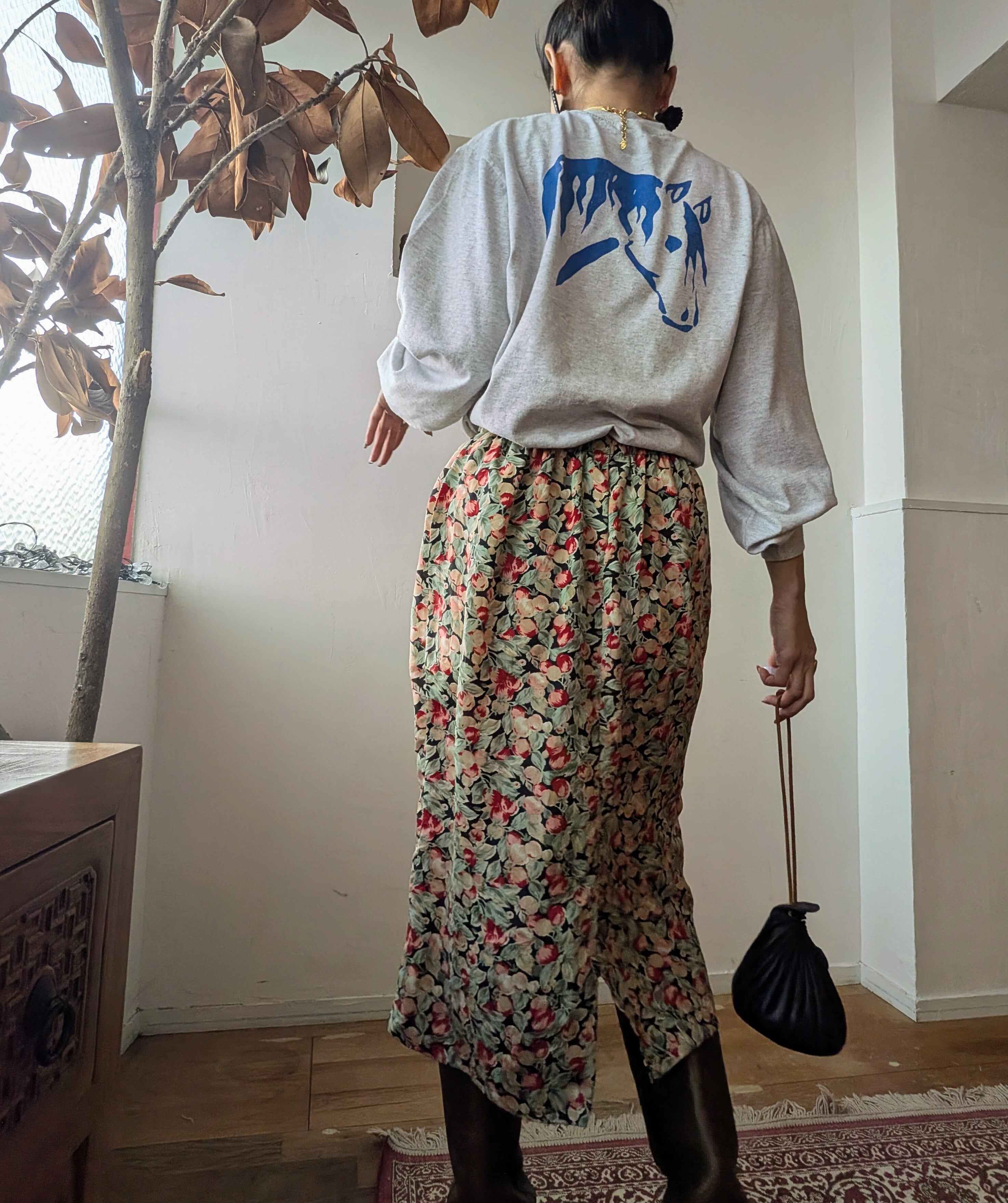 華やかなフラワープリントが魅力のUSAヴィンテージシフォンスカート。