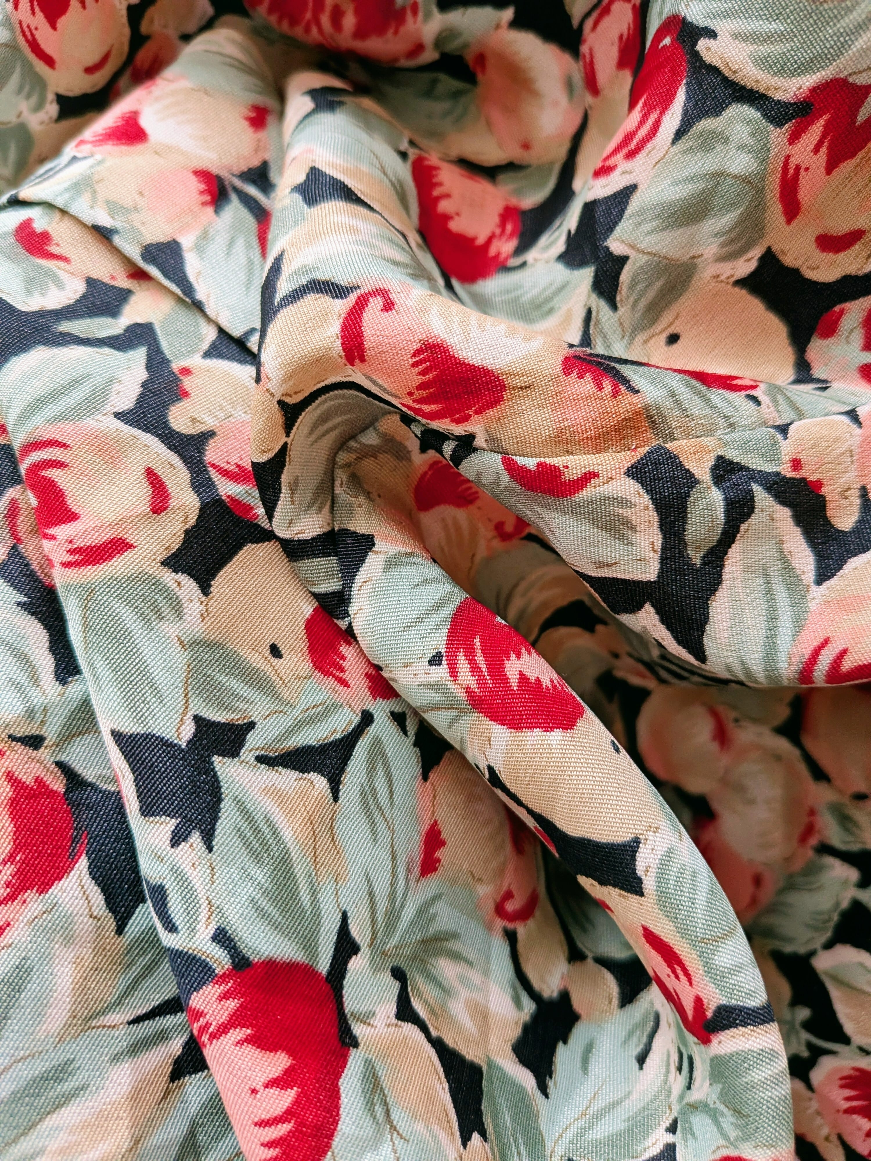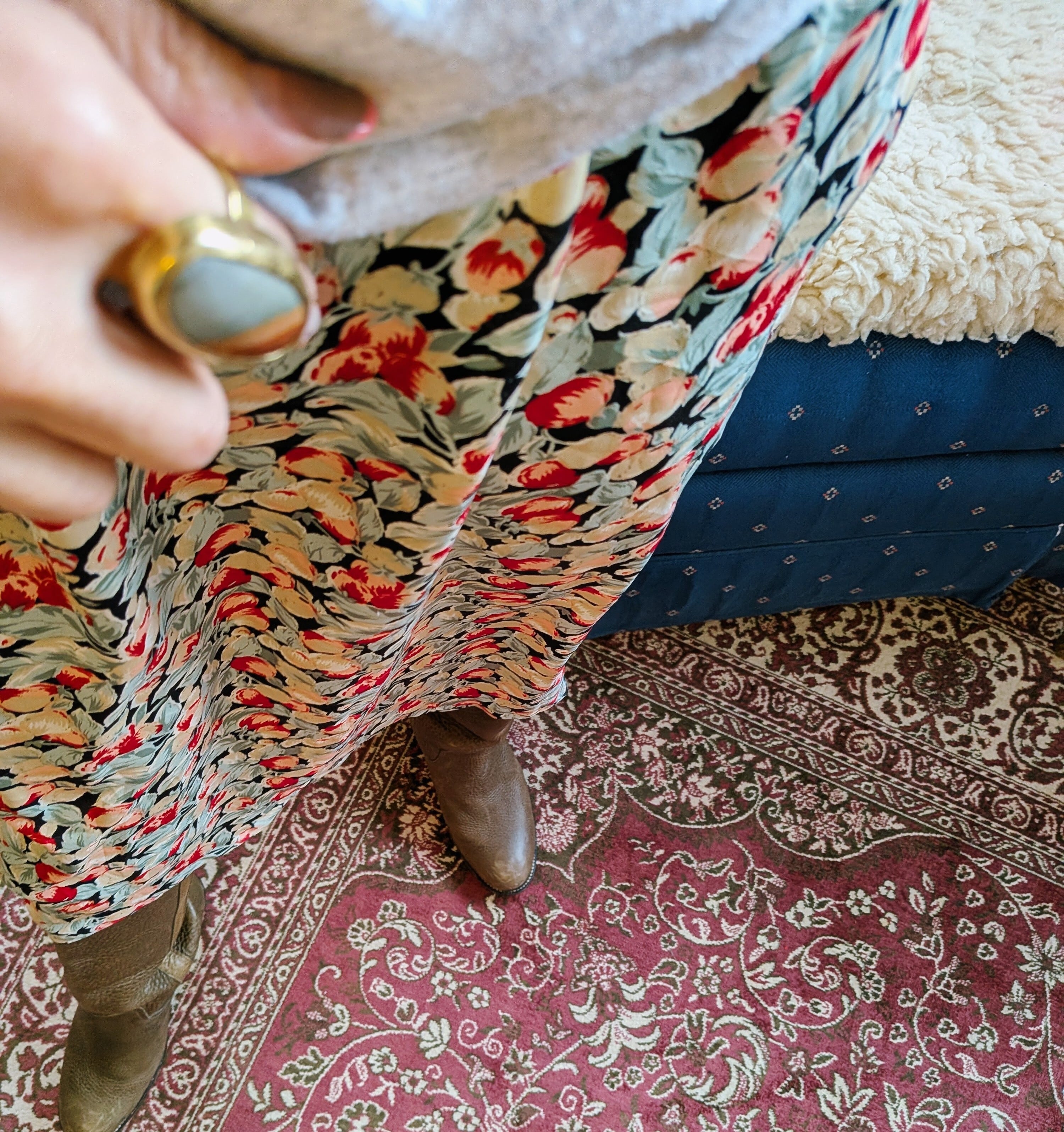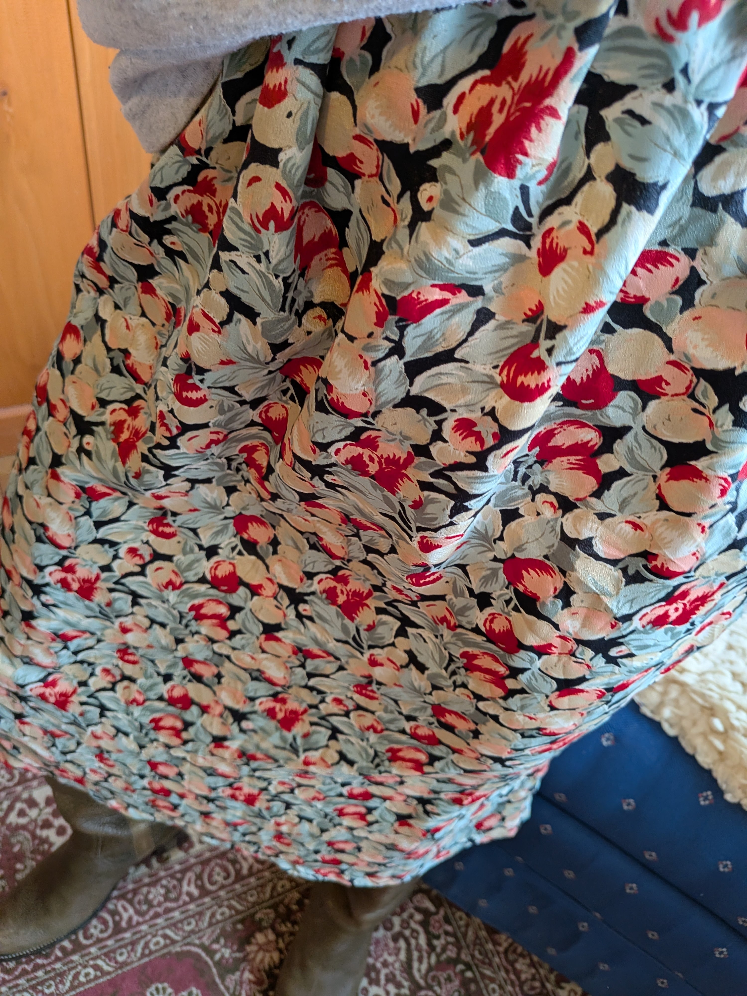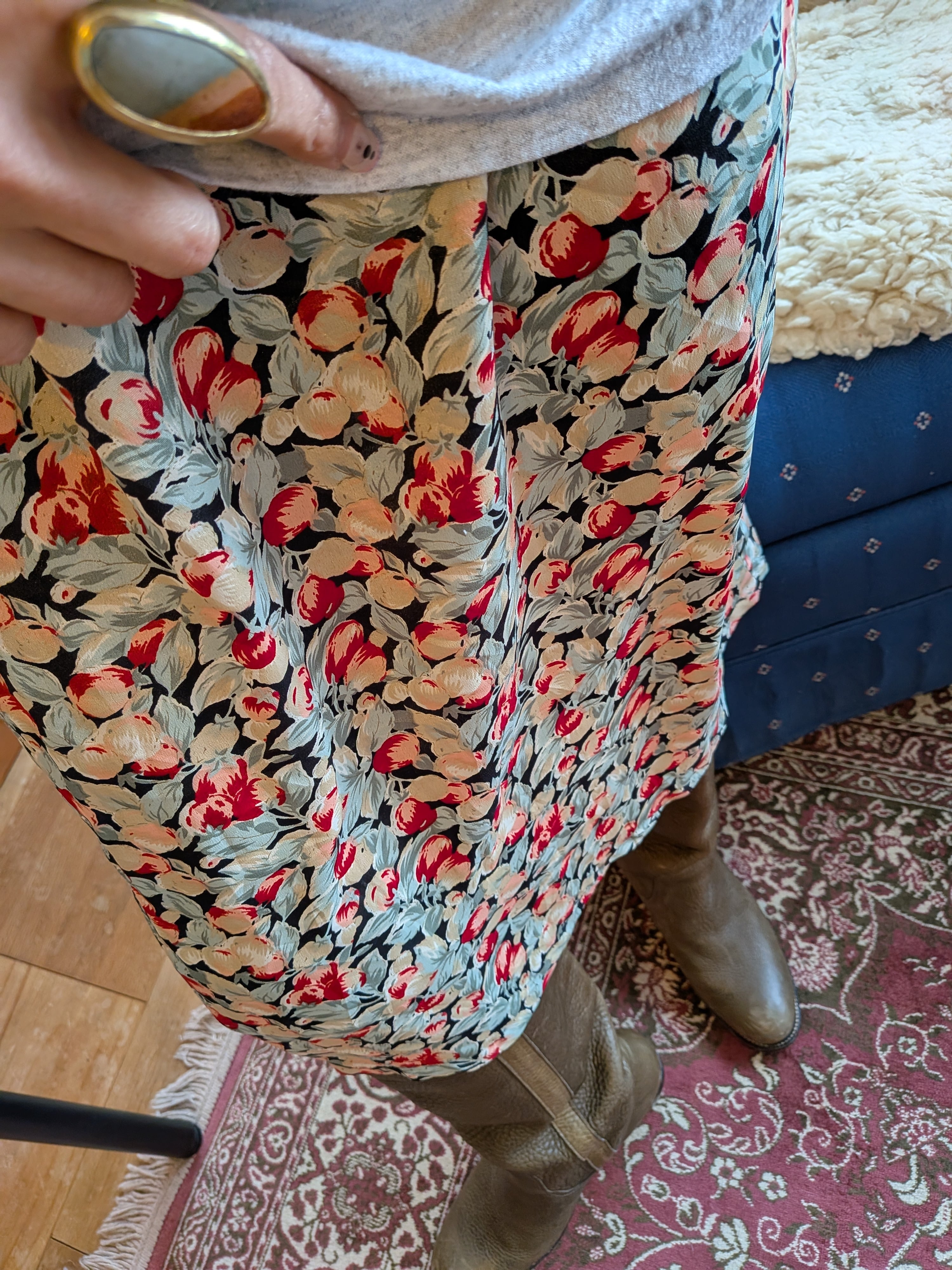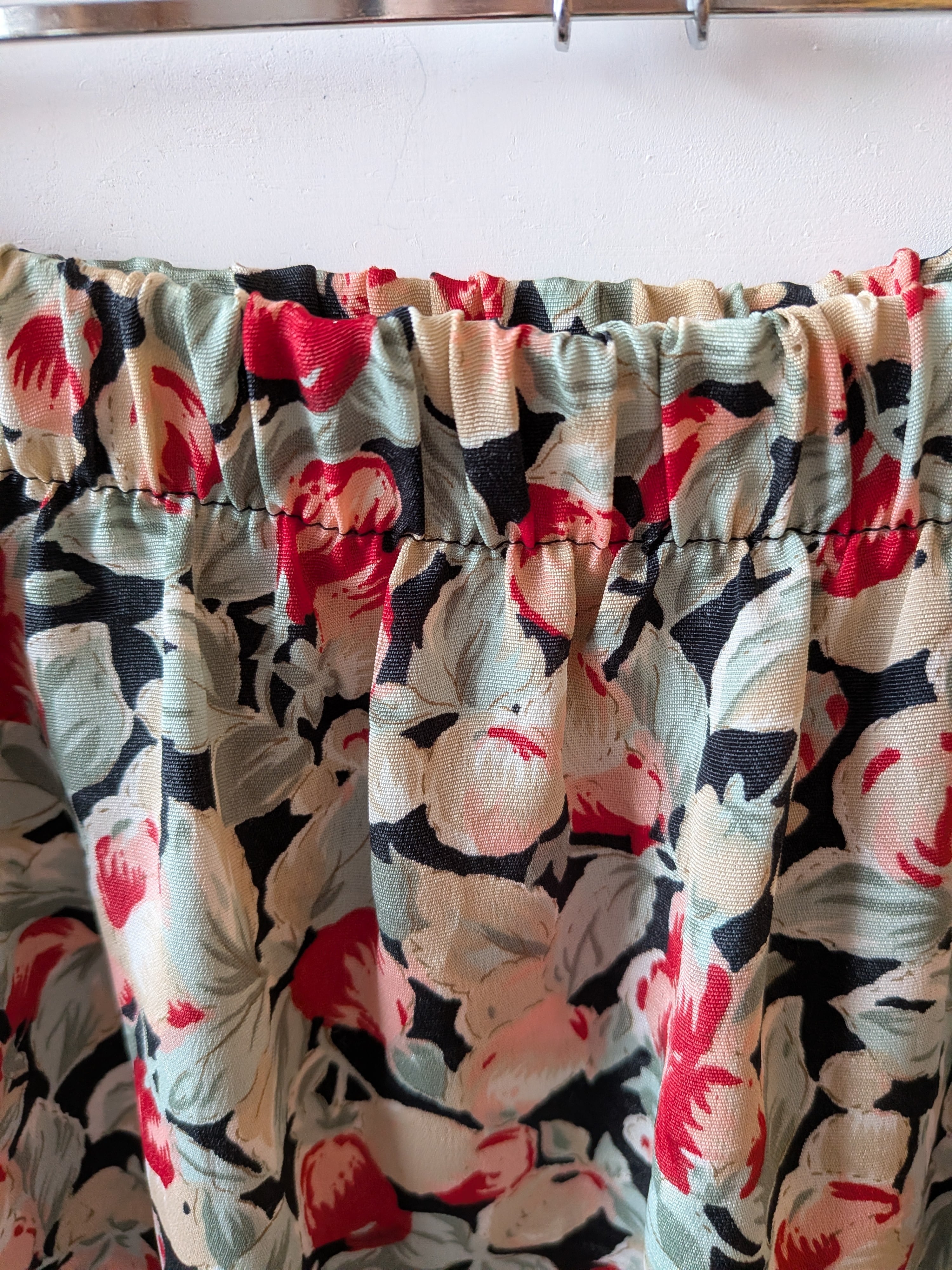 華やかなフラワープリントが魅力のUSAヴィンテージシフォンスカート。