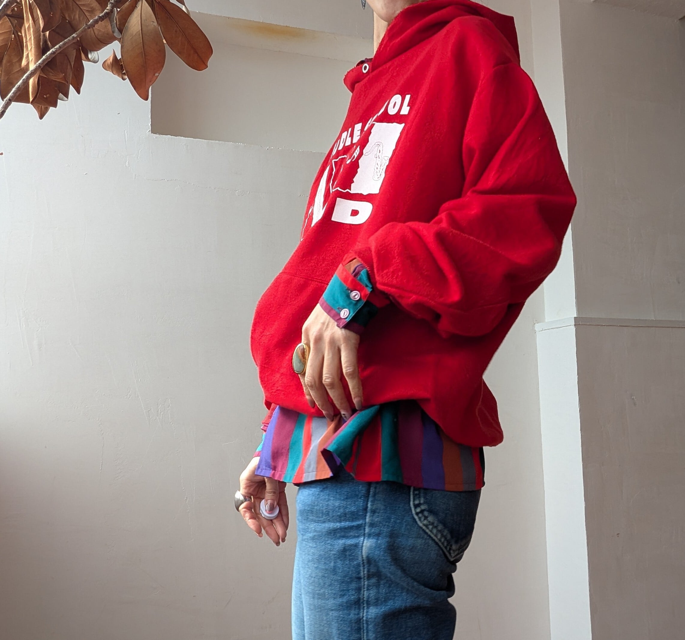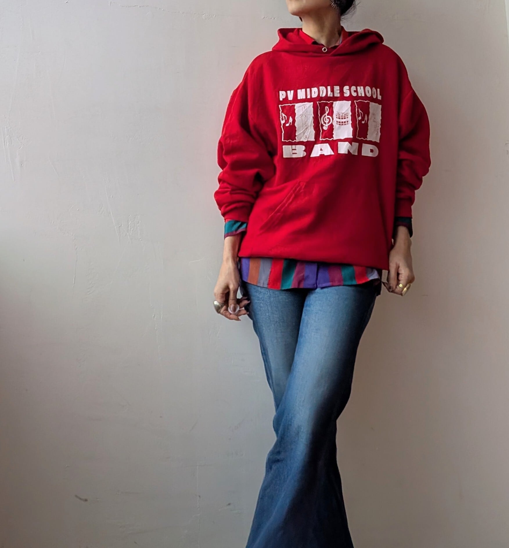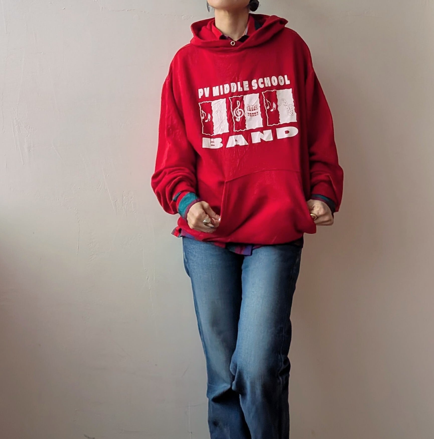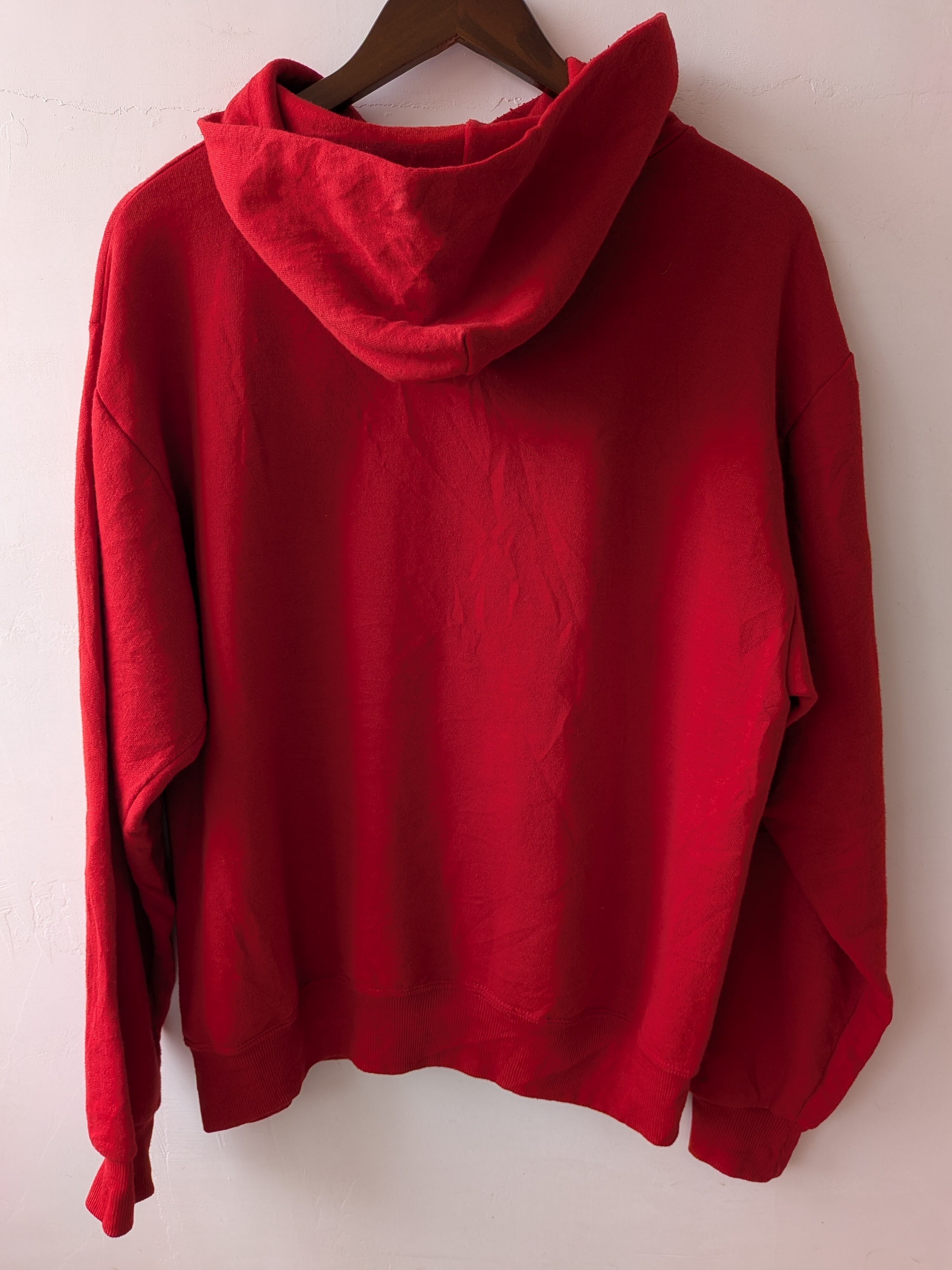 真っ赤なボディに白ロゴが映える、ゆったりとしたサイズ感でカジュアルなスタイルにぴったりのfoodieです。