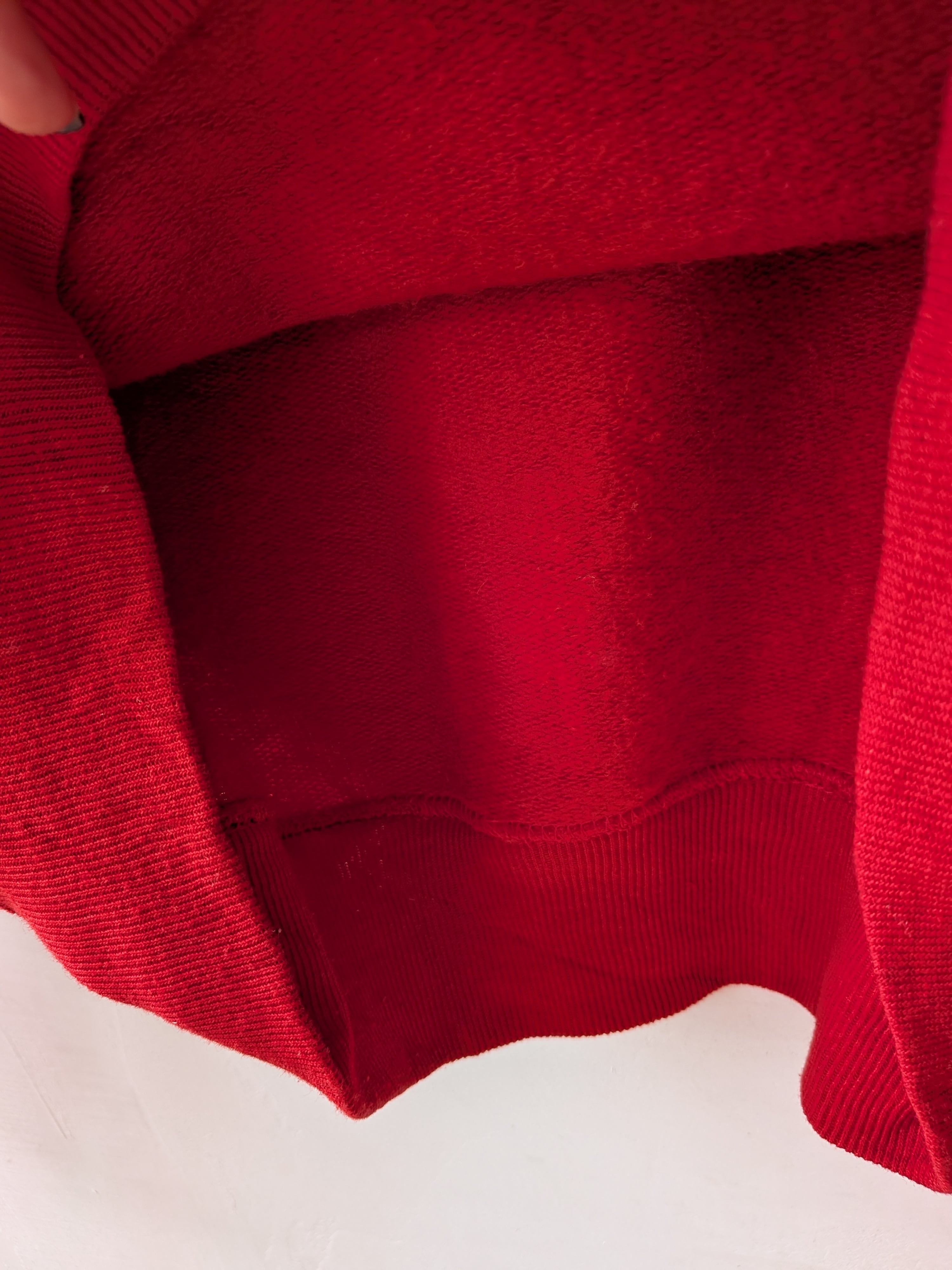 ジャケットを羽織ったり、コートのインナーにも、ビビッドな赤×白の組み合わせが映え、スタイリングのポイントに。