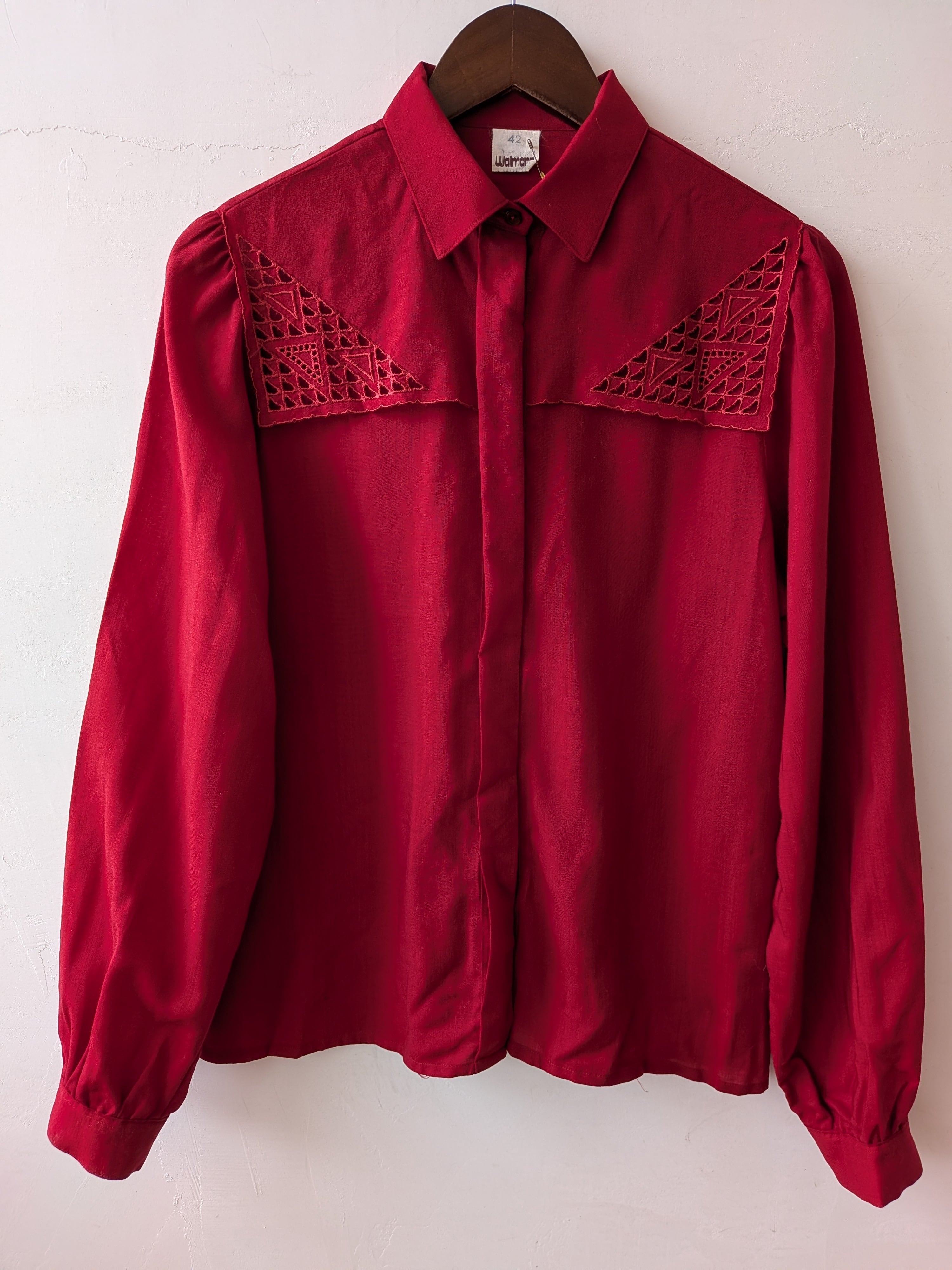 レースショルダーが特徴のやわらかな質感のシヨーロッパvintageシャツ。