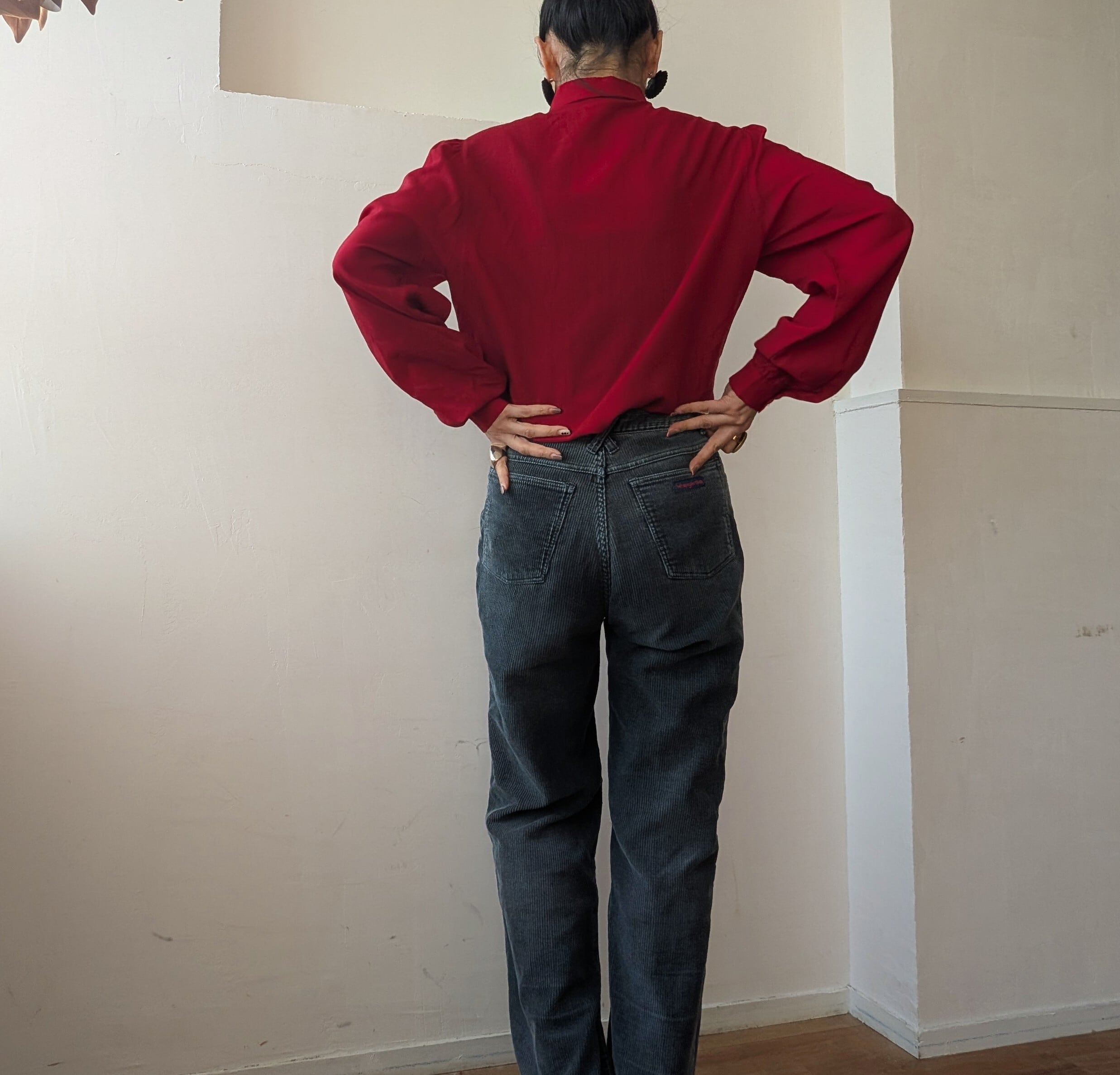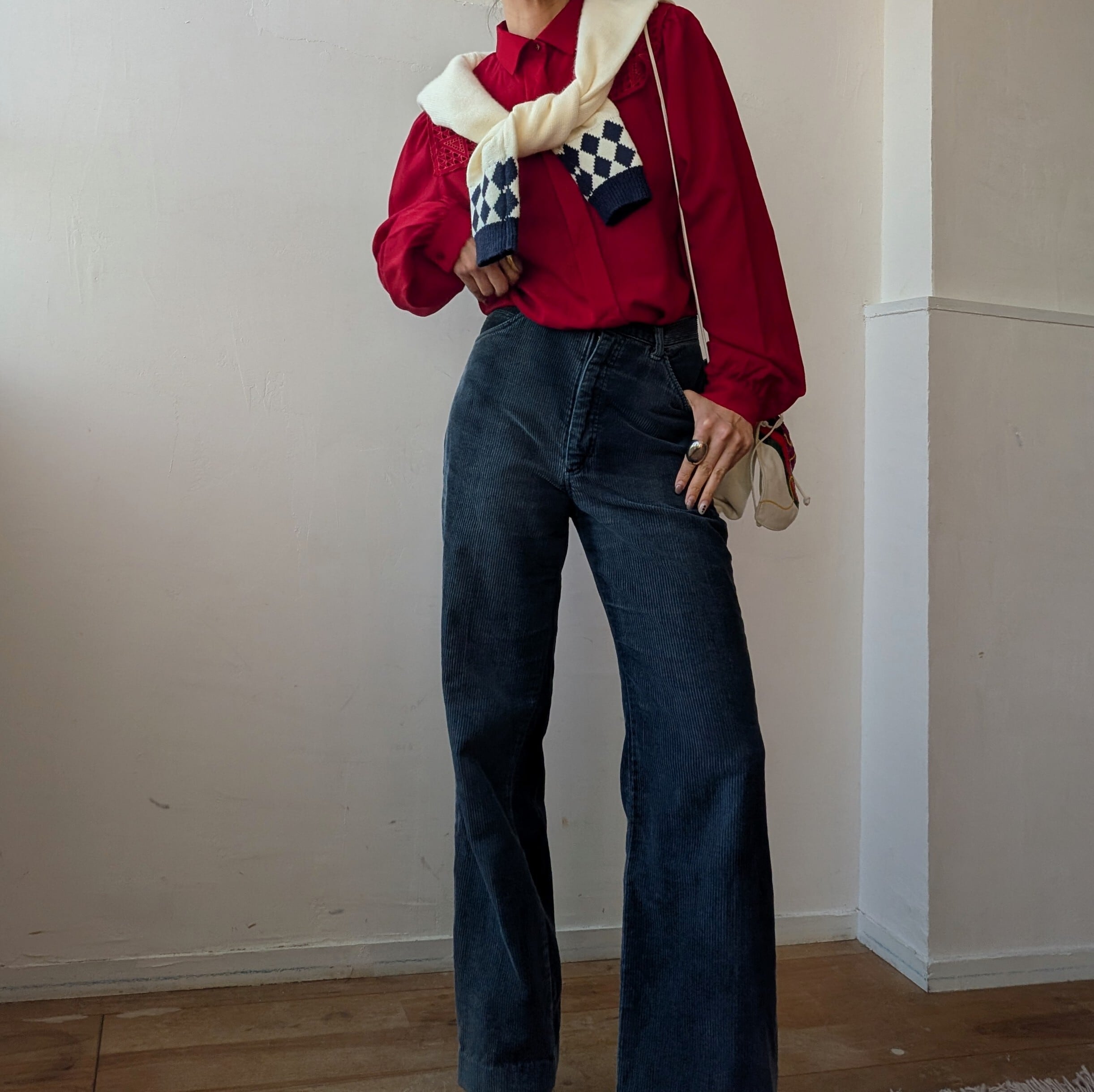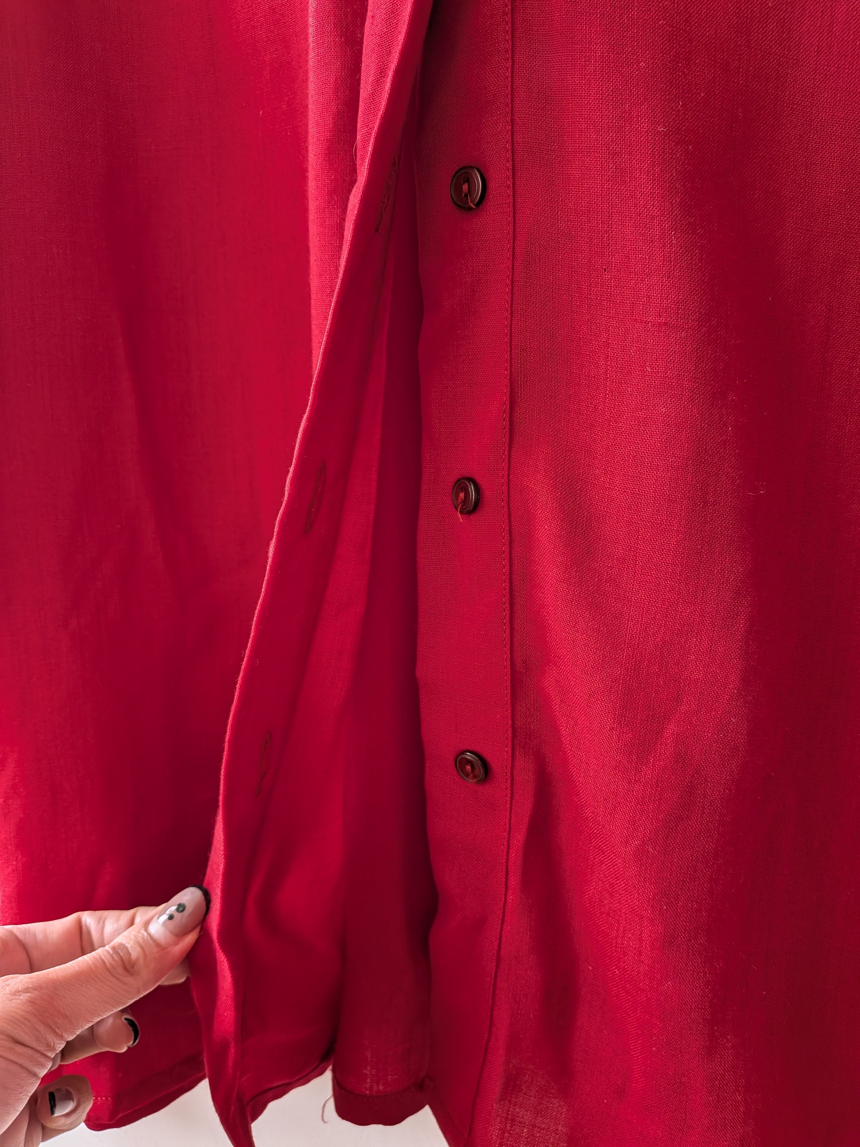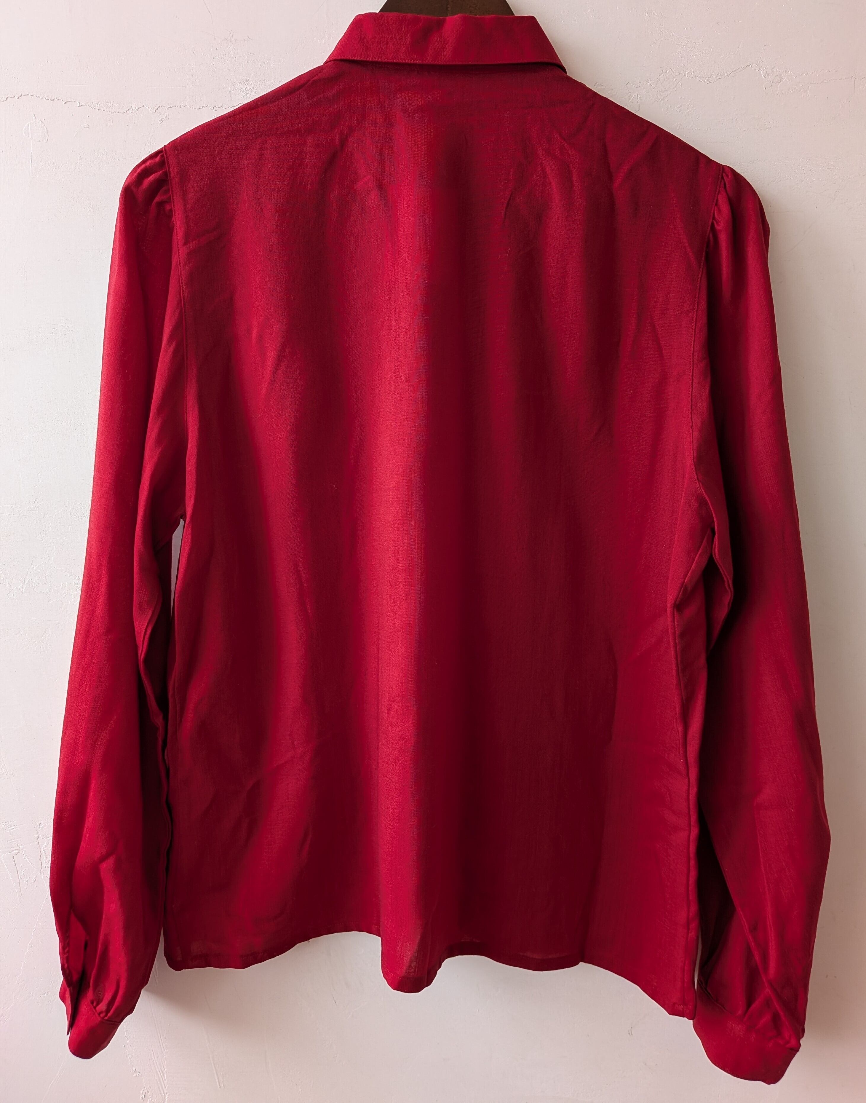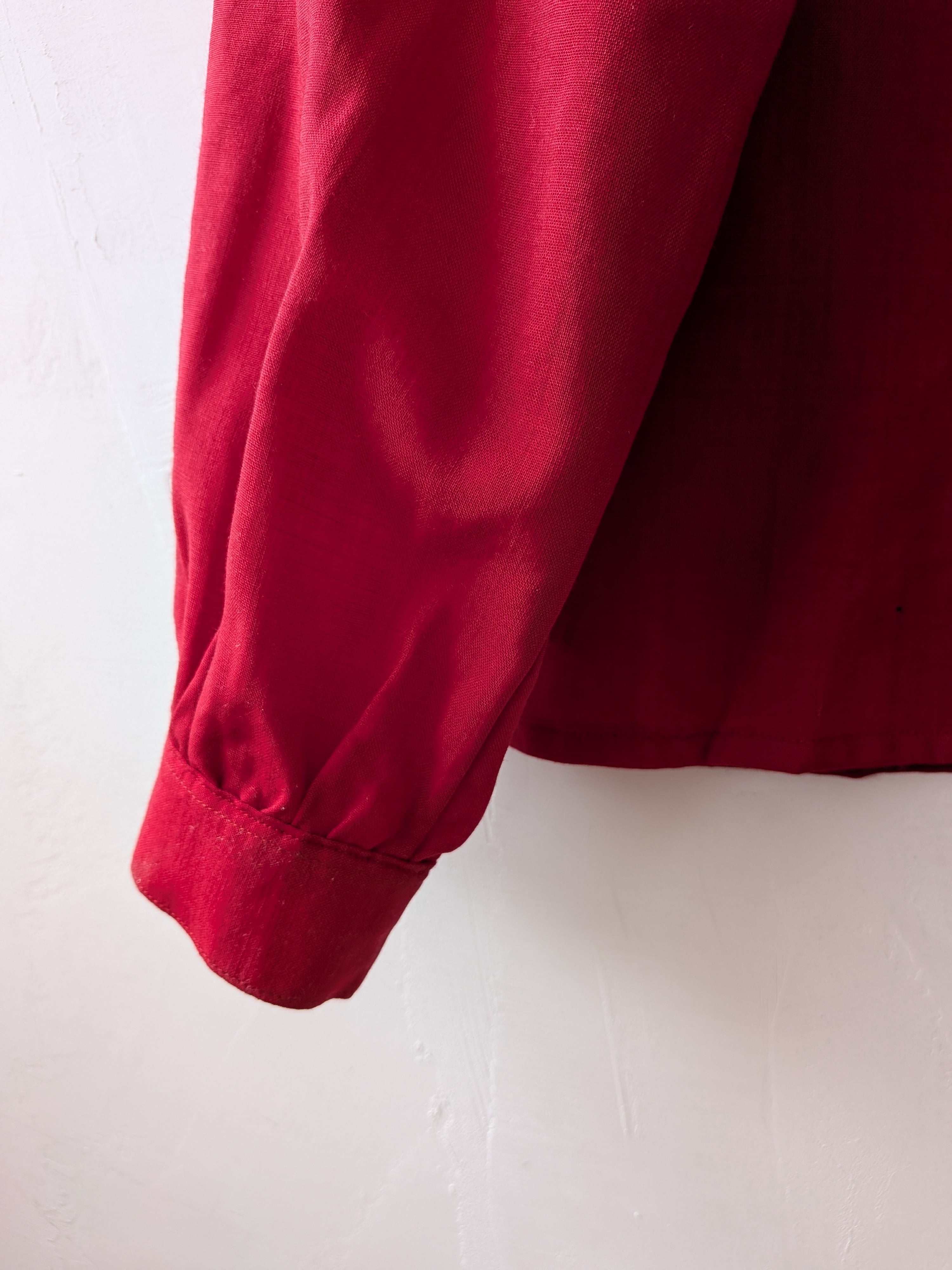 深みのある赤に可愛いらしいレースのショルダーデザインが、クラシックでレトロな雰囲気。