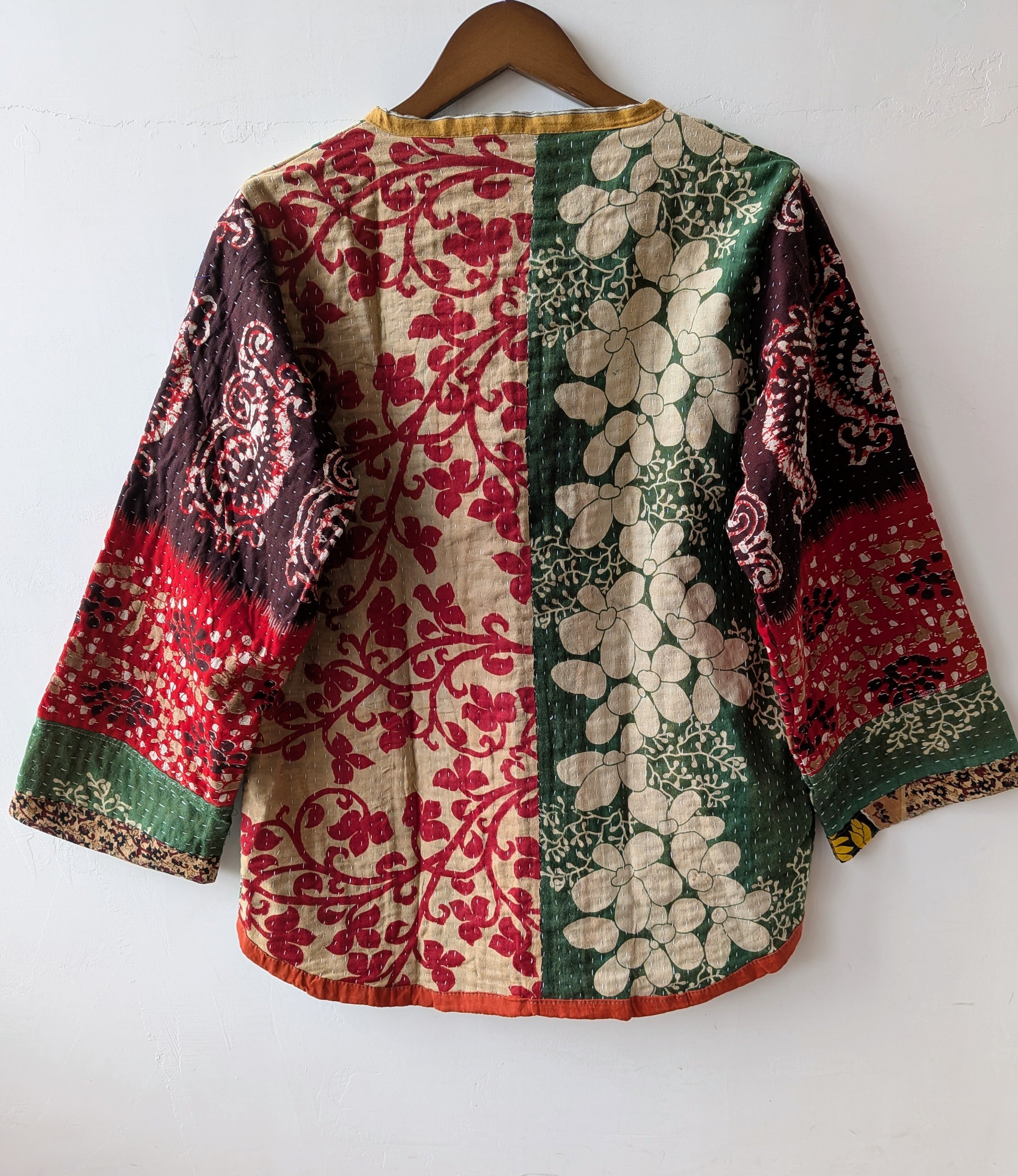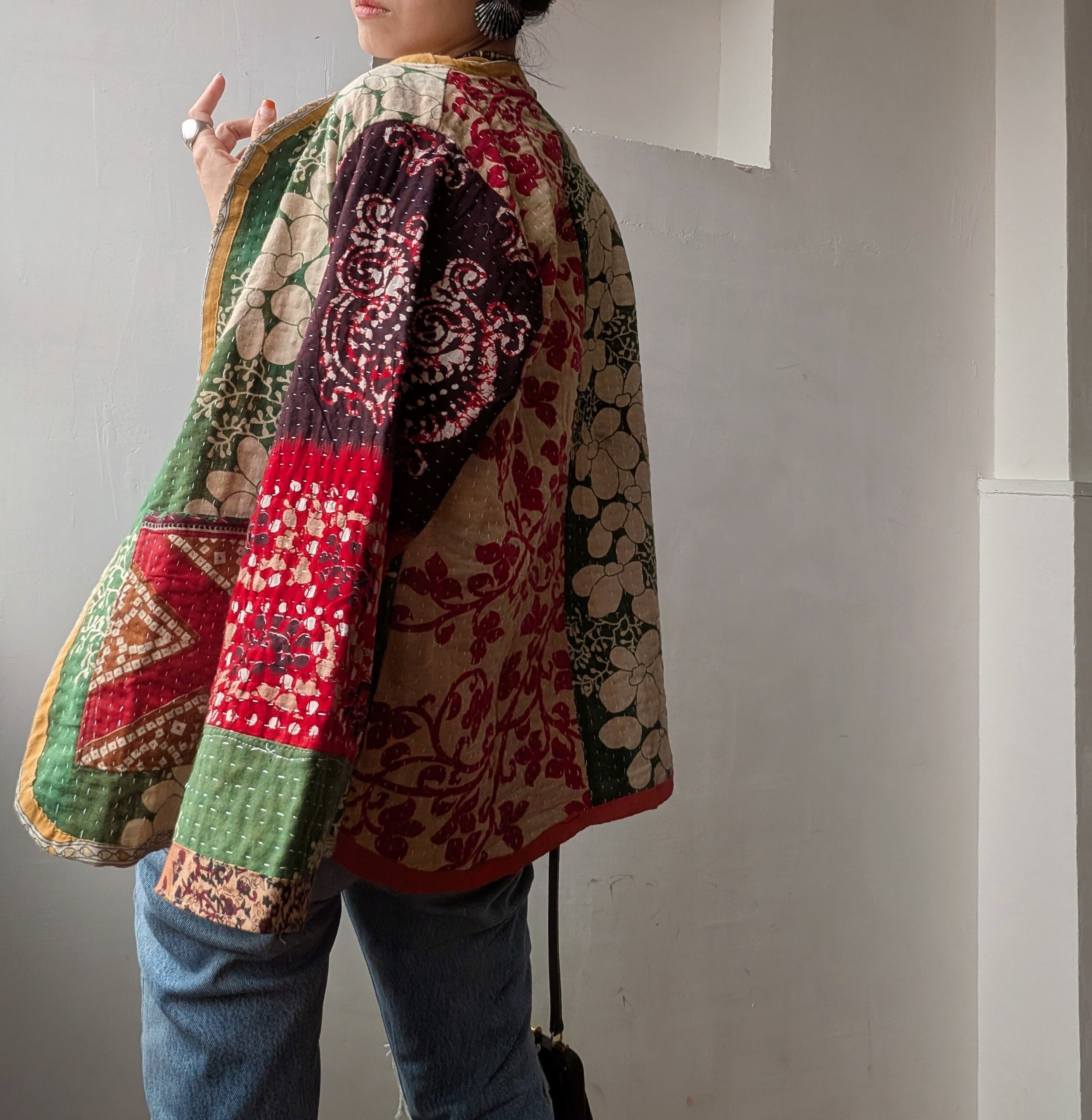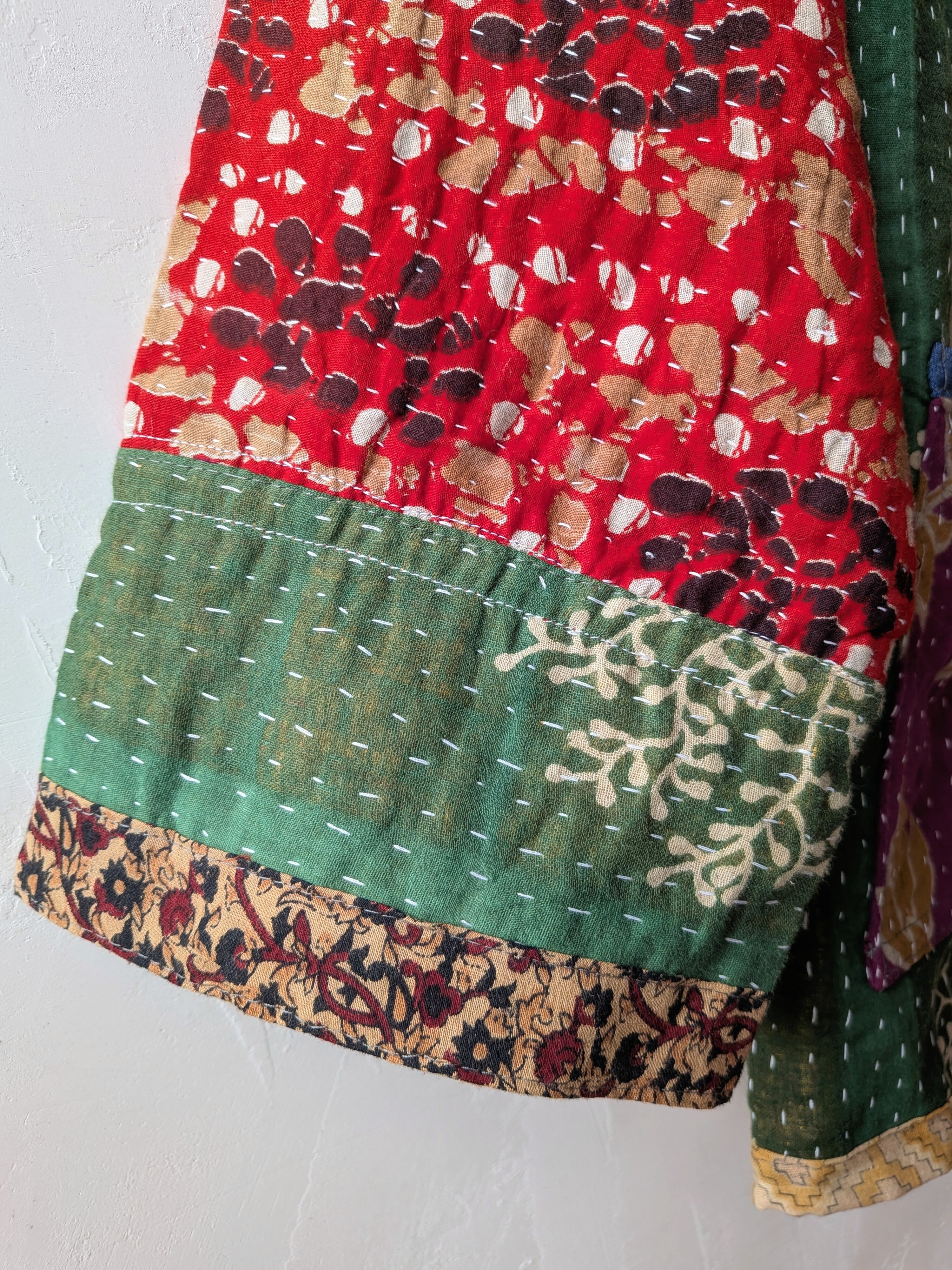 Vintage handmade khantha quilt patchwork jacket /green multi