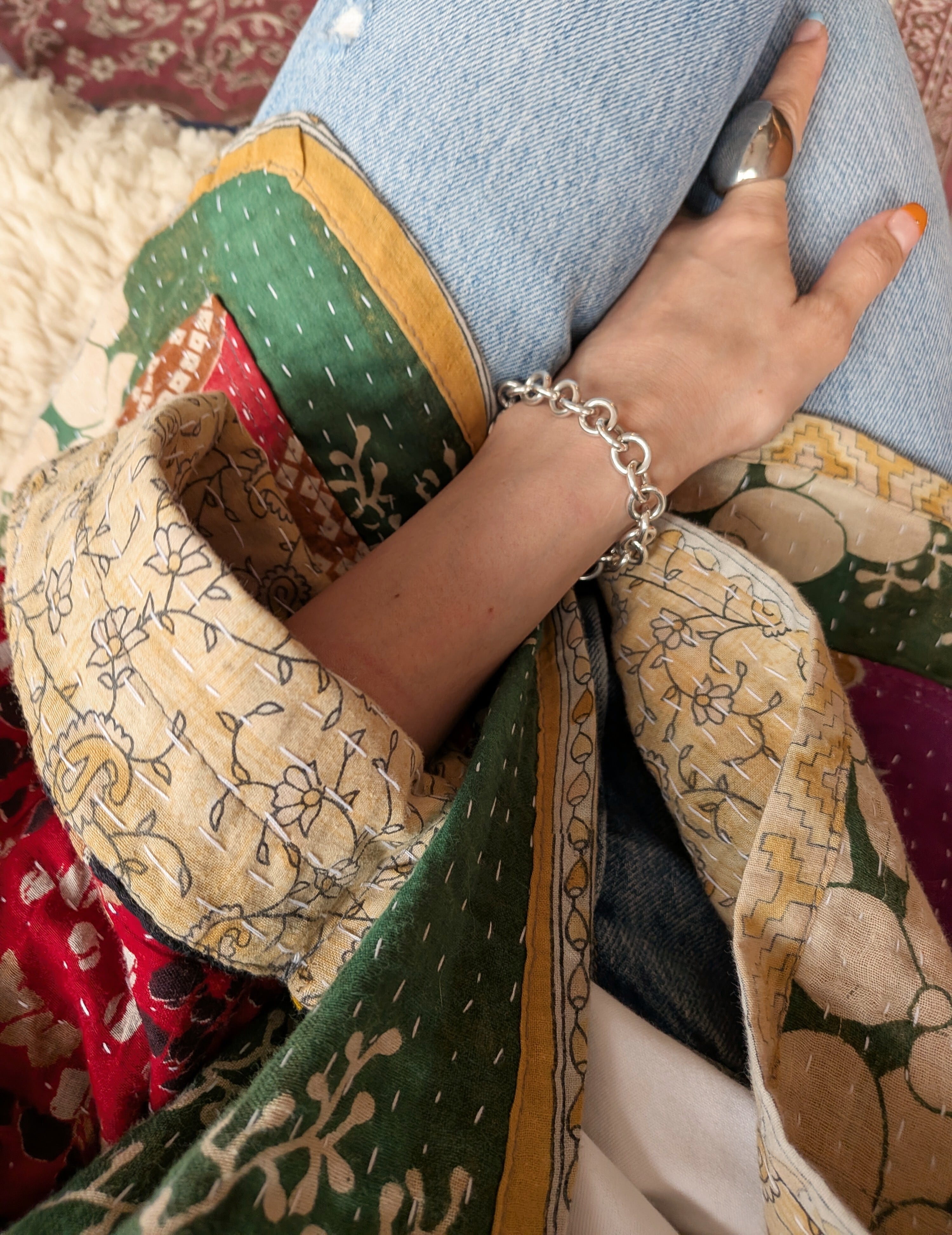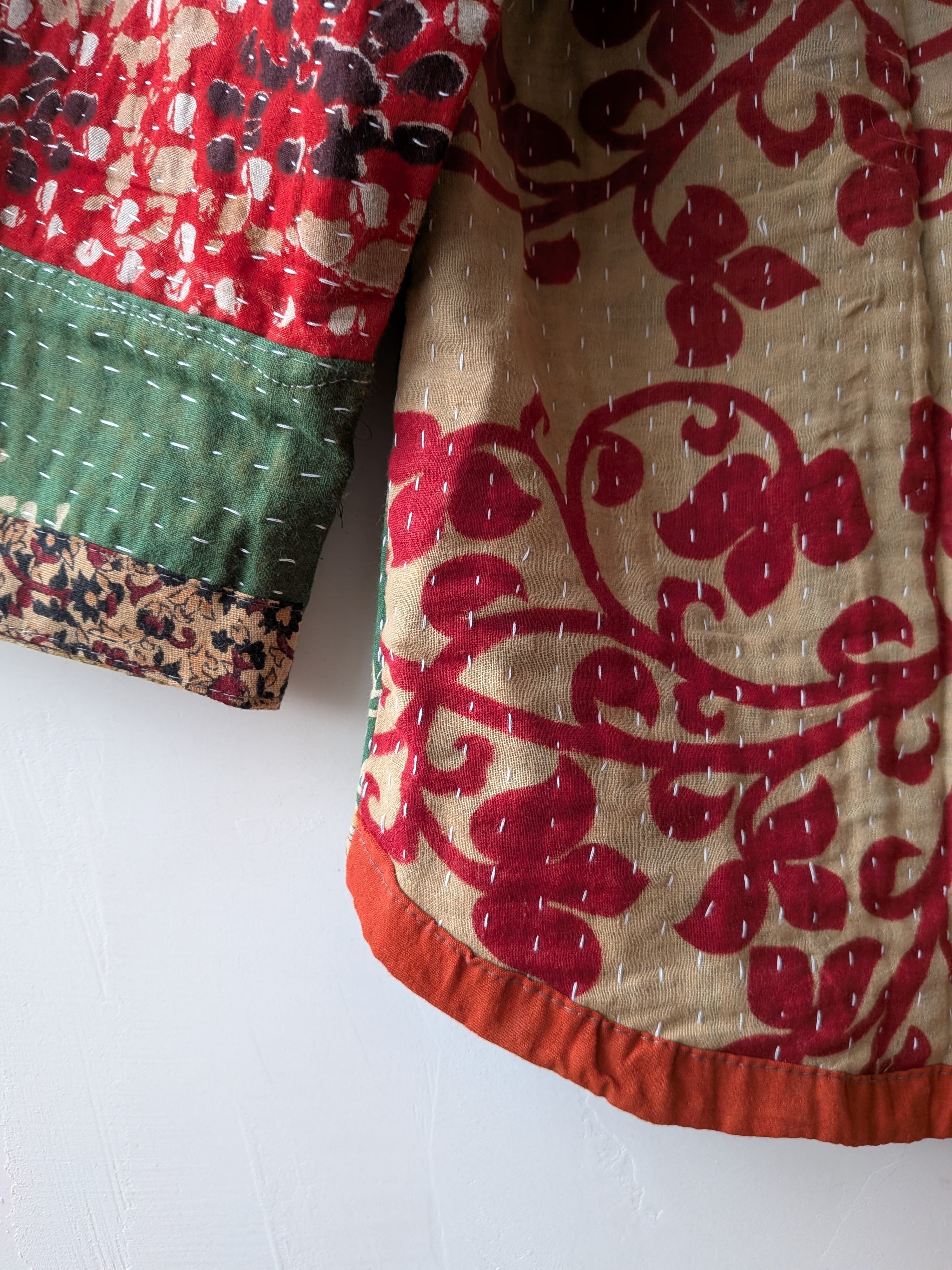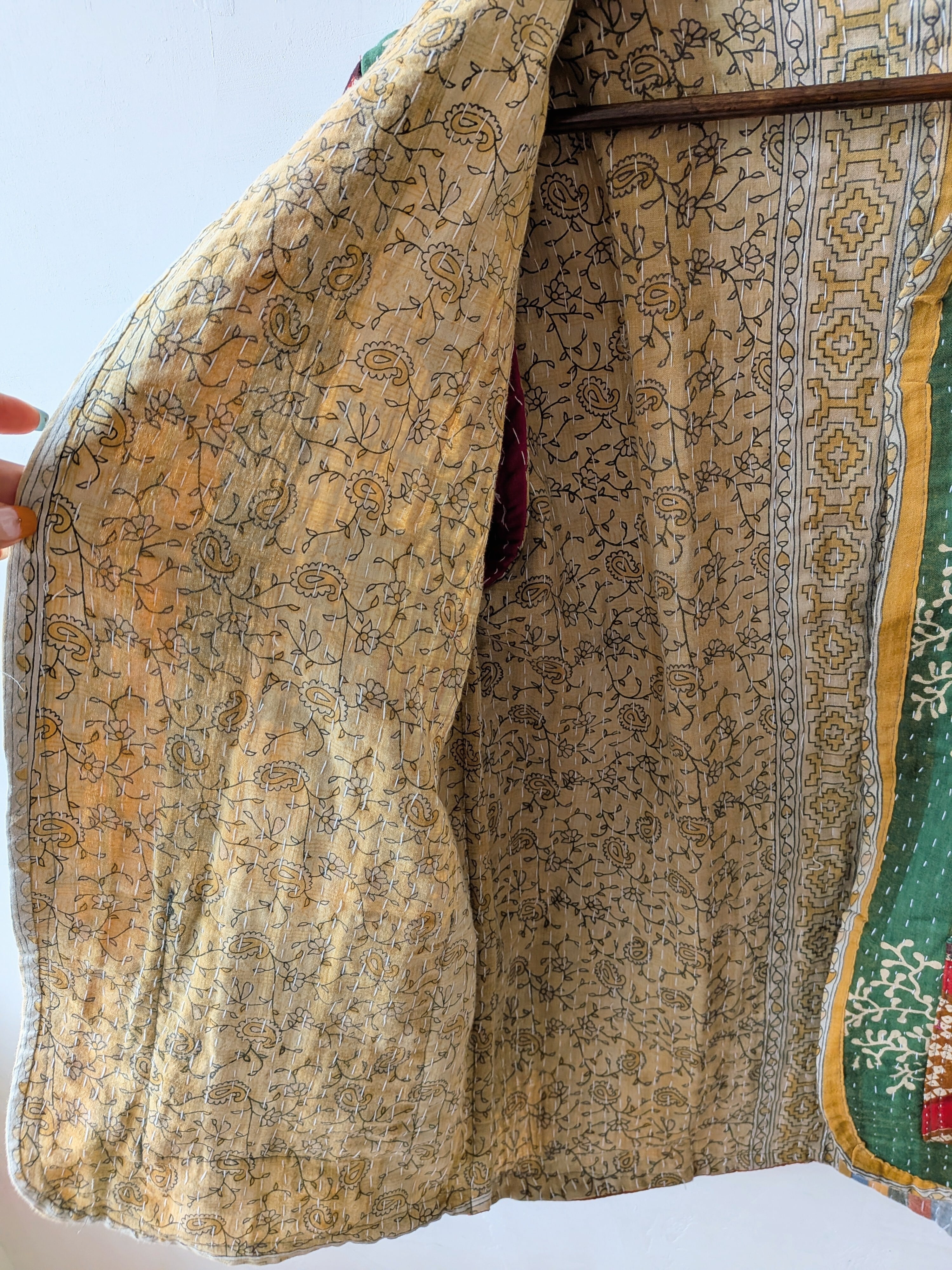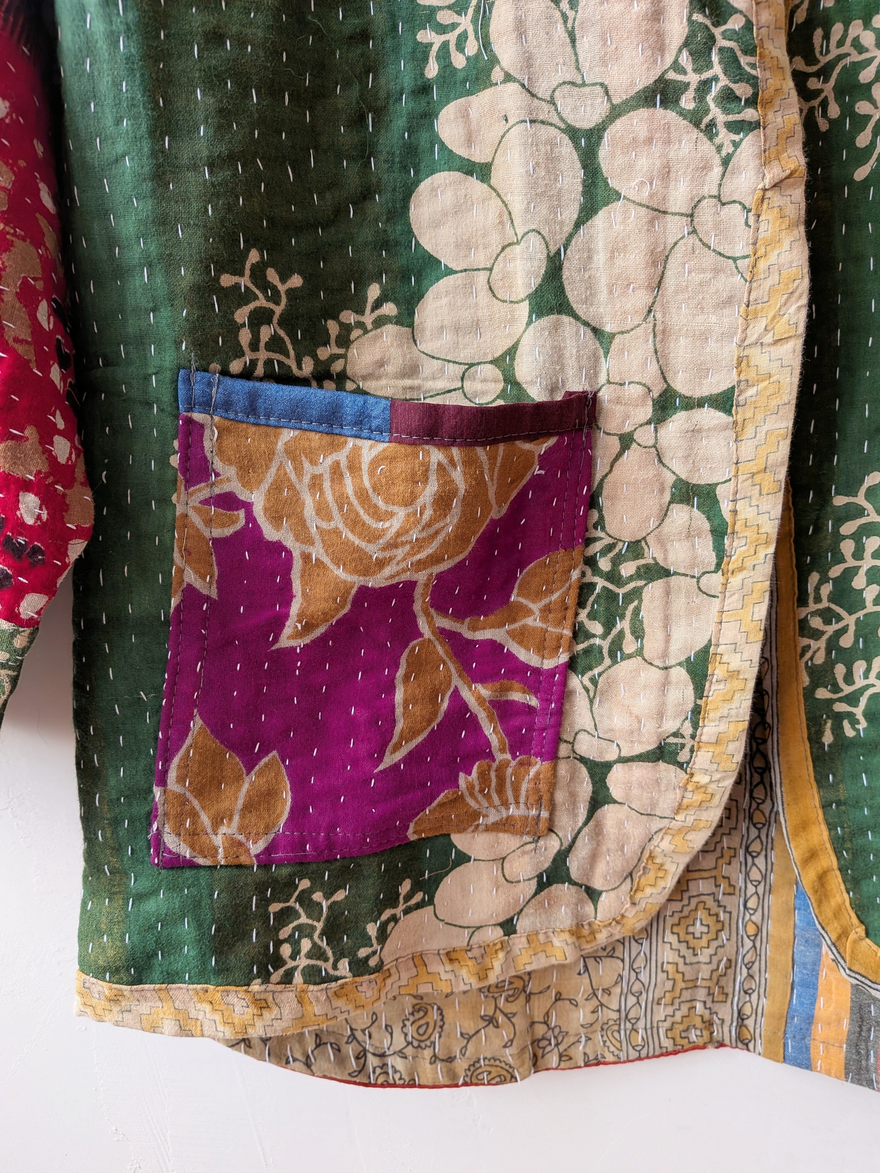 Vintage handmade khantha quilt patchwork jacket /green multi