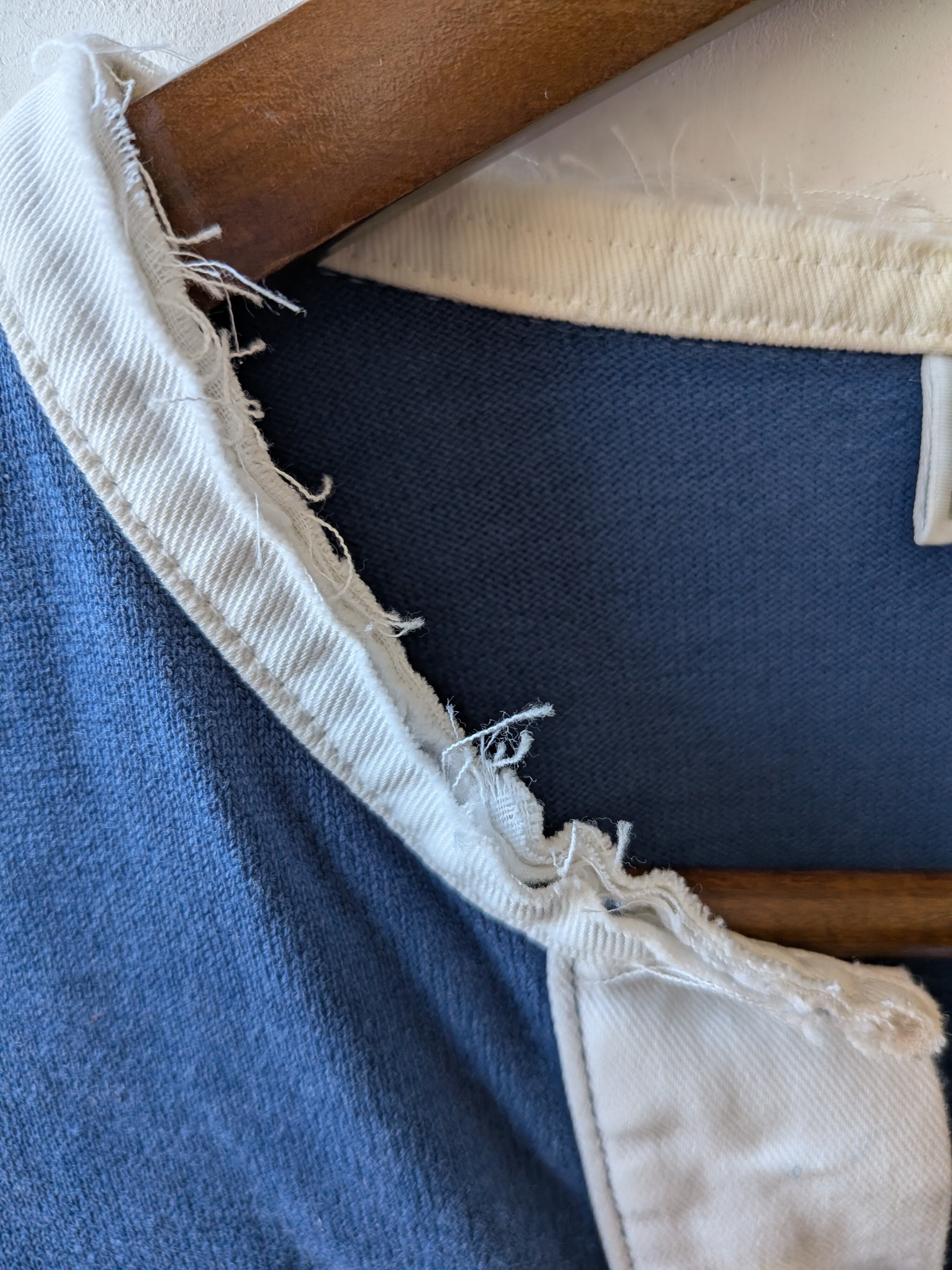 しっかりとしたコットン生地に、リメイクされたnocollarの首元や、切りっぱなしの短めの丈感も女性らしい雰囲気で、ネックレスやスカーフを巻いたり、首元のアレンジを楽しめます。