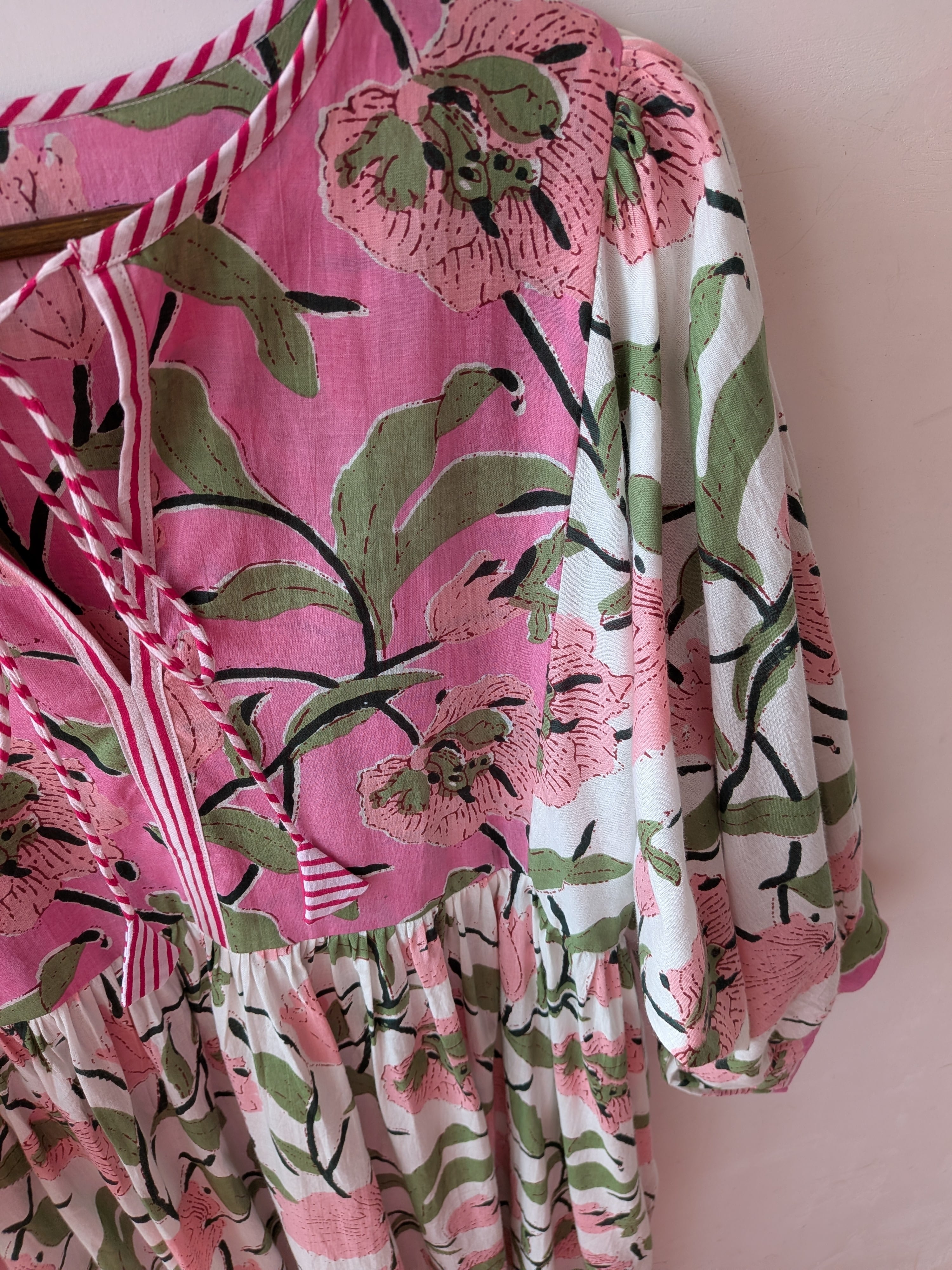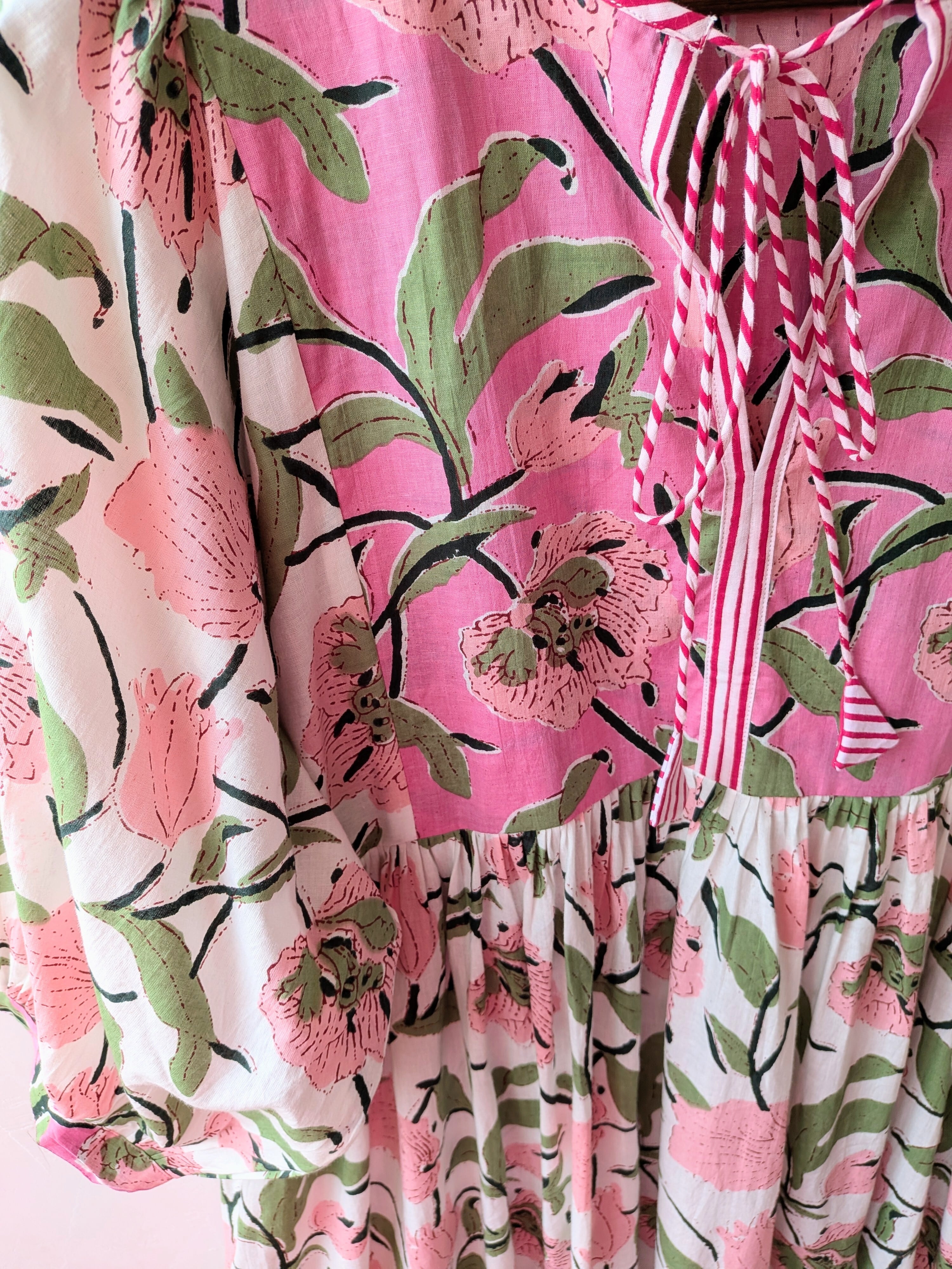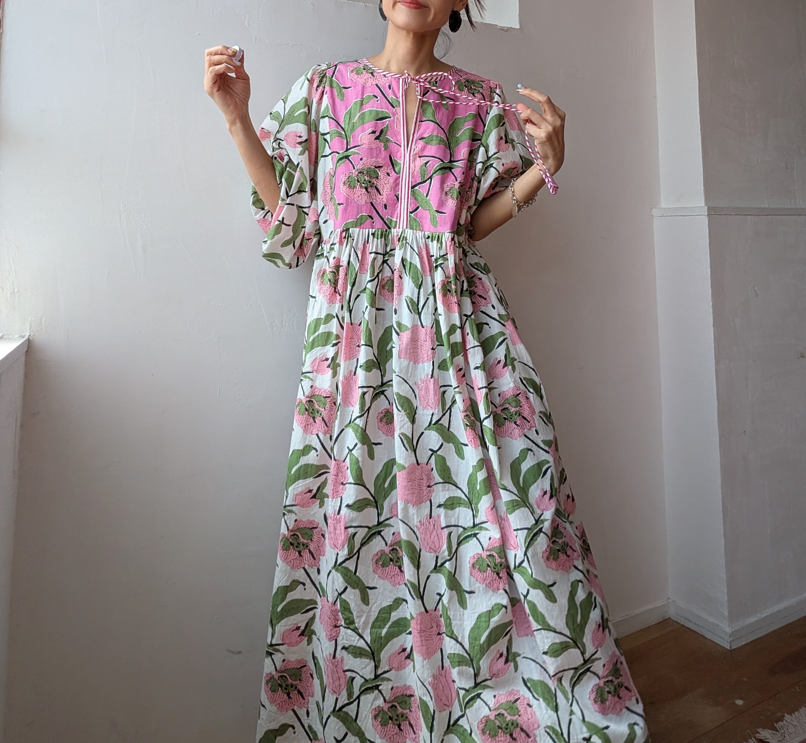 華やかなFlowerprintの切り替えしデザインが春夏にぴったりのコットンドレス。