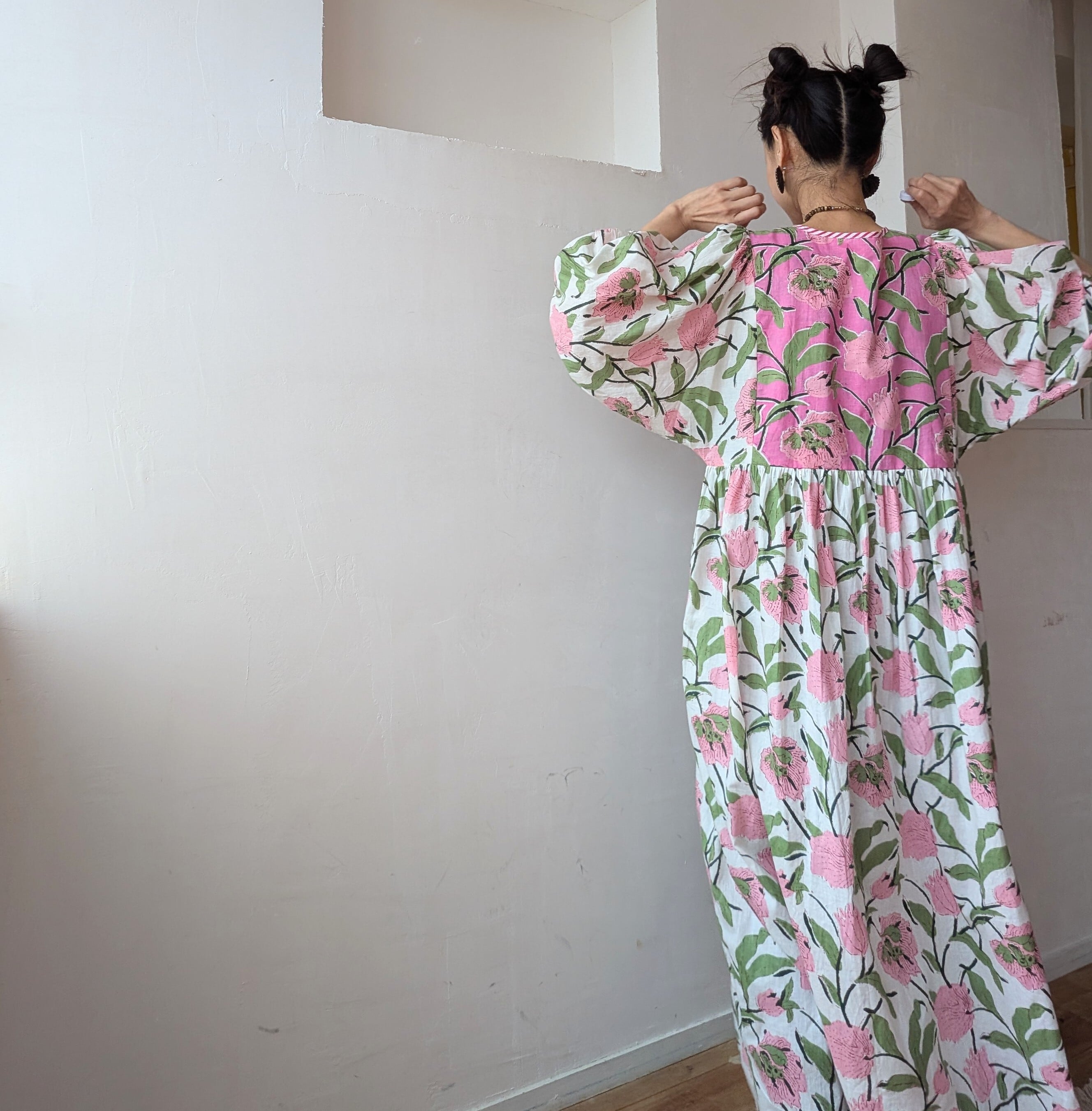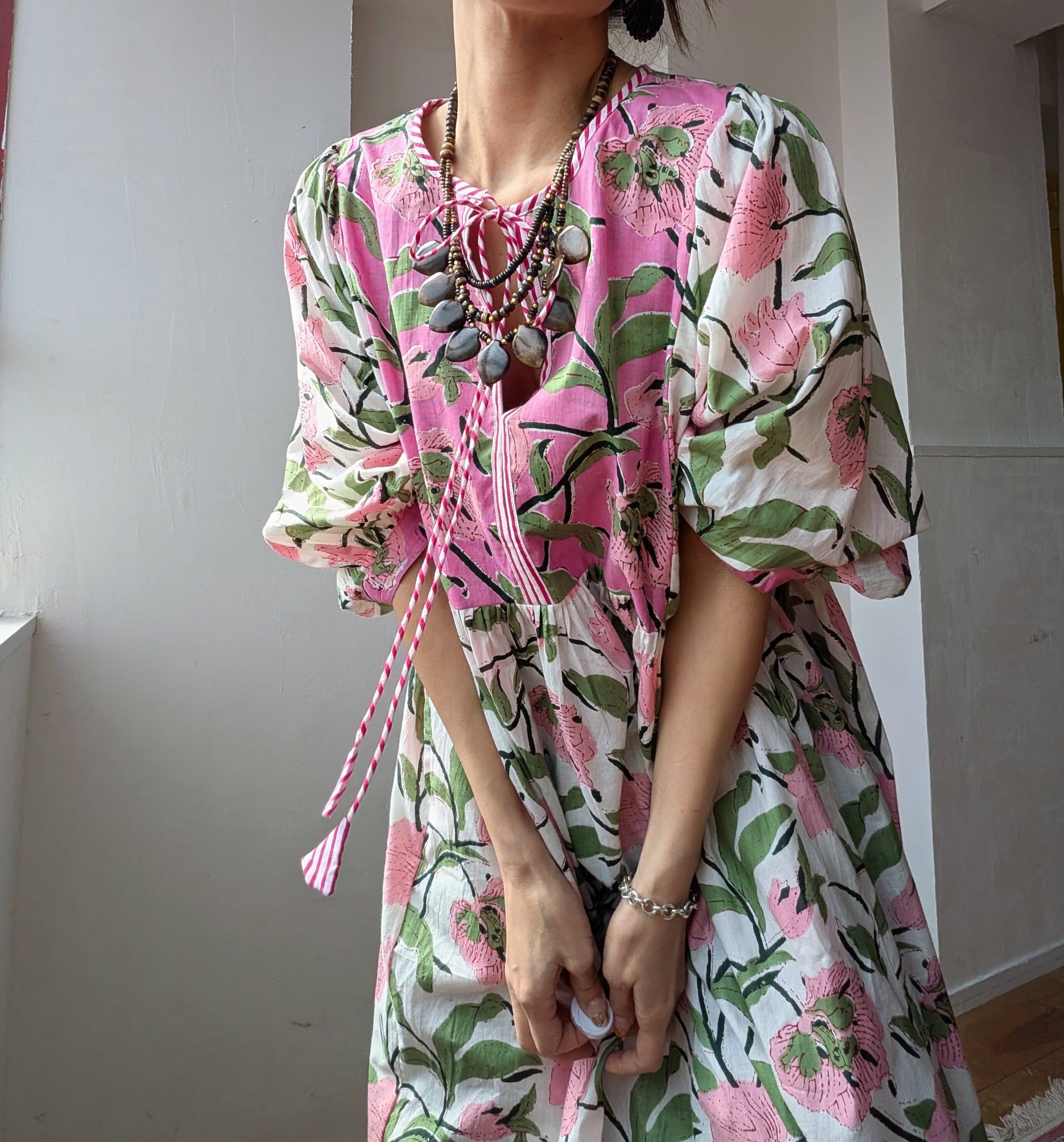 素材には天然顔料が使用されているため、お洗濯の際は手洗い、日陰干しをおすすめします。